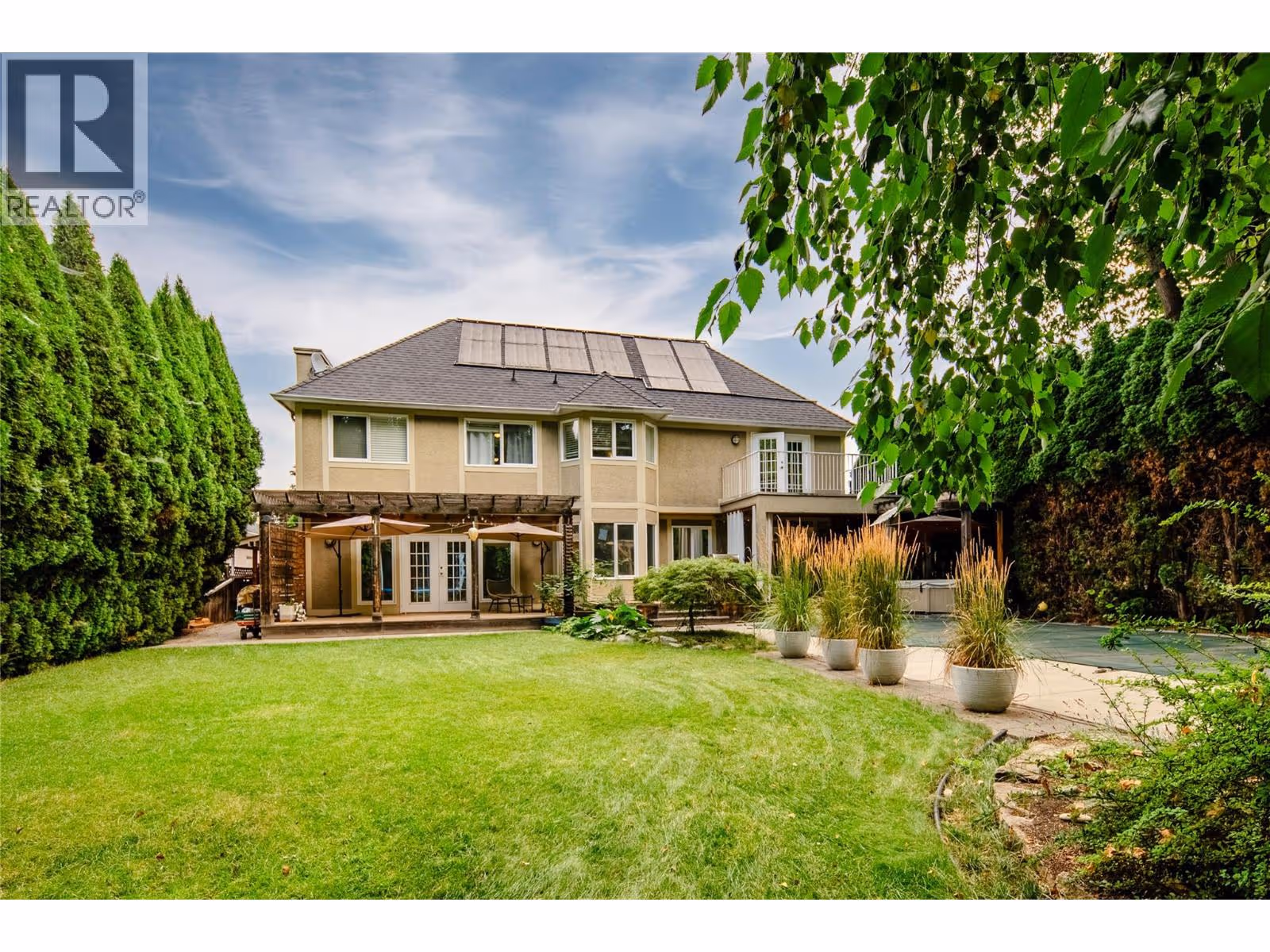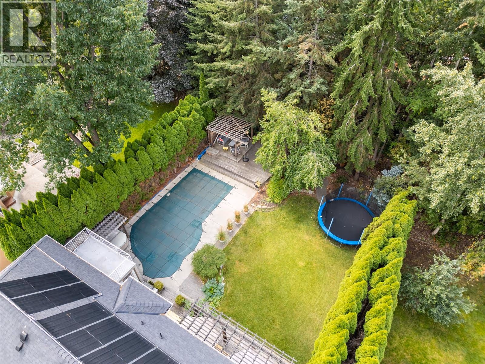 Beautiful, private 0.24-acre yard on treed property backing onto Bellevue Creek with a saltwater pool, hot tub, pergola, outdoor gas fireplace, and multiple patios/decks. Inside, the granite kitchen with stainless appliances opens to a family room with gas fireplace and direct yard access. Formal living and dining with French doors extend the entertaining space. Main floor also offers a bedroom/office, full bath, and mudroom with laundry chute. Upstairs are 4 bedrooms plus a bonus room (or 5th bed). The primary retreat overlooks the yard with private deck, walk-in closet, and ensuite with heated floors, soaker tub, and separate shower. Updated roof, furnace, A/C, hot water tank, granite counters, appliances, and fresh paint. All this just a short walk to beaches, restaurants, shops, schools, and more! (id:58842)