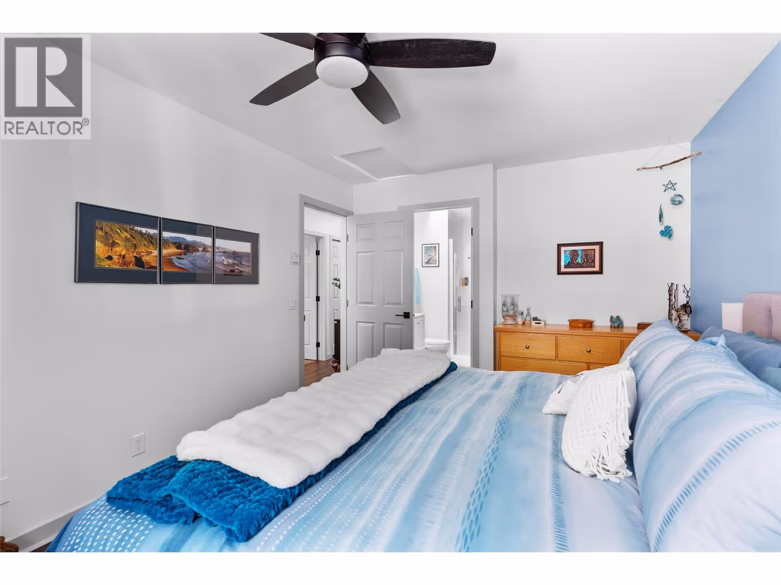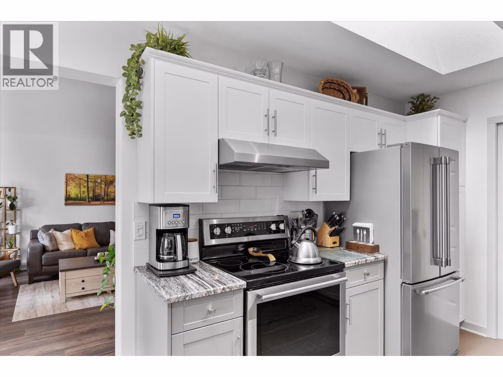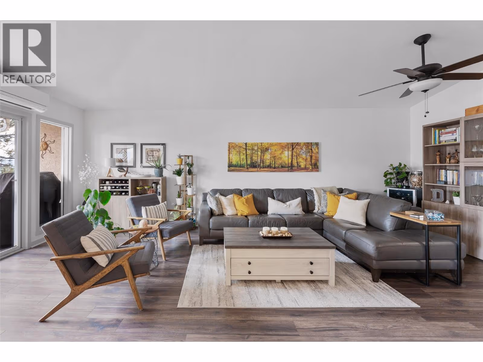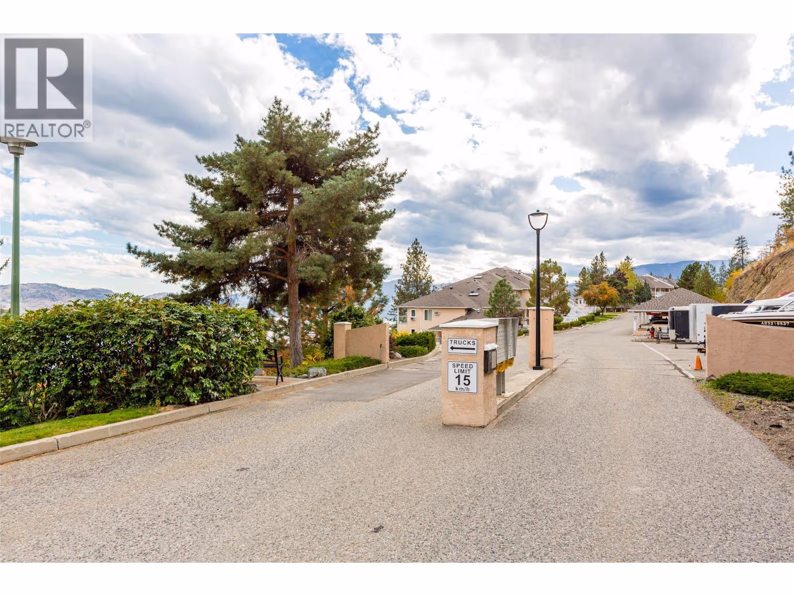 Enjoy panoramic lake and mountain views from this 2 bed/2 bath townhouse perched above Peachland, surrounded by nature and hiking trails for the ultimate Okanagan lifestyle. Perfect for downsizing to one-level living, a starter home, vacation getaway, or anyone seeking quiet serenity among the pines—yet only 5 minutes to shopping and the lakefront. The expansive sundeck with glass railings, BBQ space, and new drop-down awning (2023) is ideal for morning coffee or evening wine. Inside, the open kitchen boasts stainless steel appliances, granite counters, and modern cabinetry, flowing into the dining and living areas with vaulted ceilings, skylights (2024), and breathtaking views. Stay comfortable year-round with a new heat pump (2023), ceiling fans, radiant in-floor heating, and a cozy gas fireplace. The primary suite offers a walk-in closet and 3-pc ensuite. Additional highlights include ample storage, covered parking with locker, and low strata fees that include heat, water, and gas. Pet-friendly community amenities feature RV parking, rec room with kitchen, games tables, and fitness area. A proposed golf course nearby adds future appeal. (id:58842)