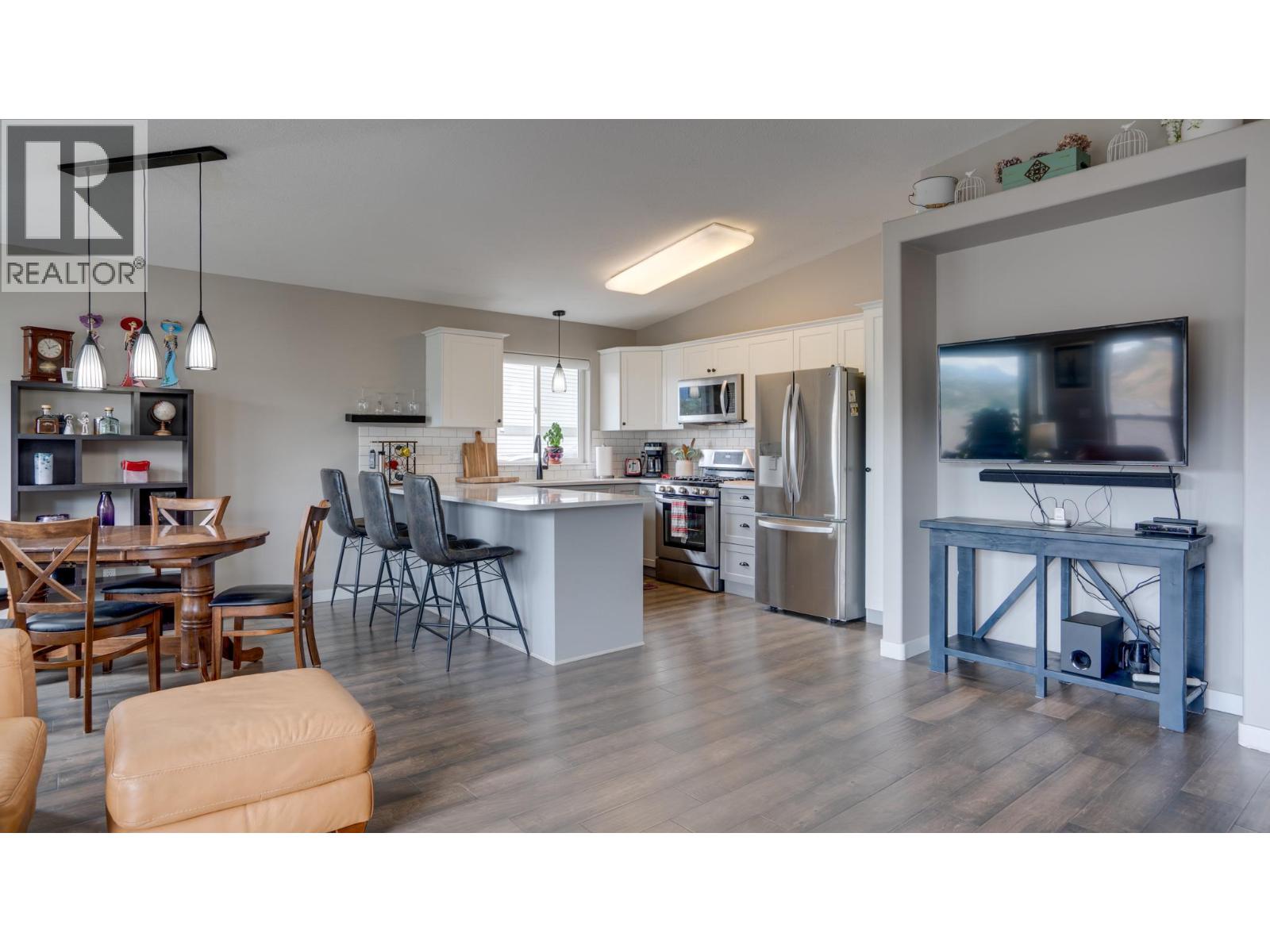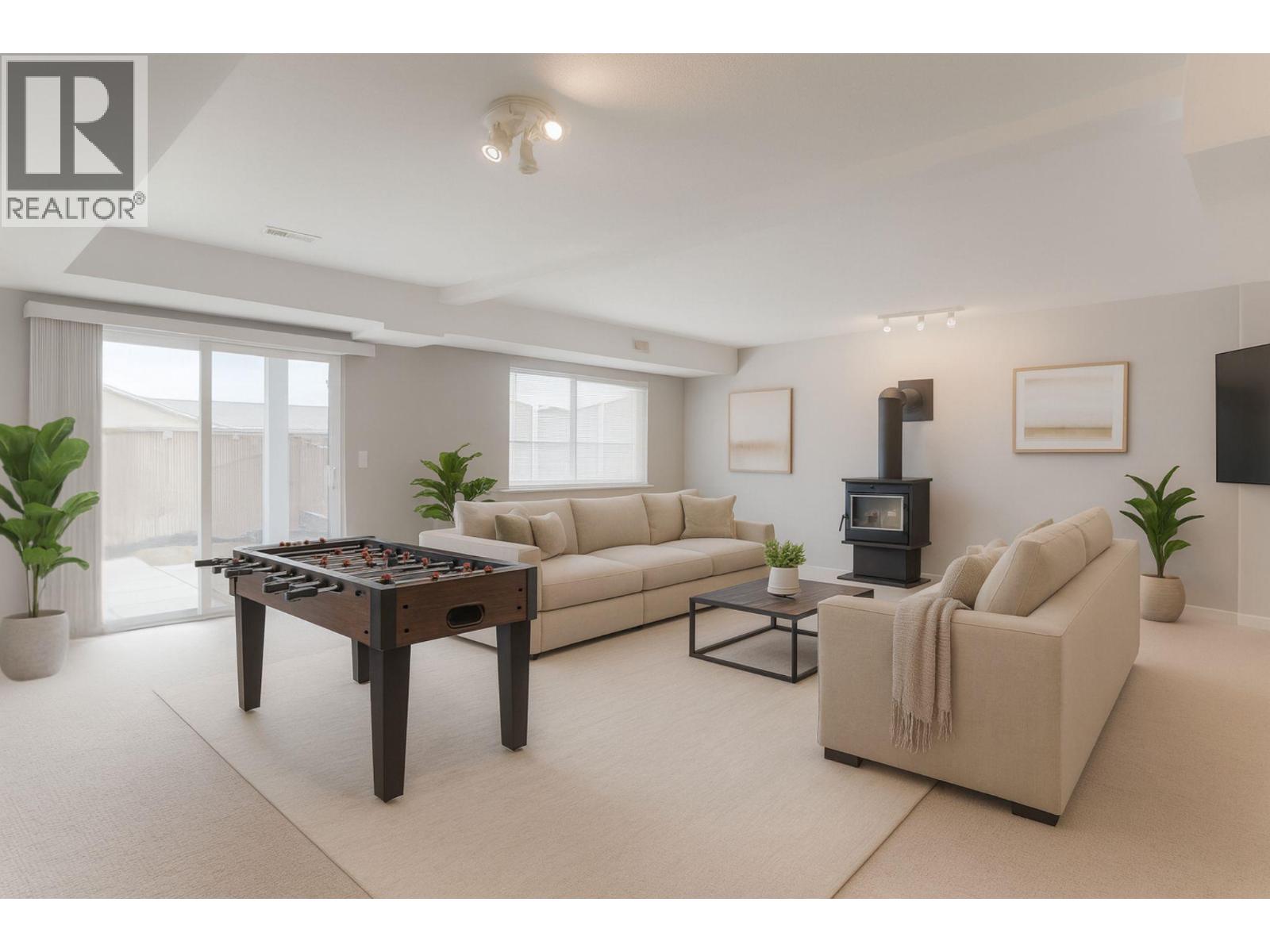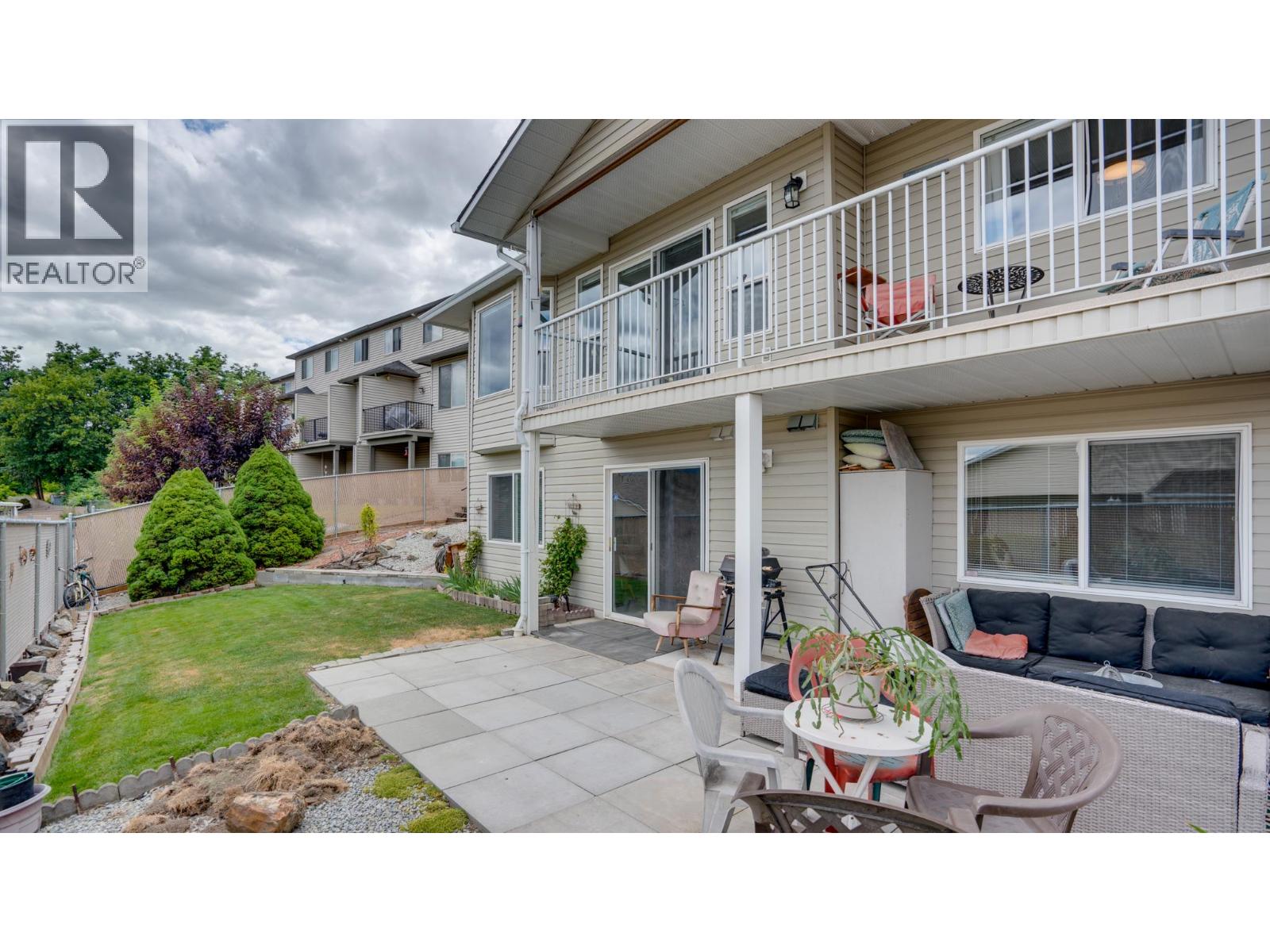 RARE WALKOUT RANCHER ALERT! All the perks of a detached home, none of the yardwork headaches. Perfect for families (kids get their own downstairs domain), couples craving main-floor living, or anyone wanting space without the hassle. This END-unit townhome is a unicorn -one of only four in a quiet, beautifully kept enclave on Bella Vista Road. Inside: engineered hardwood, quartz counters, custom cabinetry, stainless appliances, fresh paint, and a newer hot water tank. Translation: the upgrades are done, just move in and enjoy. The main floor is bright, vaulted, and open-concept, with windows that flood the space with natural light. The kitchen has room to actually cook (and gather) — ideal for entertaining or everyday life. The primary suite is tucked away for privacy with its own ensuite retreat. Downstairs? The wow-factor: a HUGE rec room (pool table, theater, kids’ crash pad), a third bedroom (easy fourth if needed), another full bath, and walkout access to the fenced yard. Dog-friendly, kid-approved. Extras: single-car garage, tons of storage, low-maintenance outdoor space, and a location that nails it - 5 minutes to downtown, 8 to Okanagan Lake, 35 to SilverStar. Updated, private, move-in ready… the perfect balance of lifestyle and convenience. (id:58842)