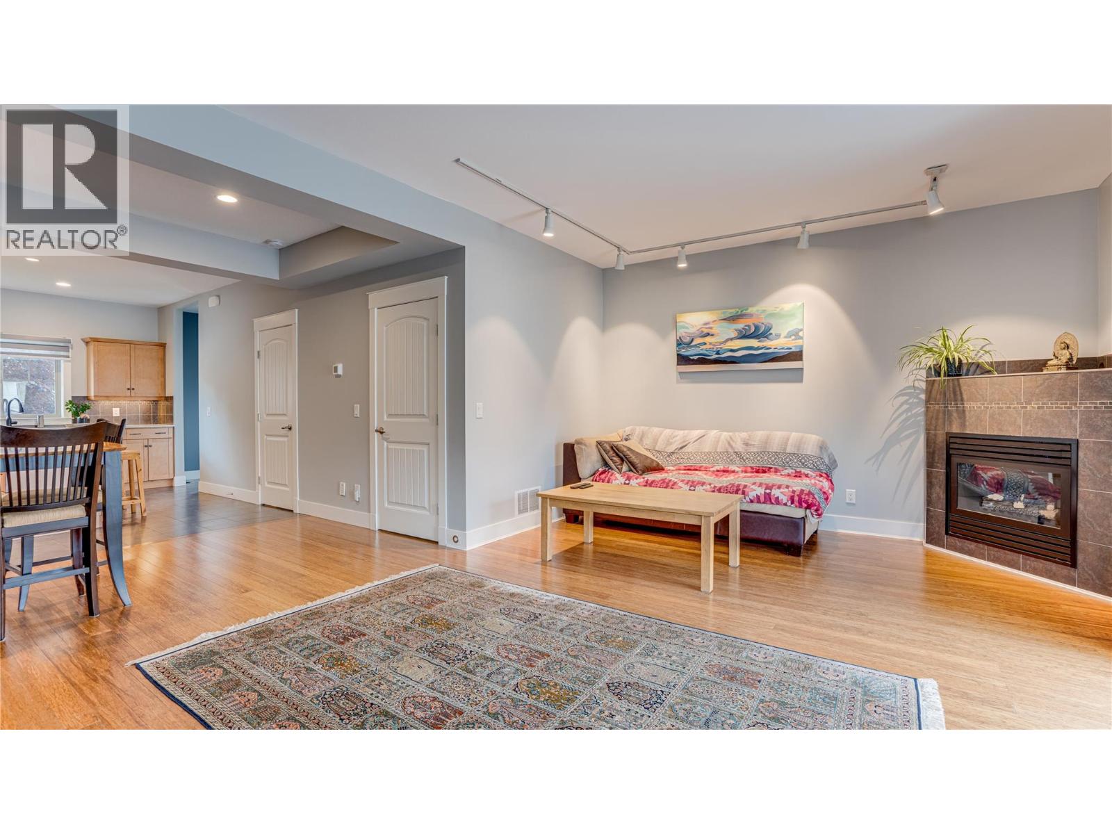 Quick possession available!! This move-in ready craftsman-style end-unit townhome is located in Bella Vista within a 5-minute convenient proximity to downtown Vernon, with public transit nearby. ICF foundation and concrete party wall for energy efficiency, sound transmission reduction & fire safety. The main floor sports a bright open-concept plan with 9' ceilings, hardwood & tile flooring, modern color palette with accent walls, and powder room. A very functional kitchen features an island, shaker cabinetry, walk-in pantry, new quartz countertops, new granite window sink, and a new SS tub Bosch dishwasher! The ample dining area flows into a large living room with corner gas fireplace and slider door access to a covered balcony. The spacious primary bedroom has a vaulted ceiling with fan, a generous walk-in closet, and a luxury 5pc ensuite with soaker tub, shower stall, separate sinks, and toilet closet. The large second primary bedroom comes with its own 4pc bath, walk-in closet and desk nook. The second level has a convenient laundry closet w stacking LG W/D. New oak veneer laminate flooring completes the floor plan. The finished basement boasts a large flex/rec room with new laminate flooring, 2pc bath, mechanical room, and access to the double garage. Additional updates include new carpeting on staircases, new H/W/T, paint updates & newer A/C unit. Walking distance to Planet Bee or Davidson's Orchard. Minutes away from parks, shops, schools, Rise GC & beaches. A must see! (id:58842)