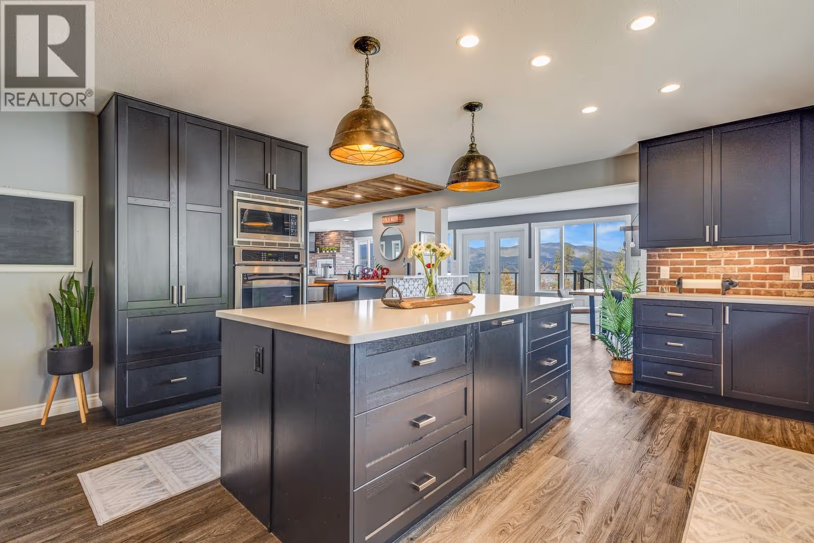This is the one you've been waiting for! Welcome to the Upper Missions most exceptional and rare offerings — a nearly 6,700 sq ft custom residence set on a pristine 1/2 acre lot with lake views, privacy, and a lifestyle that feels more like a resort than a home. Thoughtfully renovated over the years, this estate blends luxury with modern design & bold character. Designed for discerning buyers who value space, style, and indoor-outdoor living, this 6-bedroom, 7-bathroom home offers a flexible layout where almost every bedroom enjoys its own ensuite—ideal for hosting guests or accommodating families. Soak in the Okanagan lifestyle from your resort-caliber backyard featuring a pool, hot tub, syn lawn, and a fire pit area surrounded by a waterfall stream—a showpiece setting for both quiet evenings and elegant entertaining. The expansive patio and open-concept living areas flow effortlessly from indoors to out. Car enthusiasts will appreciate the triple garage with attached workshop, plus space for the RV & boat. Inside, a fully updated chefs kitchen, bar, multiple living rooms and games room create the perfect atmosphere for entertaining, while the home’s rock-and-roll edge add an unmistakable sense of personality & flair. Plus a bonus in-law suite on the lower level. Ideally located in a pocket of Upper Mission, you’ll enjoy privacy without sacrificing proximity—just mins from the Okanagan Lake, schools and daily shopping. This is more than a home—it’s an experience. (id:58842)