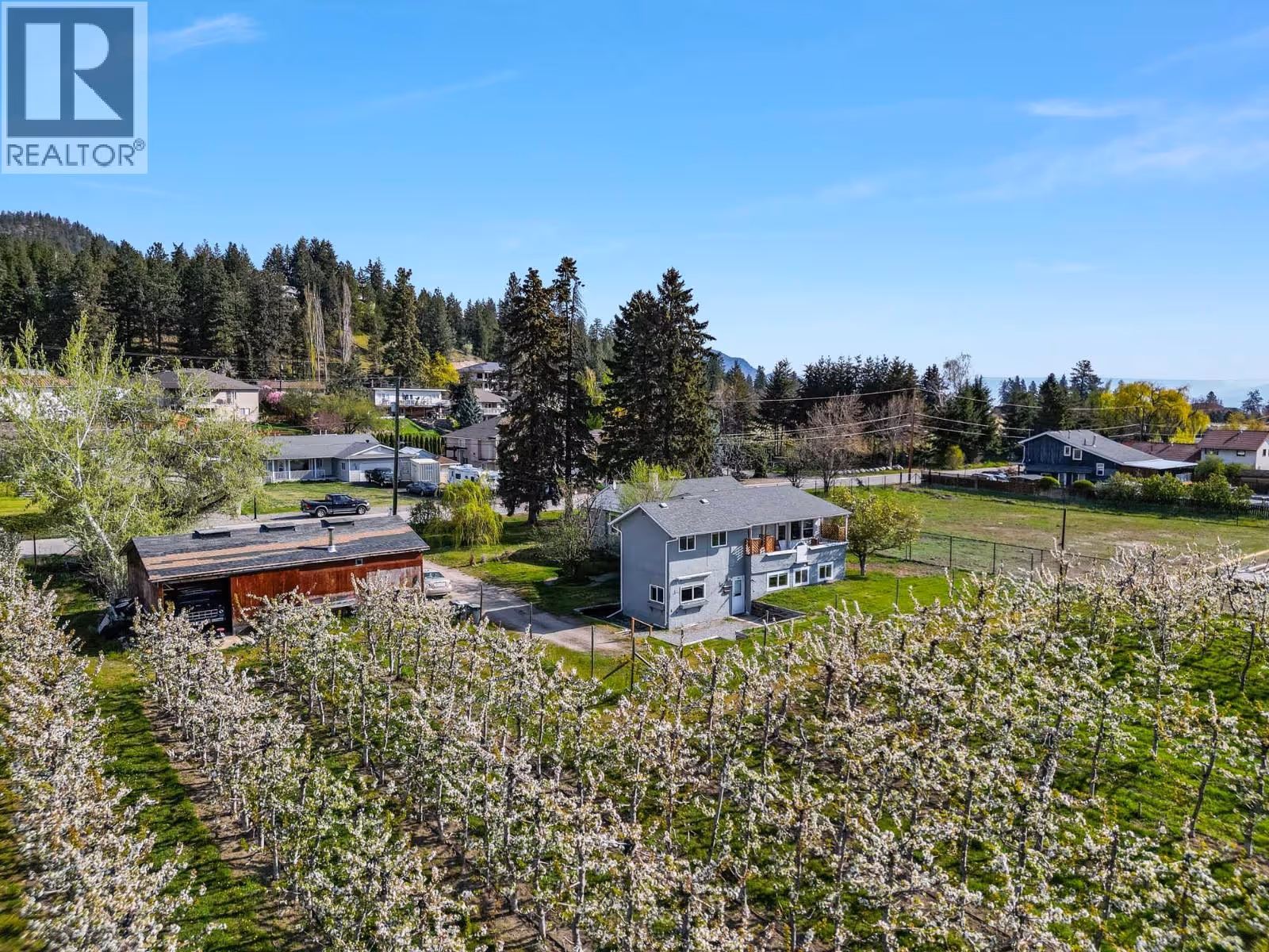 Set on 4 scenic acres, this exceptional property includes a mature cherry orchard, charming farmhouse, and a detached shop, all framed by breathtaking mountain views. The orchard, planted with Staccato and Sweetheart varieties, is expertly maintained with high-density trees and an advanced automatic micro-jet irrigation system. Just minutes from Peachland’s lively beachfront, you’ll have easy access to trails, beaches, shops, and local amenities. The farmhouse is divided into three rental suites, two occupied by reliable long-term tenants, providing consistent income. A detached triple-bay shop with concrete flooring and power adds further revenue potential. This prime agricultural land is highly versatile—ideal for additional crops, horses, or greenhouse operations. The well-kept orchard is leased year-to-year to the original grower. With ALR A1 zoning, the property allows for secondary or garden suites and even agri-tourism accommodations for up to 10 guests. Connected to natural gas, the home offers both comfort and efficiency. A rare opportunity to own a piece of Peachland’s rich agricultural heritage, this property offers outstanding potential—whether you plan to farm, invest, or enjoy a serene country lifestyle. Don’t miss this chance to be part of a thriving, picturesque community! (id:58842)