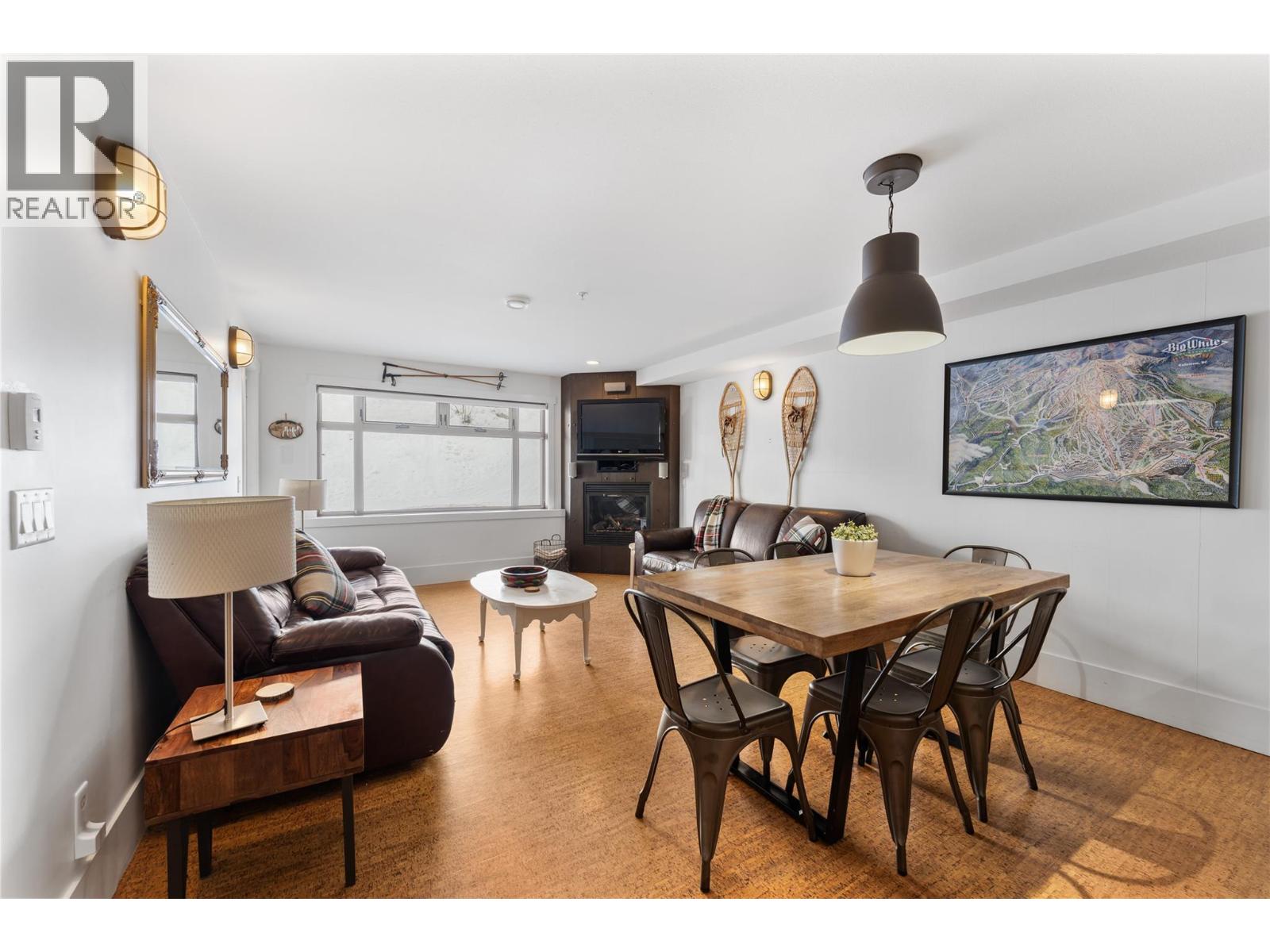 Welcome to unit 101 at The Raven, a fantastic opportunity to own in the heart of Big White with no rental restrictions. Located in the highly desirable Happy Valley, this two bedroom, one bathroom condo is perfectly positioned for both personal enjoyment and strong rental potential. After a full day on the slopes, step inside to a warm and inviting open concept layout designed for comfort and relaxation. Large windows showcase bright alpine views, while geothermal in floor radiant heating and a cozy gas fireplace create the perfect mountain retreat. Your own private hot tub offers an ideal place to unwind and soak in the mountain atmosphere. The kitchen features stainless steel appliances and ample cabinetry, making it both stylish and functional for entertaining or hosting guests. This unit includes secure underground parking and a dedicated storage locker, offering convenience and peace of mind. The Raven is a sought after building that also offers access to a pool and fitness facility, adding even more value for owners and guests alike. Situated in family friendly Happy Valley at Big White, you are just steps from skating, tubing, dining, and year round activities at the Happy Valley Lodge. Whether you are searching for a personal mountain escape, an income generating property, or the perfect blend of both, this property delivers an exceptional opportunity in one of Canada’s premier ski destinations. Please note the second bedroom does not have a closet or window. Geo and gas are included in strata fees, electricity is not. (id:58842)