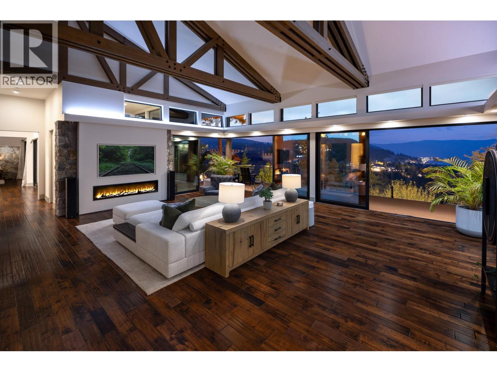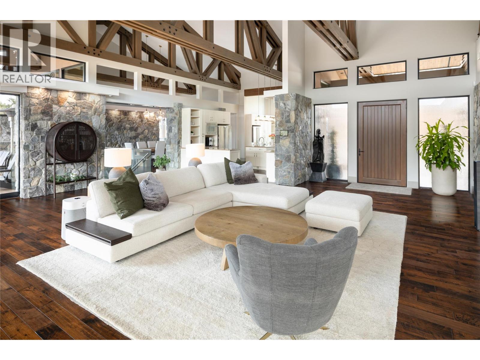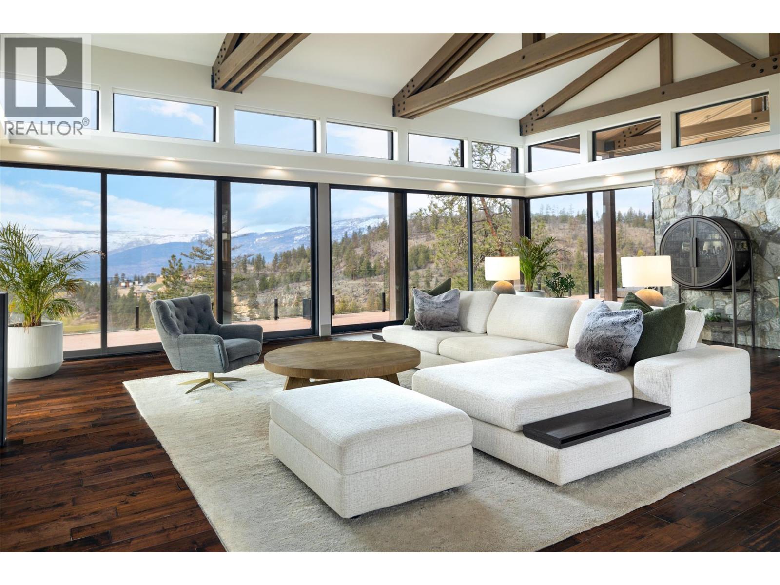 Stunning panoramic lake and valley views. This Tommie Award-winning masterpiece is perfectly set on a One Acre lot in the prestigious neighborhood of Falcon Point Estates at Predator Ridge. Superior finishes throughout including Kettle Valley granite walls, hardwood floors, vaulted trusses, and wall-to-wall sliding doors opening to remarkable outdoor living areas with a full outdoor kitchen and seating area with a gas fireplace. Enjoy an effortless flow, creating beautiful spaces for everyday living and entertaining. Vaulted trusses add warmth and dimension in the living and dining area. Professional gourmet kitchen boasts 2 Viking refrigerators, a 6-burner Viking gas range with a double oven, and a Viking gas range. A notable feature of the dining room is the 2000-bottle, mahogany-racked, climate-controlled wine room. Main floor primary retreat occupies one wing of the home and features a walk-through study, two walk-in closets, and a spa-inspired ensuite including a Koi-pond shower surround and soaking tub. Spacious lower level is ideal for unwinding with the family and offers a living area with an electric fireplace, wet bar, games room, 3 bedrooms, 2 bathrooms, and a flex room. Outdoor living spaces are surrounded by automated privacy screens. A hot tub is off the upper-level patio. Plans and permits are in place for a pool. Detached 2-car garage, golf cart parking and a workshop. Enjoy the resort-style amenities of Predator Ridge right outside your front door. (id:58842)