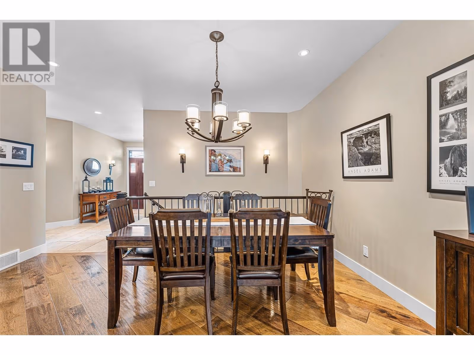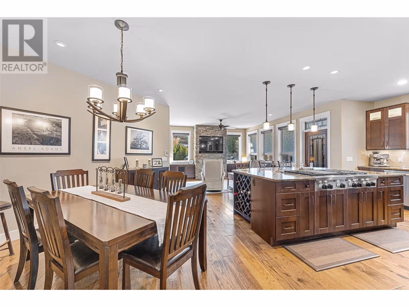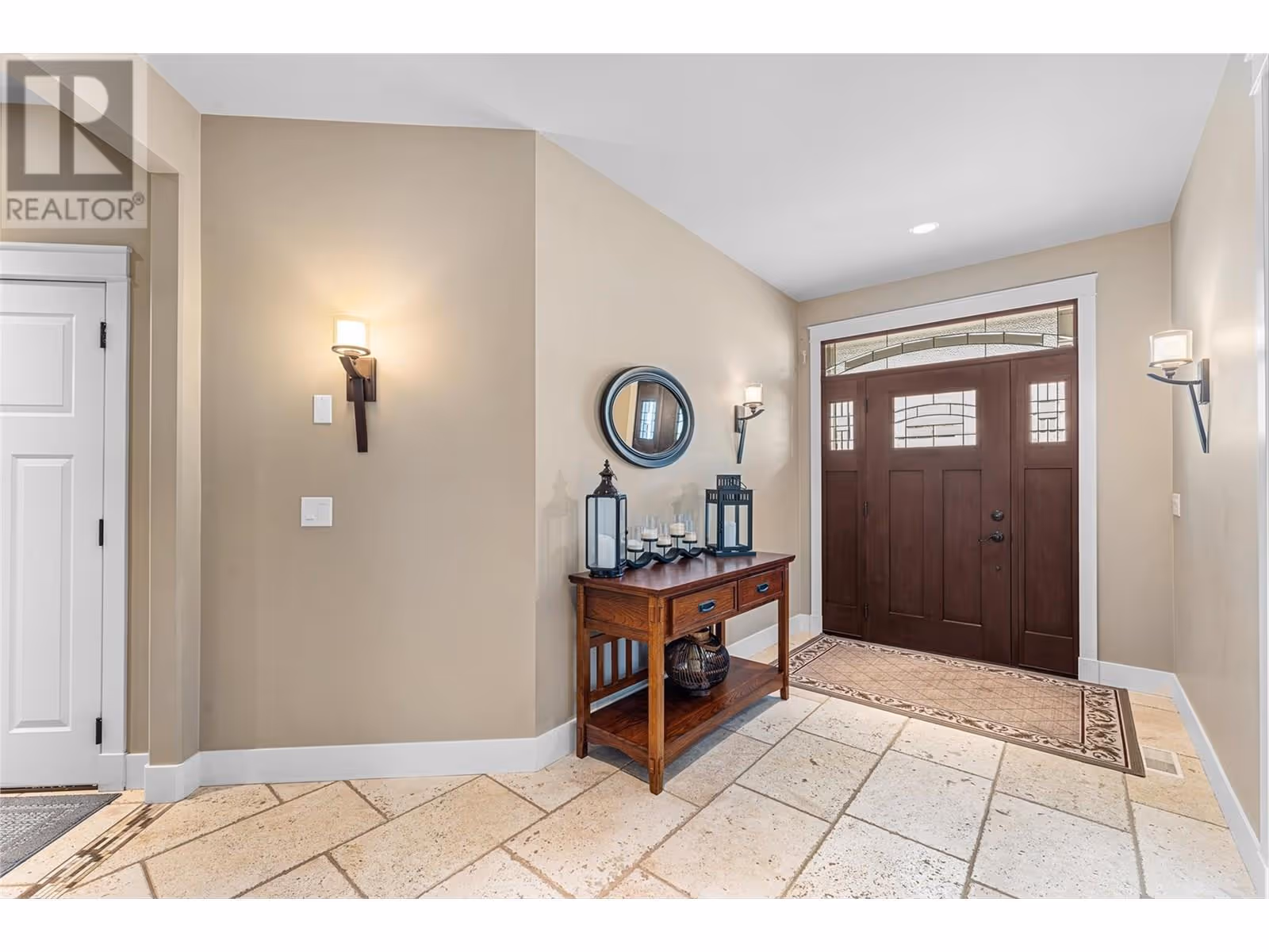 Nestled in the heart of Upper Mission’s coveted Ponds community, this custom-built 4-bed + den residence offers the perfect blend of elegance and comfort. Steps from Canyon Falls Middle School and Mission Village, this home is surrounded by scenic hiking/biking trails and just minutes from world-class wineries, beaches, top-tier schools, and vibrant local amenities.Designed for luxury living and seamless entertaining, the open-concept main floor is adorned with hardwood floors, 9-ft ceilings, and a stone-surround gas fireplace that anchors the inviting living space. The gourmet kitchen is a chef’s dream with stainless steel appliances, a KitchenAid 6-burner gas cooktop with griddle, built-in ovens, a warming drawer, beverage fridge, and a custom island with a built-in wine rack. A walk-in pantry with roll-out shelves adds effortless organization. The main-floor primary retreat boasts a spa-inspired ensuite with heated floors, a soaker tub, and a jetted rainfall shower. An additional main-floor bedroom offers flexibility as a home office or guest suite. Downstairs, the bright and spacious lower level is perfect for family living, featuring a large rec room, 3 beds, a full bath, and direct access to the 2 car garage with high ceilings. Outdoors, enjoy a private patio, rock retaining walls, and stunning lake views. The perfect backdrop for morning coffee or evening gatherings. This home offers both luxury and practicality in one of Kelowna’s most desirable neighborhoods. (id:58842)