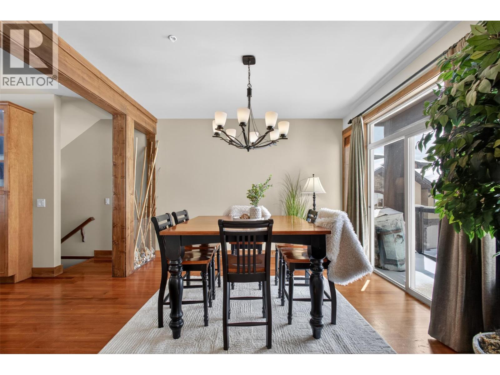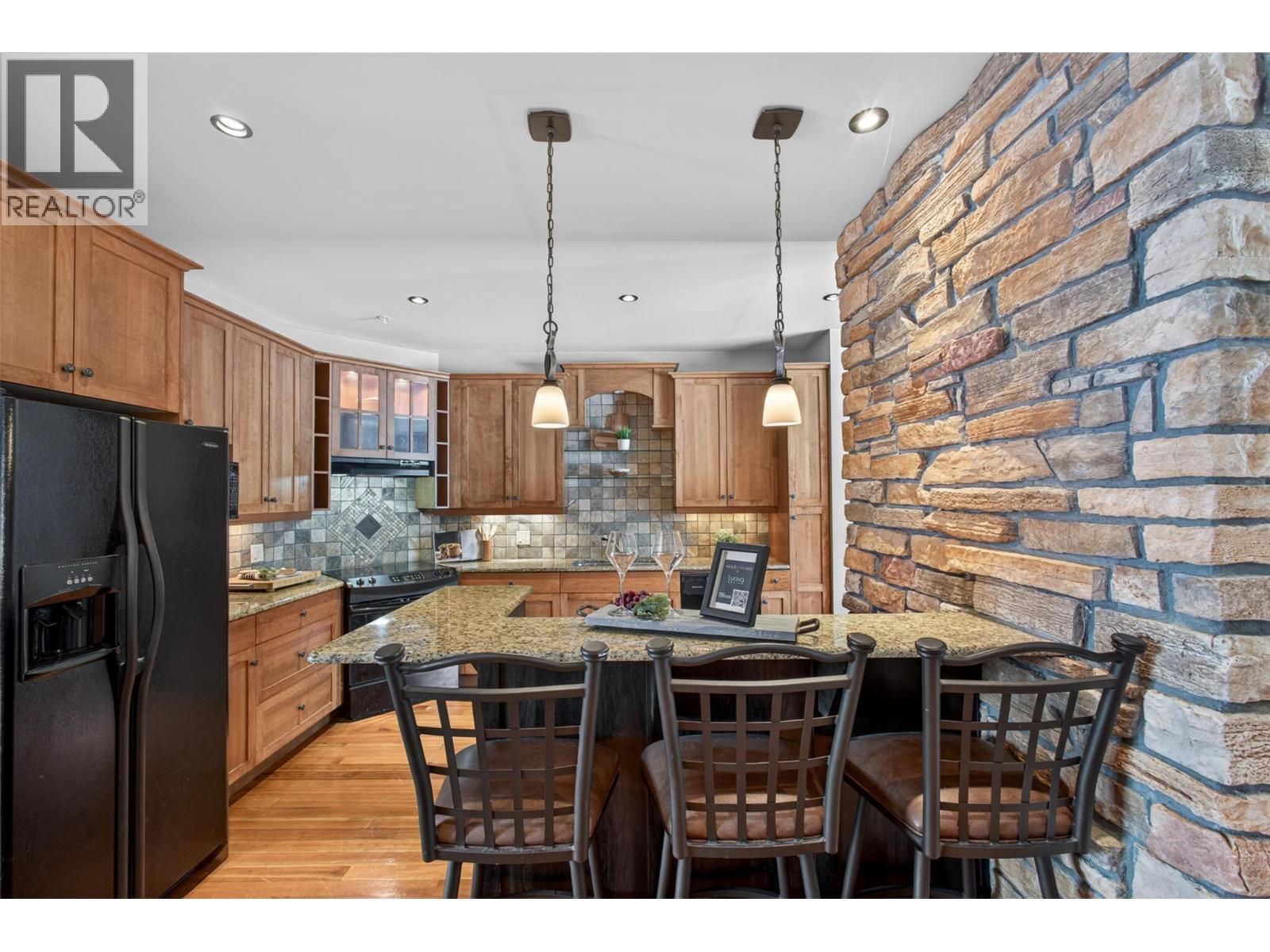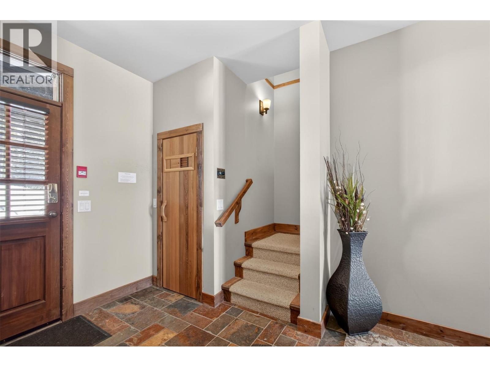 Experience elevated alpine living in this rare SKI IN-SKI OUT townhome in the heart of Happy Valley at Big White. Offering 3 bedrooms, 3 bathrooms, and just under 2,000 sq ft, this home arrives completely TURNKEY—fully furnished and ready for your first night on the mountain. Step inside to hardwood floors, granite countertops, and rich wood cabinetry creating a warm, upscale alpine feel. The kitchen is built for apres-ski gatherings, while the open living area invites you to unwind by the floor to ceiling stone gas fireplace. With natural gas included in the strata, the fireplace heats the entire home all winter—essentially making this home very economical. Upstairs is one of a kind. Vaulted ceilings crown two exceptional primary suites, each with a private ensuite and in-floor heating. The crown jewel? One ensuite features a walk-in glass steam shower—your own private spa after every run. The main level adds a third bedroom for guests or flexibility. After the mountain, decompress in your private sauna. Dual lower-level entry offers seamless convenience with direct access to the garage, to the sauna as well as an easy exit outside to gear up and step straight onto the ski-in/ski-out trail. Steps from skiing, skating, and dining in the vibrant core of Happy Valley. Never rented, GST-free, fully furnished, and with low operating costs—this checks every box. Book your private showing today—opportunities like this at Big White don't come twice. (id:58842)
