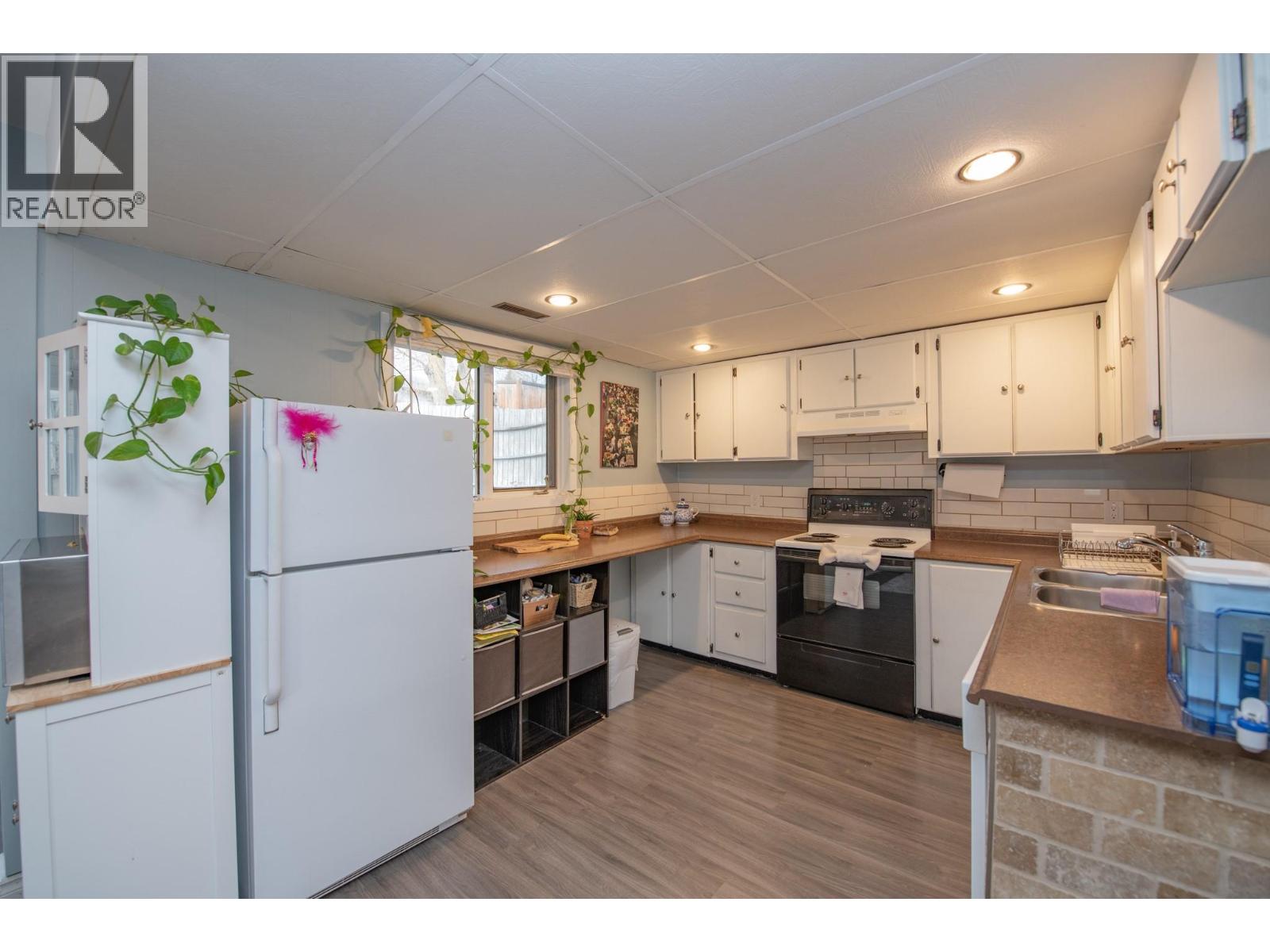 Well-maintained two-storey home with income-generating suite, ideally located within walking distance to amenities. The main floor features an open-concept living, dining, and kitchen area. The cozy living room offers a natural gas fireplace and sliding glass doors leading to the patio. A proper dining space connects to the kitchen with a convenient raised eating bar. The bright kitchen includes stainless steel dishwasher, ample counter space, and plenty of storage. The primary bedroom easily accommodates a king-size bed and offers generous closet space along with in-suite washer and dryer. A second bedroom and a full bathroom with tub/shower complete the main level. Downstairs you’ll find a bright one-bedroom daylight suite with its own open-concept living, dining, and kitchen area. The suite features a spacious living room, full bathroom with tub/shower, and in-suite laundry—an excellent mortgage helper. The private backyard offers access for both the main home and the suite, with attractive fencing, room for a garden, green space, and has a utility shed. RV parking and additional tenant parking are available in the driveway. Newer furnace and AC. Enjoy a prime location just moments from Buy Low Foods, the gym, hockey arena, schools, and other amenities, all within a desirable school catchment. (id:58842)
