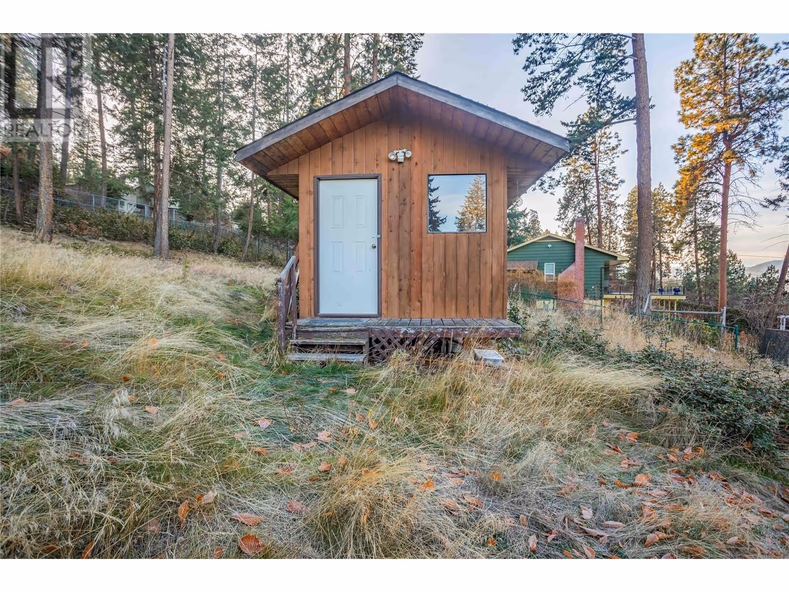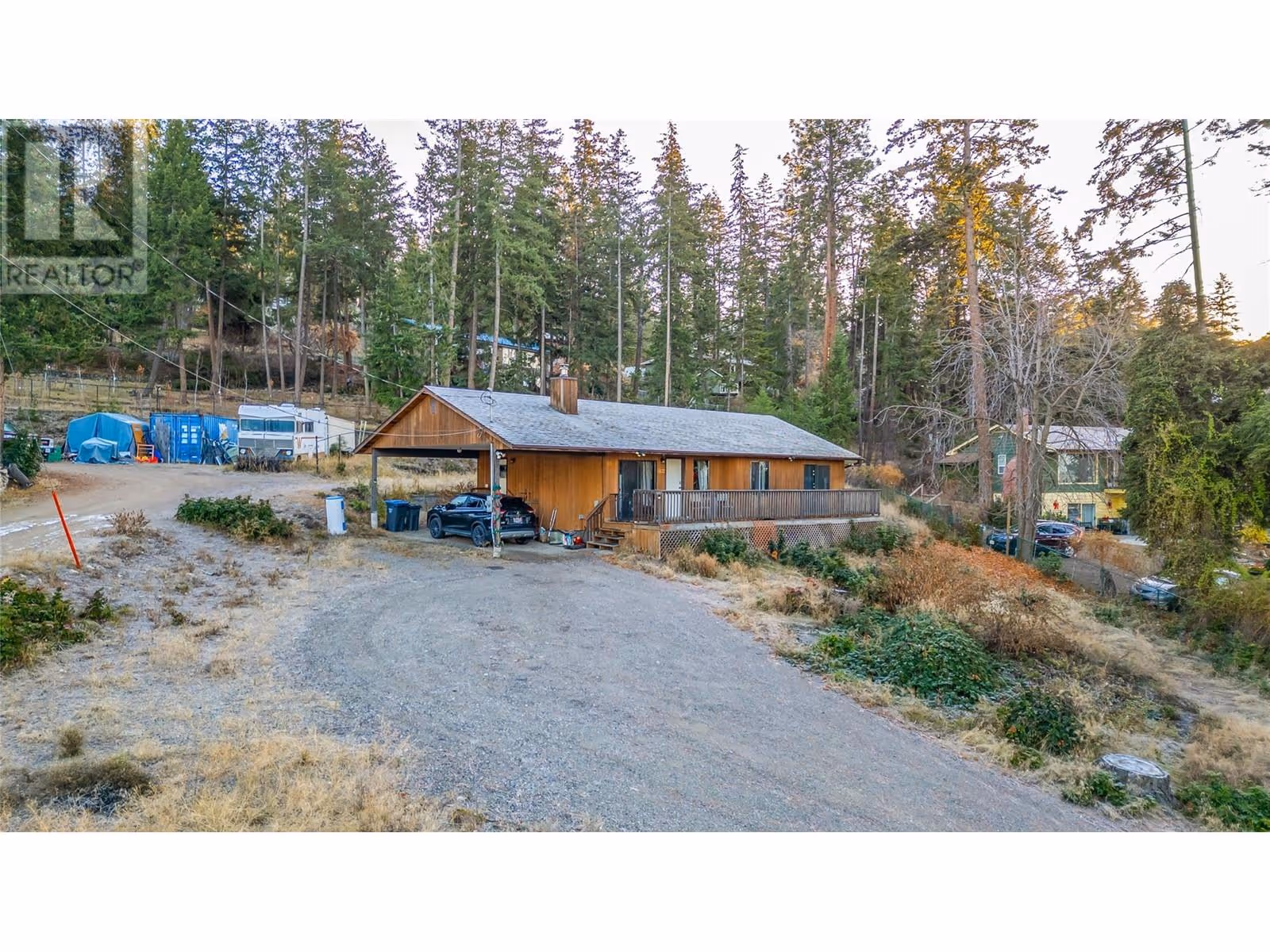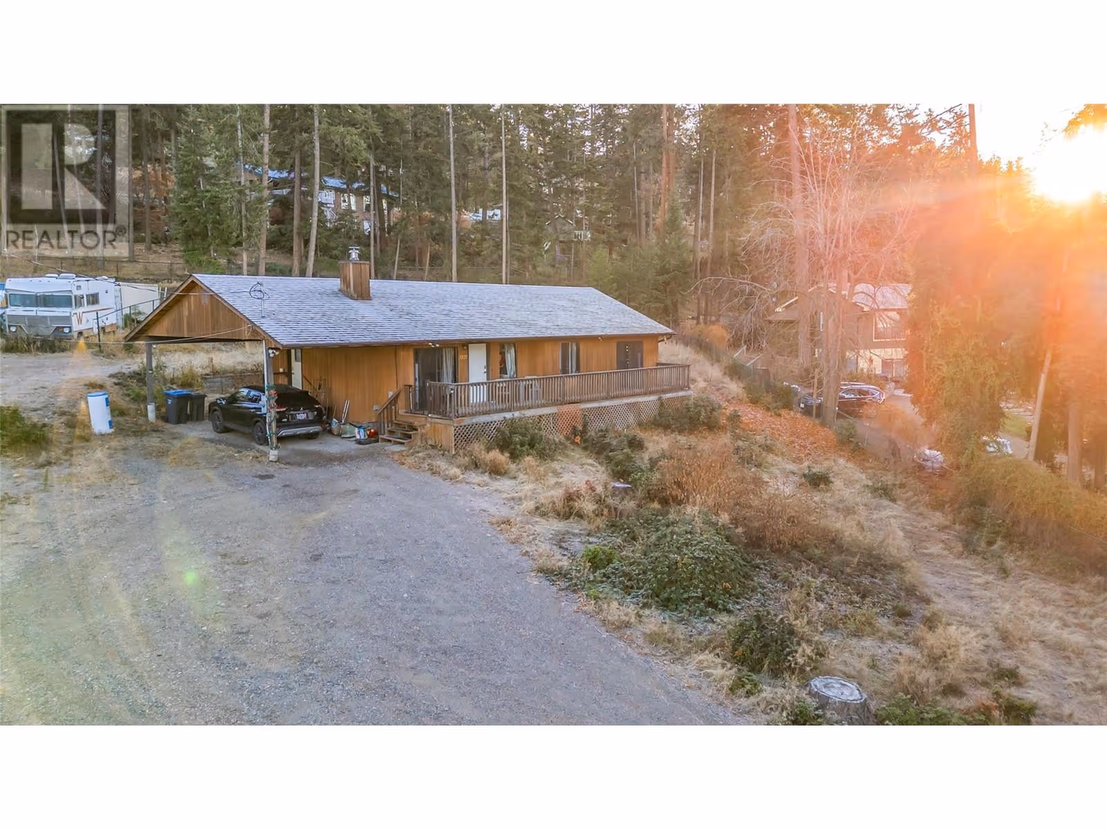 Welcome to 5127 Lakeshore Road! Nestled among the serene trees along Lakeshore Road, this charming home on a generous .85-acre lot offers a peaceful retreat in a natural setting. With 2 bedrooms and 1.5 baths, this cozy property is ideal for those seeking tranquility and a connection to nature. The functional kitchen and dining area feature open display shelves and a seamless flow into the living room, where sliding glass doors lead to a private rear patio,perfect for outdoor relaxation. The living room also opens to a spacious front balcony that stretches across the home, offering elevated views and fresh air. The primary bedroom boasts double closets, a built-in vanity, and a convenient 2-piece ensuite, along with sliding glass doors that connect to the front balcony. Large windows fill the home with natural light, creating a warm and inviting atmosphere. Additional highlights include a spacious laundry room with a utility sink and access to the crawl space, a powered shed/workshop for projects or storage, and ample parking with a large covered carport. Great future potential once property is connected to sewer services. (id:58842)