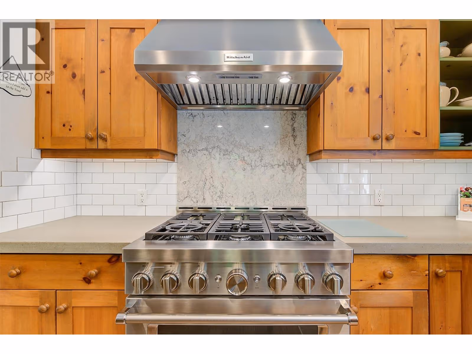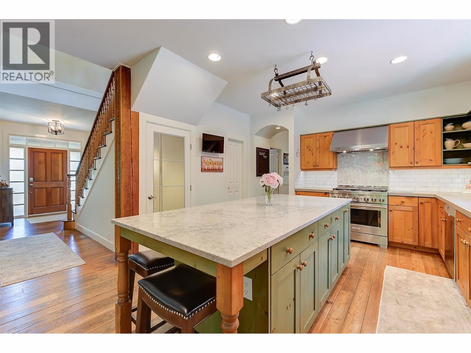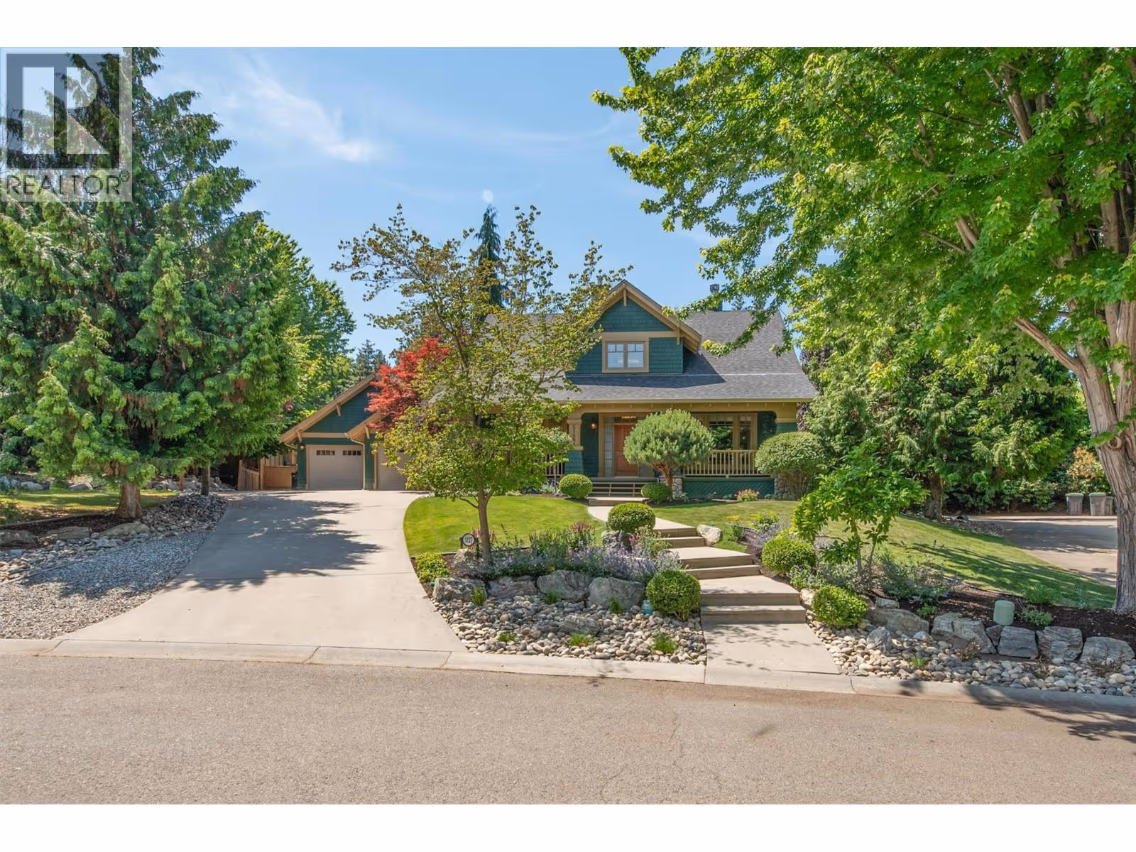 Nestled on a quiet cul-de-sac in one of Kelowna’s most desirable neighbourhoods, this 5bdrm, 5bath (incl. legal suite) home blends timeless charm w/modern convenience on a beautifully landscaped 0.4 ac lot with a detached 800sqft heated garage, a perfect space for an car enthusiast or future carriage home. From the welcoming front porch to the mature greenery, the home’s character is immediately felt. Inside, a warm open-concept layout is anchored by a charming double-sided river rock f/p, the kitchen features SS appl, white quartz counters & a large island, all designed for seamless living and hosting. Upstairs, two spacious bdrms w/ensuites including the primary which offers a walk-in closet, 5-pc bath & private porch overlooking the backyard. Two more bdrms & 3-pc bath are located on the lower level as well as the legal 1-bdrm suite (2017 addition) with its own entrance, kitchen & laundry...ideal for guests, extended family or rental income. Outside, is an absolute private oasis... a manicured yard, koi pond, garden beds, grassy areas & ample room for a pool. The outdoor covered patio with easy care Trex decking comes complete w/built in BBQ, dual gas outlets & automated screens. This residence has been meticulously maintained with a new roof, newer exterior paint, new garage doors, updated windows, upgraded electrical and is just steps to Okanagan Lake, Cedar Creek Park (off leash dog park) and world class wineries...Cedar Creek Estate Winery & Summerhill Organic Winery. (id:58842)