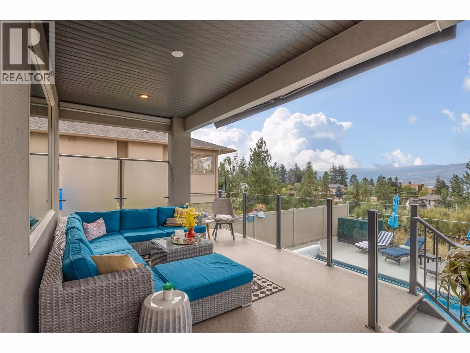 LOCATION, LOCATION – Upper Mission 4-Bedroom with Pool & Lake Views. Stunning 4-bedroom, 3-bathroom home in highly sought-after Upper Mission offering panoramic lake and city views from nearly every room. Bright, open layout with spacious living area, large windows, and a gourmet kitchen featuring granite countertops, generous island, and butler’s pantry with second fridge. Primary suite includes a walk-in shower; three additional bedrooms plus den provide ample space for family or work-from-home. Walkout basement with expansive windows, soundproofed ceilings, and open design ideal for entertaining, games, or media space. Outdoor living at its finest with saltwater pool, secluded hot tub, covered balcony with awning, and fully fenced low-maintenance yard with artificial turf — perfect for pets and kids. Enjoy ultimate privacy with a property behind that is not suitable for subdivision. Located on a quiet, private 6-home street, just minutes to top-rated schools, parks, trails, wineries, and the new shopping centre (Save-On-Foods, Shoppers, Starbucks). Extras include water in strata fee ($200/month), dual-zone HVAC, wide plank engineered hardwood, and quality finishes throughout. A rare opportunity to own a view property in one of Kelowna’s most desirable neighbourhoods. (id:58842)