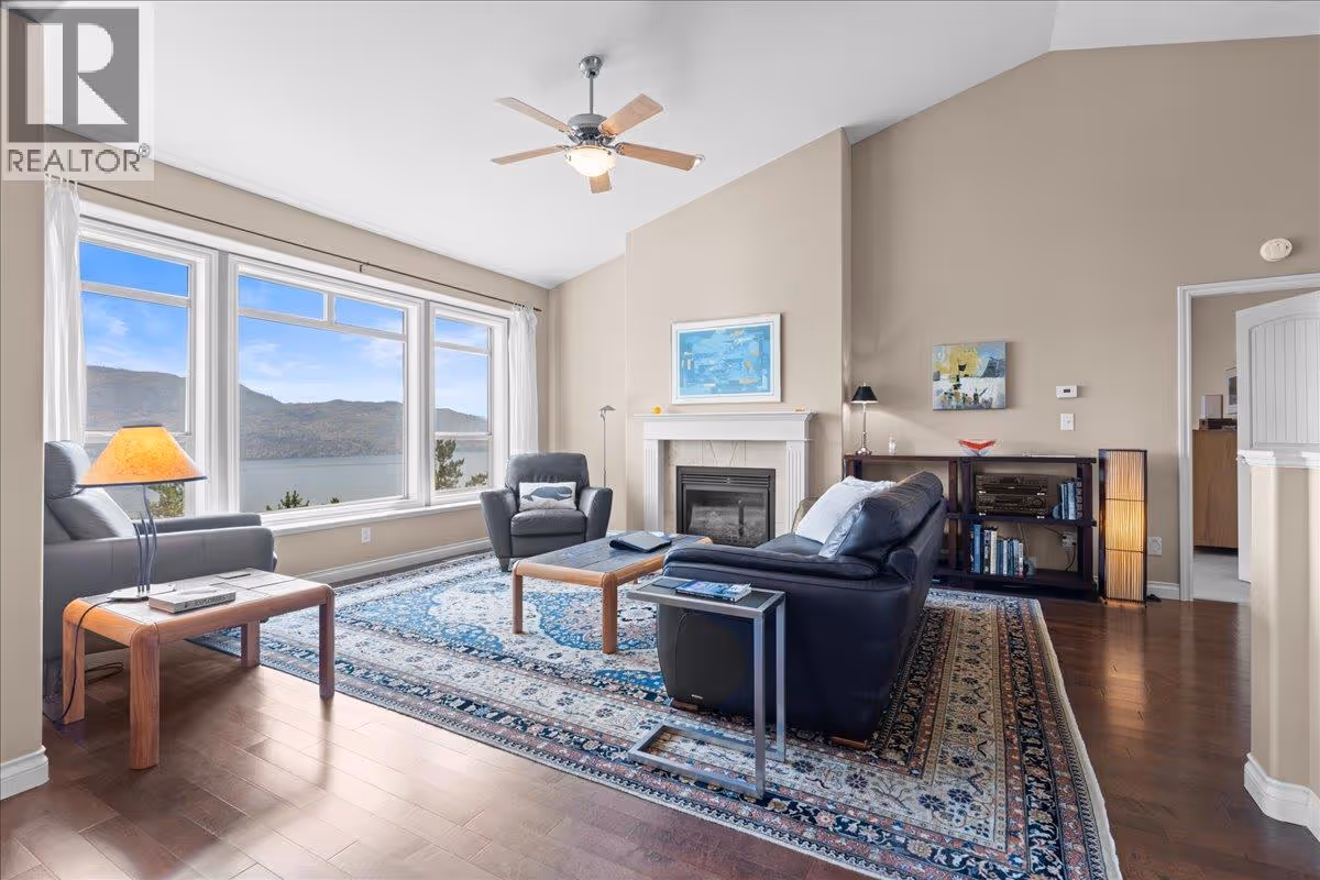 Enjoy spectacular Okanagan Lake and mountain views from every level of this beautiful rancher walkout in the sought-after Island View Villas. Designed for easy main-floor living, the home features large windows to capture the stunning scenery, hardwood floors, stainless steel appliances, cozy gas fireplace, spacious pantry, and a large laundry/mud room with convenient side door access. The primary bedroom features a walk-in closet and an en-suite bathroom with a soaker tub, shower, and dual sinks. The lower level is perfect for entertaining and relaxation, complete with a family room, rec/games room, office or gym space, a designated area for a future wine room, additional bedroom, full bathroom, a storage/utility room and access to a covered private patio— all with beautiful lake and mountain views. The upper covered deck is ideal for entertaining while soaking in the breathtaking scenery and features a gas BBQ outlet. Additional highlights include a double garage, plus two extra parking stalls on the driveway, and access to a community clubhouse. All this, just minutes from shopping, restaurants, and amenities. The perfect place to embrace the Okanagan lifestyle — why settle for anything less? (id:58842)