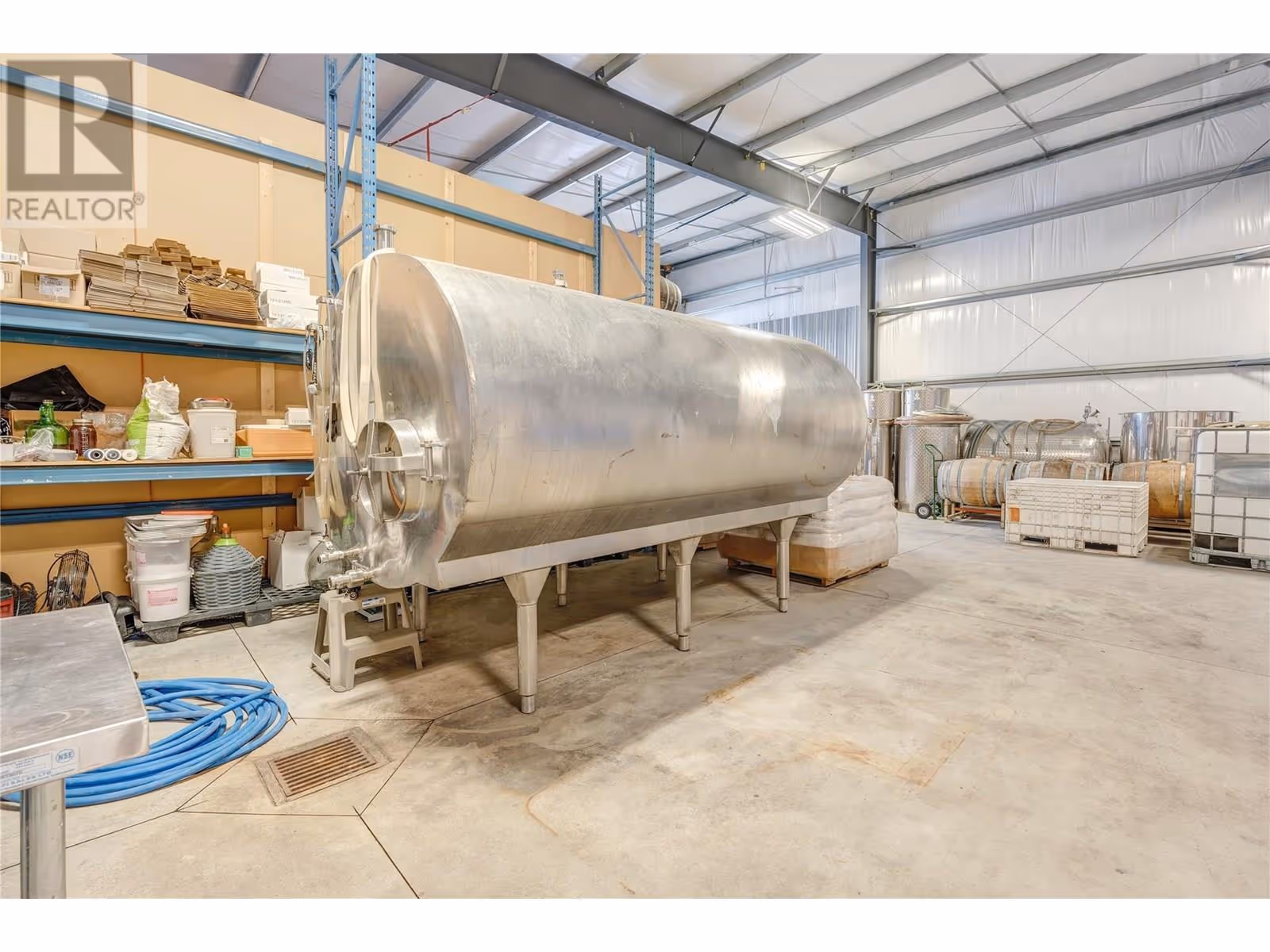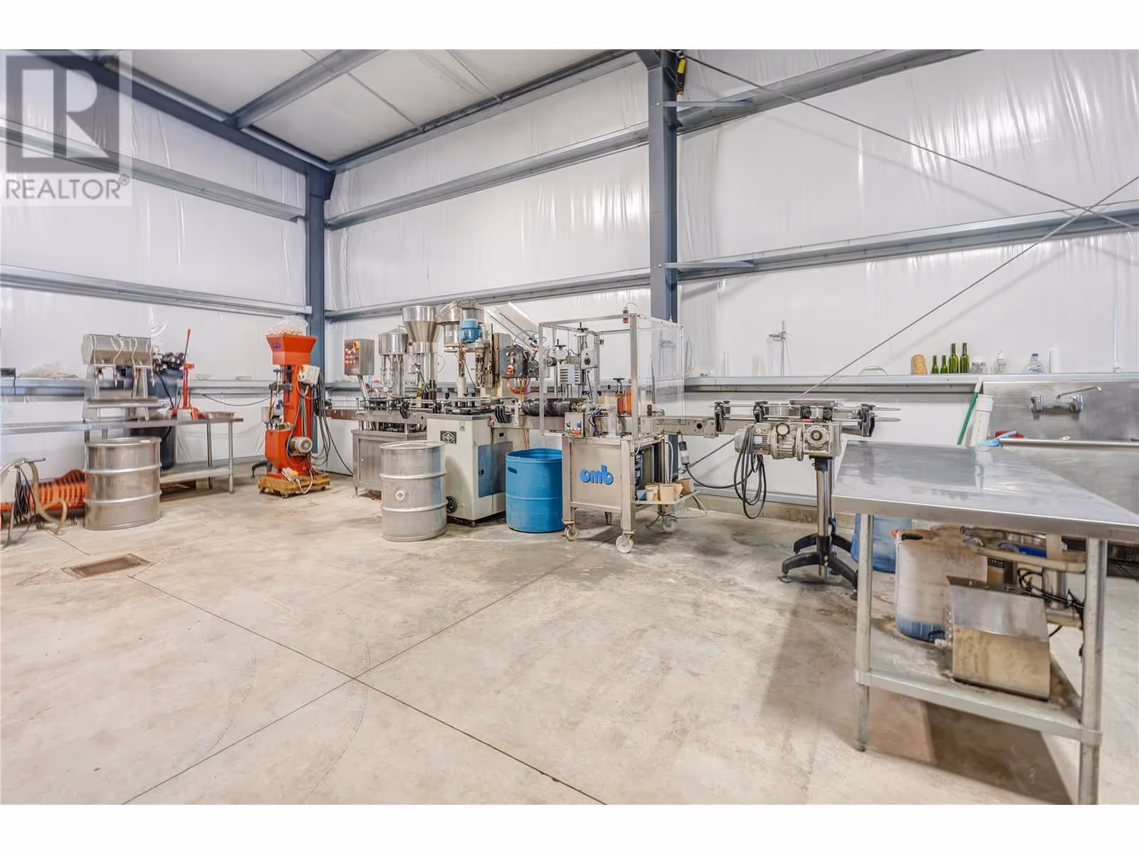 Nestled on 5.53 acres, this prime vineyard property offers a unique opportunity for wine enthusiasts, entrepreneurs, or those with a passion for crafting artisanal beverages. With 4 acres of established vines, including Pinot Noir, Riesling, Pinot Gris, and Gewurztraminer this property is designed for those ready to take their winemaking, distilling, or cider-making ventures to the next level. The stunning industrial-style processing facility boasts 16’ clear-span ceilings and a versatile layout, ideal for winemaking, vinegar production, distilling, or brewing. The building is equipped with large exterior overhangs and a plumbed natural gas line (not yet hooked up), providing a solid foundation for future enhancements. Additionally, top of the line GAI bottling line and all necessary winemaking and distilling equipment (including Muller still) makes this an exceptional turn-key operation. Enjoy breathtaking valley and vineyard views from every corner of the property, and take in the tranquil atmosphere as you consider building your dream home or expanding your business. A rustic, charming country farm home and detached garage offers basic amenities while you plan your next steps. With zoning that allows for a winery, cidery, distillery, and more, the possibilities are endless. Whether you’re looking to build a thriving business or simply immerse yourself in a picturesque lifestyle, this vineyard property is ready for your vision. GST applicable. (id:58842)