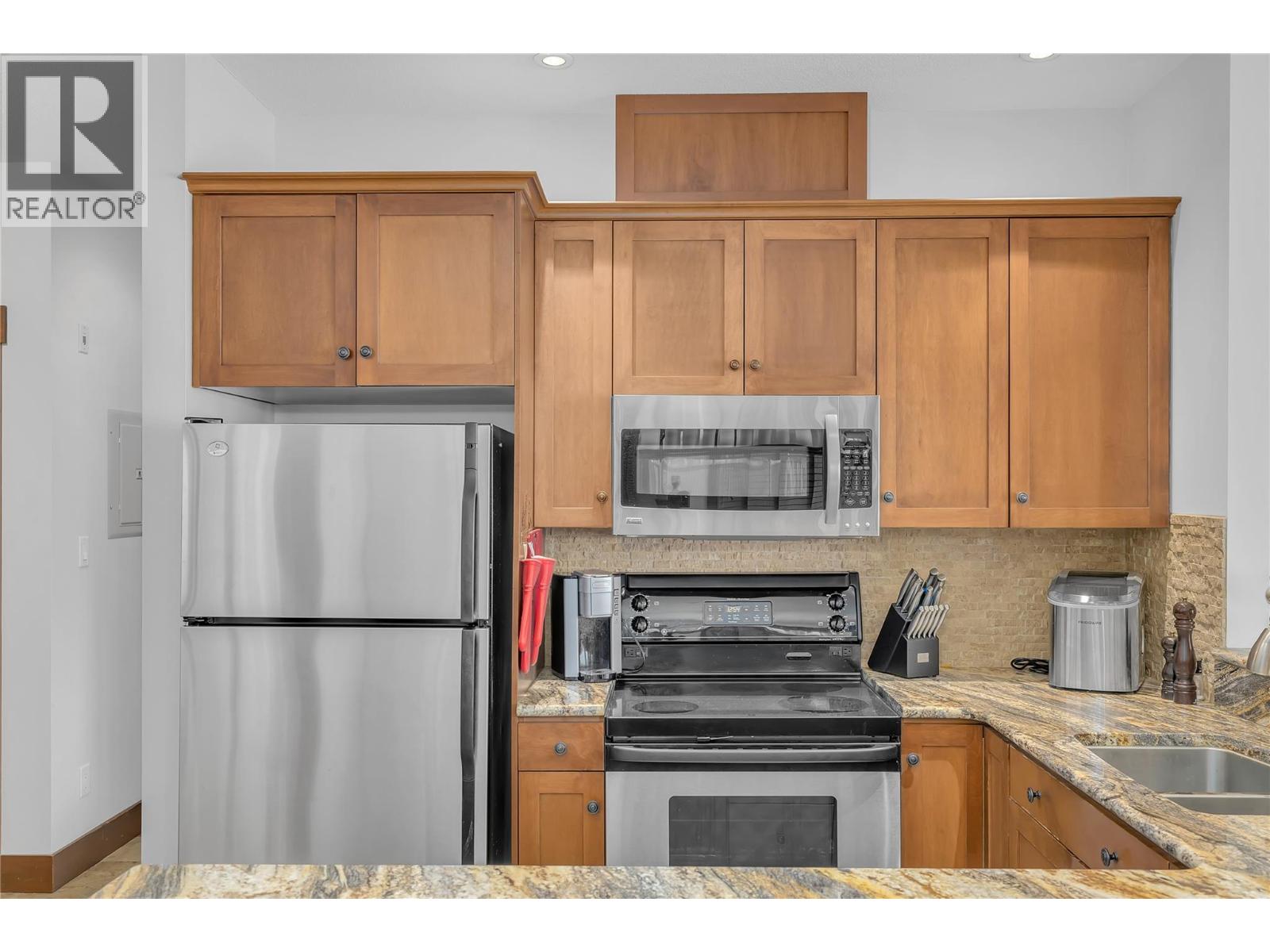 Experience the ultimate in alpine living with this exceptional 2-bedroom, 2-bathroom corner residence in one of Big White’s most coveted village-centre locations. Perfectly positioned in the heart of the action, this prime ski-in/ski-out retreat places you just steps from the gondola, restaurants, shopping, and all the vibrant energy of the village. After an unforgettable day on the slopes, ski directly to your door and unwind in your own private hot tub — the perfect après-ski indulgence. Designed for both comfort and entertaining, the spacious kitchen is beautifully appointed with granite countertops, stainless steel appliances, a mini wine fridge, and an oversized dining area with seating for 8, ideal for hosting family and friends. The open-concept living space is warm and inviting, anchored by a stunning rock-faced gas fireplace and framed by quality finishings throughout, including hardwood and slate tile flooring, designer lighting, and abundant storage. Additional features include secure underground parking, a private storage locker, and access to desirable resort-style amenities including a pool and fitness centre. An outstanding investment and lifestyle opportunity, this property is exempt from the Foreign Buyer Ban, Foreign Buyers Tax, Speculation Tax, Empty Homes Tax, and Short-Term Rental Ban. (id:58842)