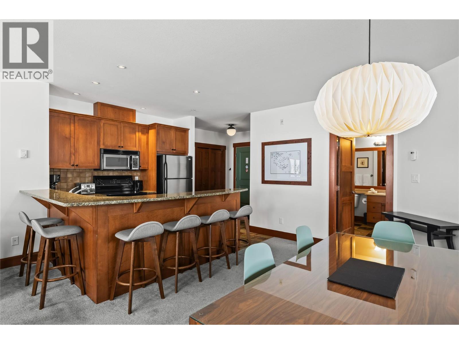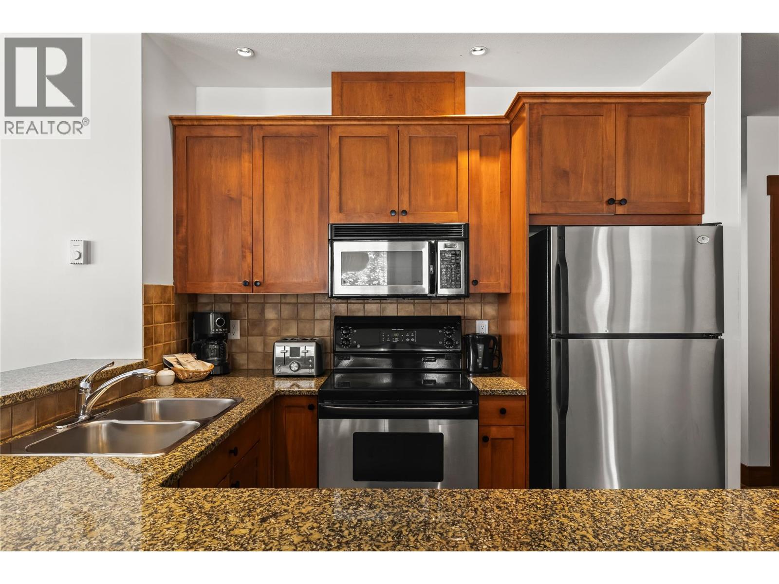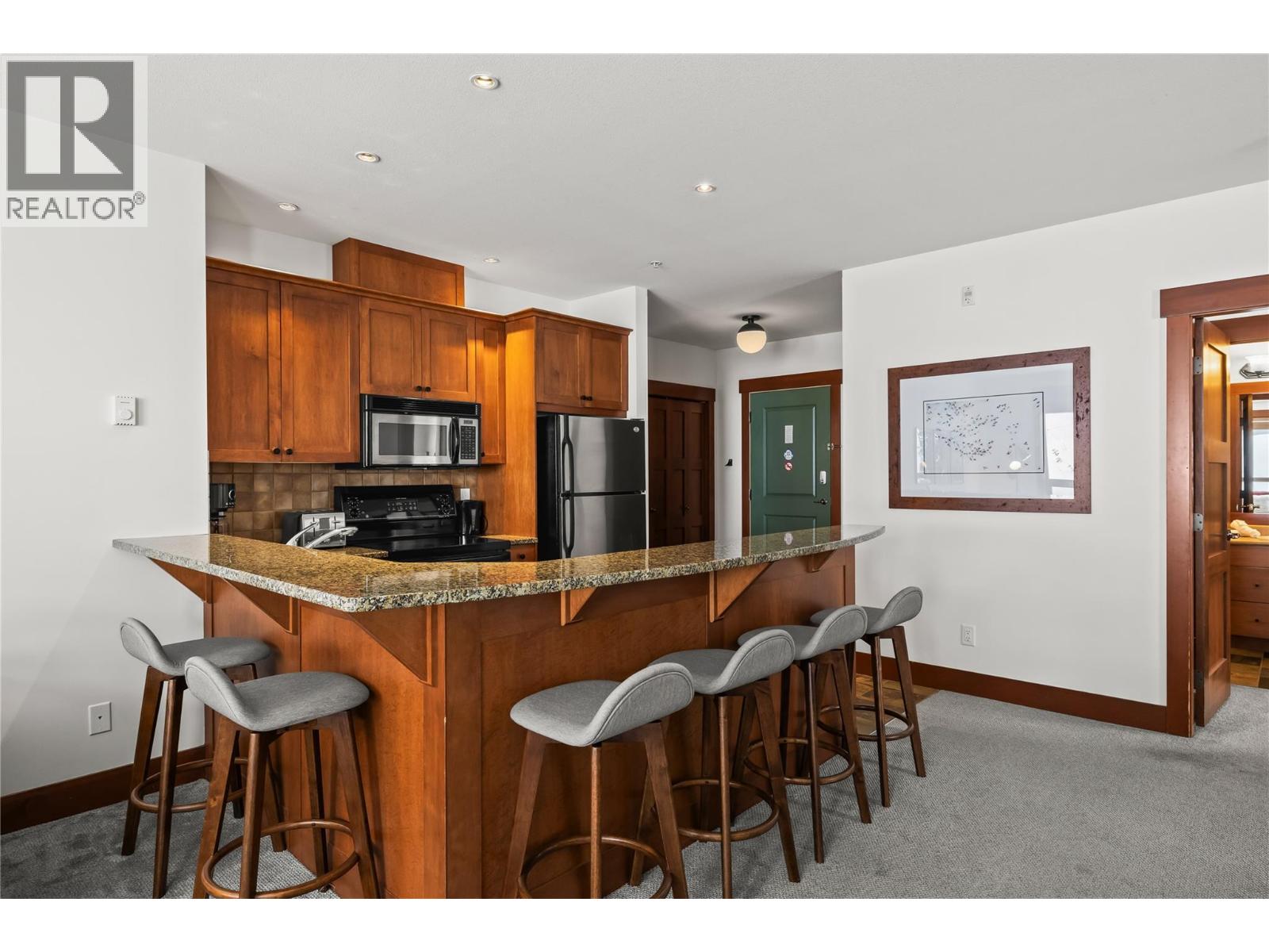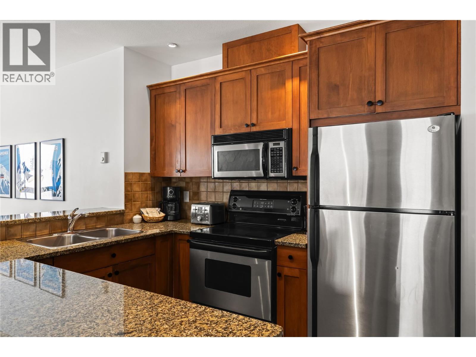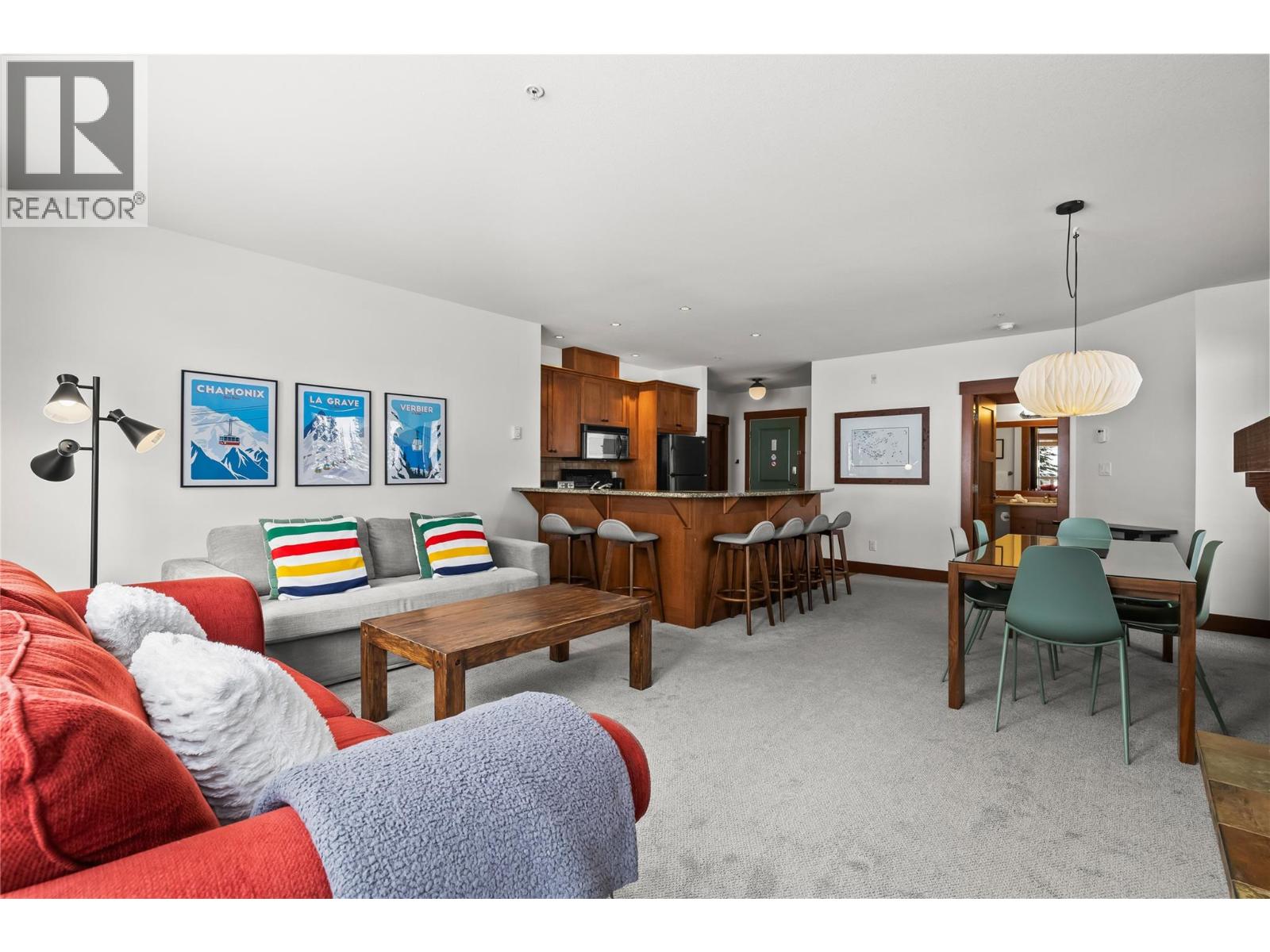 Luxury and lifestyle come together at Stonebridge, one of Big White’s most sought-after residences. This exceptional third floor, two bedroom, two bathroom corner unit captures iconic views of the main ski run into the village, the famous clock tower, and stunning sunset skies—best enjoyed from your private hot tub. Thoughtfully designed for both relaxation and entertaining, the bright open-concept layout features granite countertops, slate tile, new carpeting, and a warm stone fireplace, with mountain views framed from every room. Offering three queen beds plus a fold-out sofa, the property comfortably sleeps up to seven guests, making it perfectly suited for family escapes or strong vacation rental potential. True ski-in, ski-out access places the slopes at your doorstep, complemented by one of the most conveniently located storage lockers on the mountain. Residents enjoy Stonebridge’s renowned resort-style amenities including an outdoor pool, fitness centre, underground parking, and restaurants all within the complex, along with the confidence of one of Big White’s most respected and well-managed strata communities. Whether you’re searching for a luxury mountain getaway or an investment in Big White’s vibrant village core, this property delivers exceptional comfort, convenience, and views. GST applicable. Turn-key and fully equipped—ready to enjoy or rent immediately. (id:58842)
