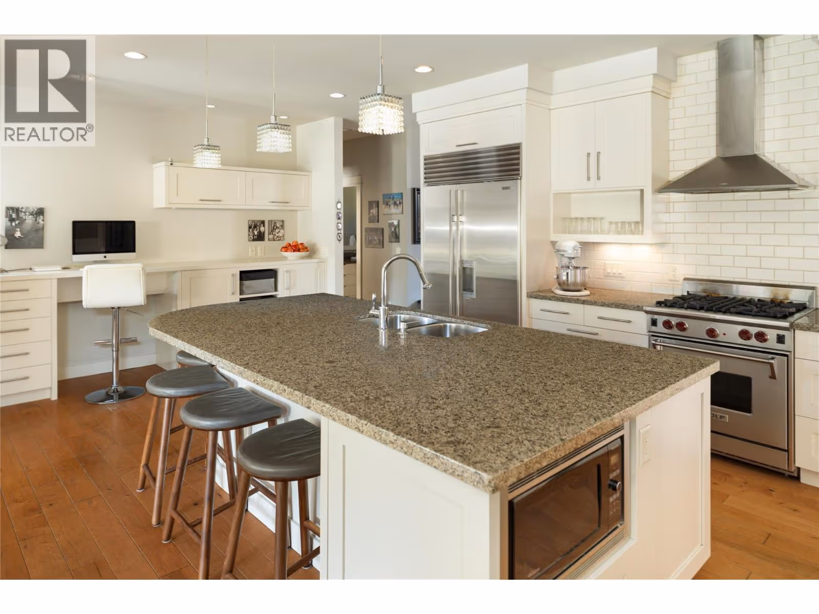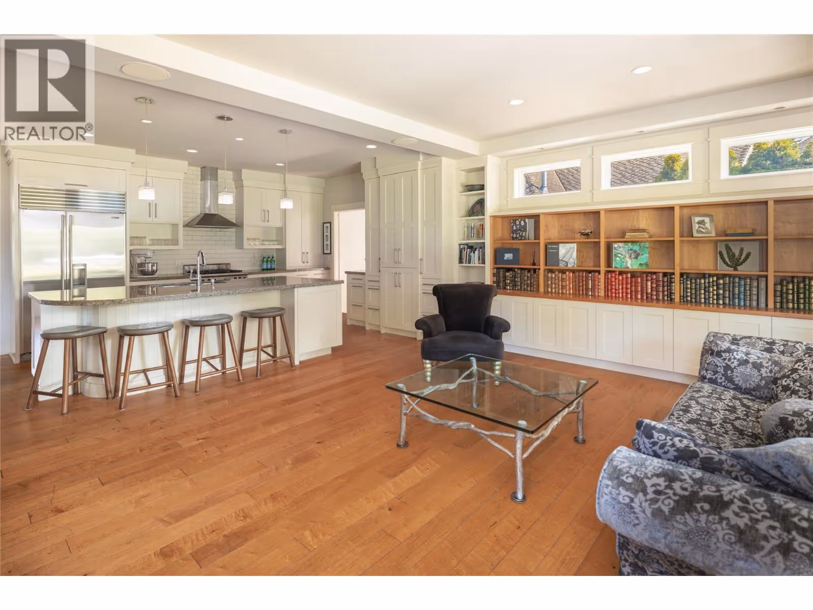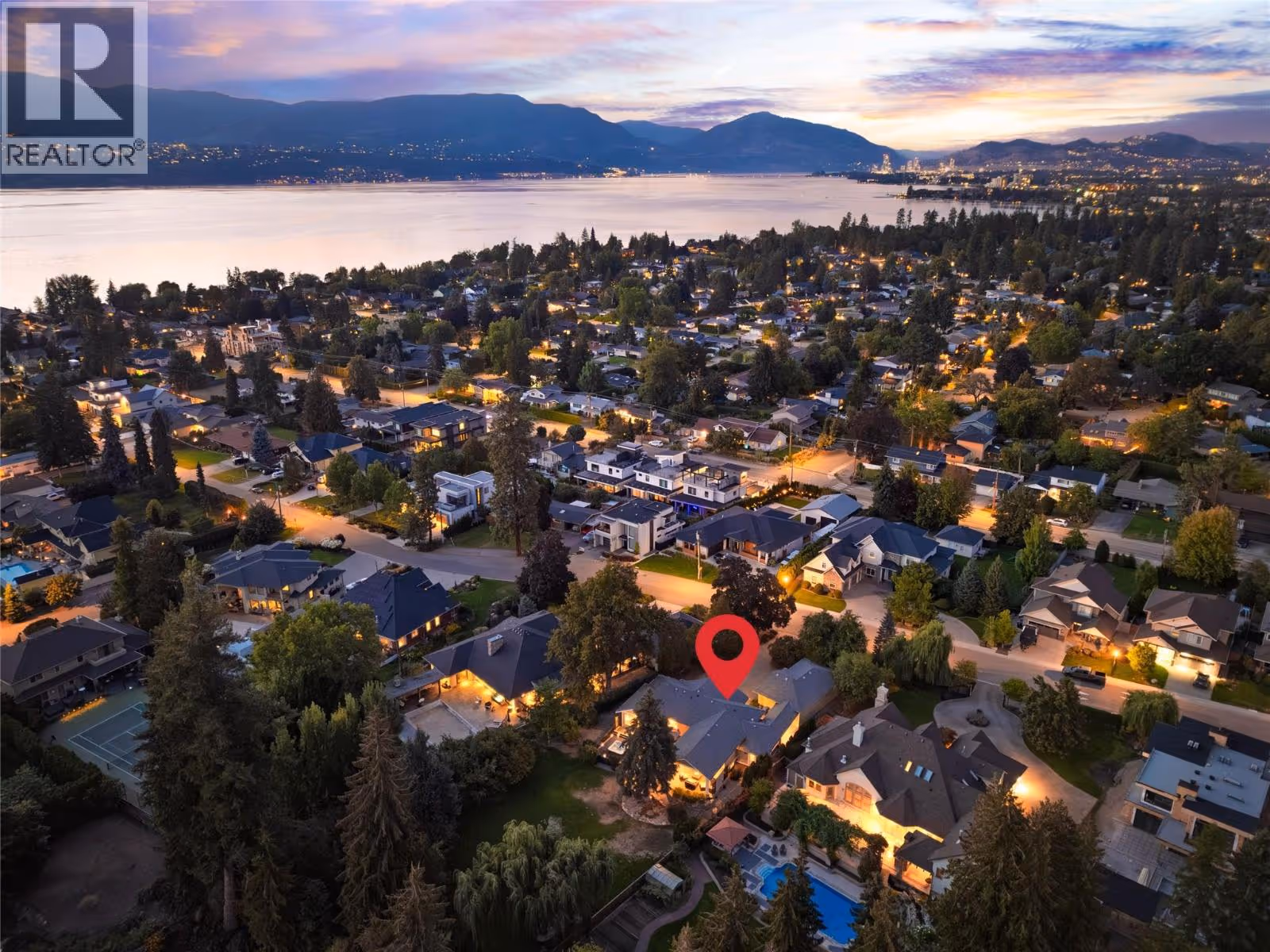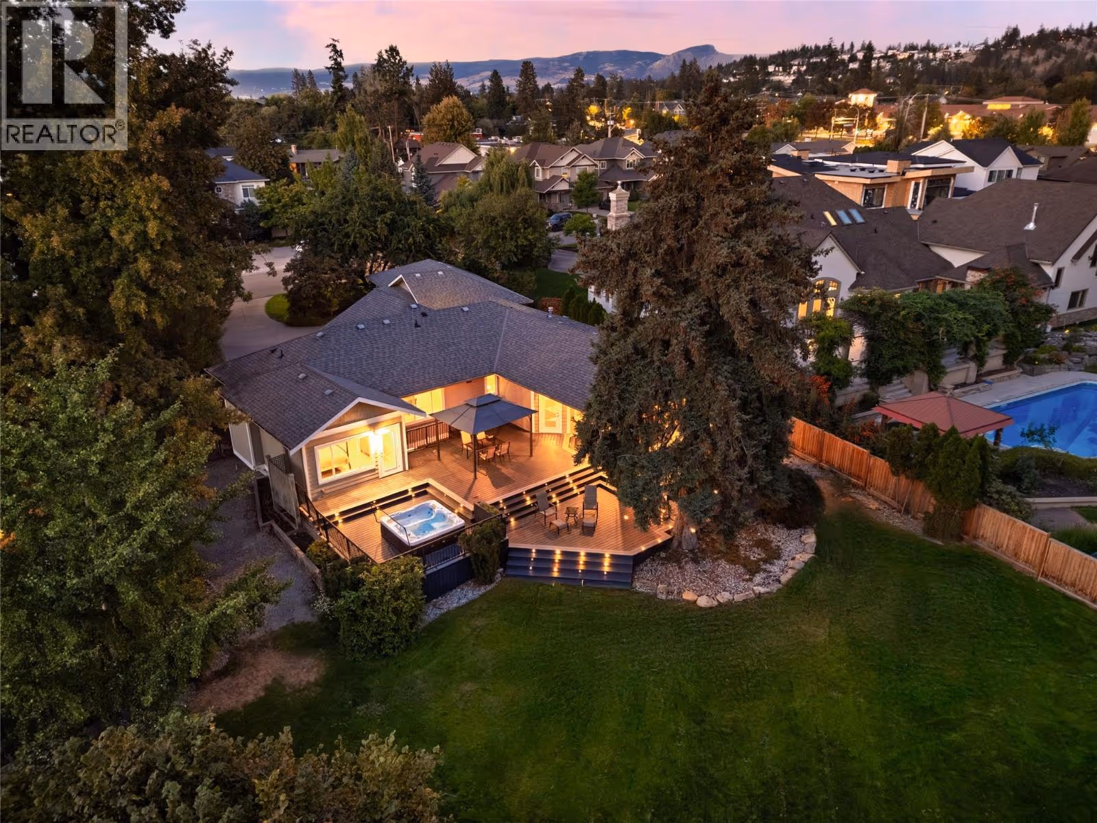 A rare opportunity on one of Kelowna’s most sought-after streets, this prestigious estate property offers timeless elegance, unmatched privacy & the ultimate Okanagan lifestyle. Set on an expansive 0.62-acre lot, the home is surrounded by mature greenery, creating a private, park-like setting just steps from the beach, boutique shops & the heart of the Lower Mission. Inside, rich wood flooring flows throughout the main level. The gourmet kitchen is designed for beauty & function with granite countertops, top-tier appliances & custom built-ins. A formal dining room sets the stage for memorable gatherings, while oversized windows connect the indoors seamlessly to the outdoors. Step outside to a backyard retreat rarely found in the city—flat, pool-ready land framed by towering trees & professional landscaping. Multiple seating areas, an outdoor fireplace, & built-in speakers create the perfect environment for entertaining or relaxing in complete privacy. The main level offers true convenience with a spacious primary suite featuring a walk-in closet & luxurious ensuite, along with two additional bedrooms & a full bathroom. The lower level expands the living space with a cozy family room, large recreation area, den, full bathroom & additional bedroom—an ideal multi-generational layout or flexible space for guests. Completely fenced, fully irrigated, & designed for year-round enjoyment, this home is a rare find. Combining location, lot size & lifestyle, it is truly unmatched in today’s market. (id:58842)