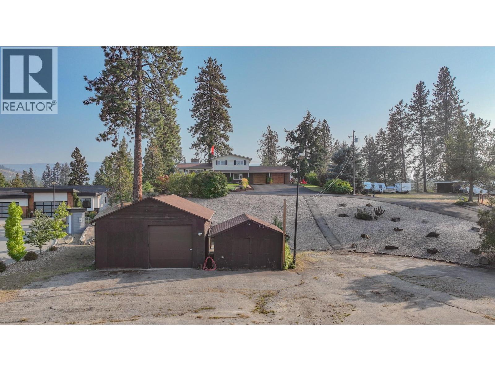.Luxury Living with Development Potential. An exceptional opportunity awaits with this rare 1.5-acre property, zoned for multi-family development and perfectly positioned minutes from town. The immaculate residence offers a unique split-level design with soaring solarium-style windows that flood the dining area with natural light and frame sweeping BX views. A welcoming living room with gas fireplace and hardwood floors creates a warm and inviting atmosphere, while the updated kitchen (2023) features stainless steel appliances, induction range, ample storage, and a charming breakfast nook overlook the landscape. The spacious primary suite offers a walk-in closet, full ensuite, and Juliet balcony retreat. Additionally a spare bedroom and full bath on the same level. Flexible main-level spaces include a bright office, laundry, guest bath, and a versatile family/flex room with sliding glass doors to the backyard . The lower level adds a guest bedroom/ flex space and storage. Outdoors, enjoy low-maintenance landscaping, private entertaining areas, and a serene ravine backdrop. A heated detached shop with 200-amp power, mechanics pit, and abundant storage provides endless possibilities. Useable flat areas for storage, garden, and ideas. Whether you choose to hold, develop, or simply enjoy refined living, this property combines luxury, versatility, and investment potential in one remarkable package (id:58842)