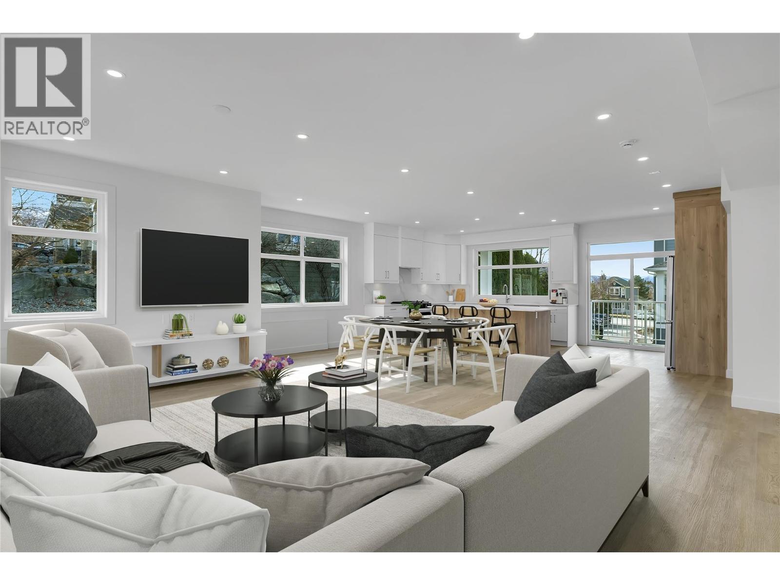 Unparalleled Living in Kettle Valley. Why Wait for Someday? Your Kettle Valley Story Starts Now. Brand New, Move-In Ready PTT exempt Townhomes, Live/Work Homes, & Condos. Perfectly positioned parallel to Main Street, Parallel 4 is more than a new address. It’s a living hub designed around the 4 cornerstones of an unparalleled life: community, nature, purpose, & growth. It's the only one like it in the community! At approx. 2,034 sqft the open-concept main floor of #124 boasts a spacious, gourmet two-tone kitchen with a large island, designer finishes and Wi-Fi enabled Samsung appliances including fridge, dishwasher, gas stove & built-in microwave. Enjoy seamless indoor/outdoor living & bbq season with the deck off the kitchen. Retreat to the beds upstairs. The primary has a large walk-in closet & ensuite with rainfall shower & quartz counters. 2 additional beds, a full bath, and laundry complete this level. Other designer touches include 9ft ceilings, a built-in floating tv shelf in the living room, custom closet shelving, a built-in bench in the mud room, & roller blinds. This home features an xl double side-by-side garage wired for EV. Home 124 boasts a lot of yard space! Access the front & side yard from the main level entrance, with gated access to Chute Lake Road. Live steps away from top-rated schools, endless parks and trails, grocery options, award-winning wineries & more. Townhomes starting from $734,900. Showhome open at #106 Sat-Sun 12-3pm. (id:58842)