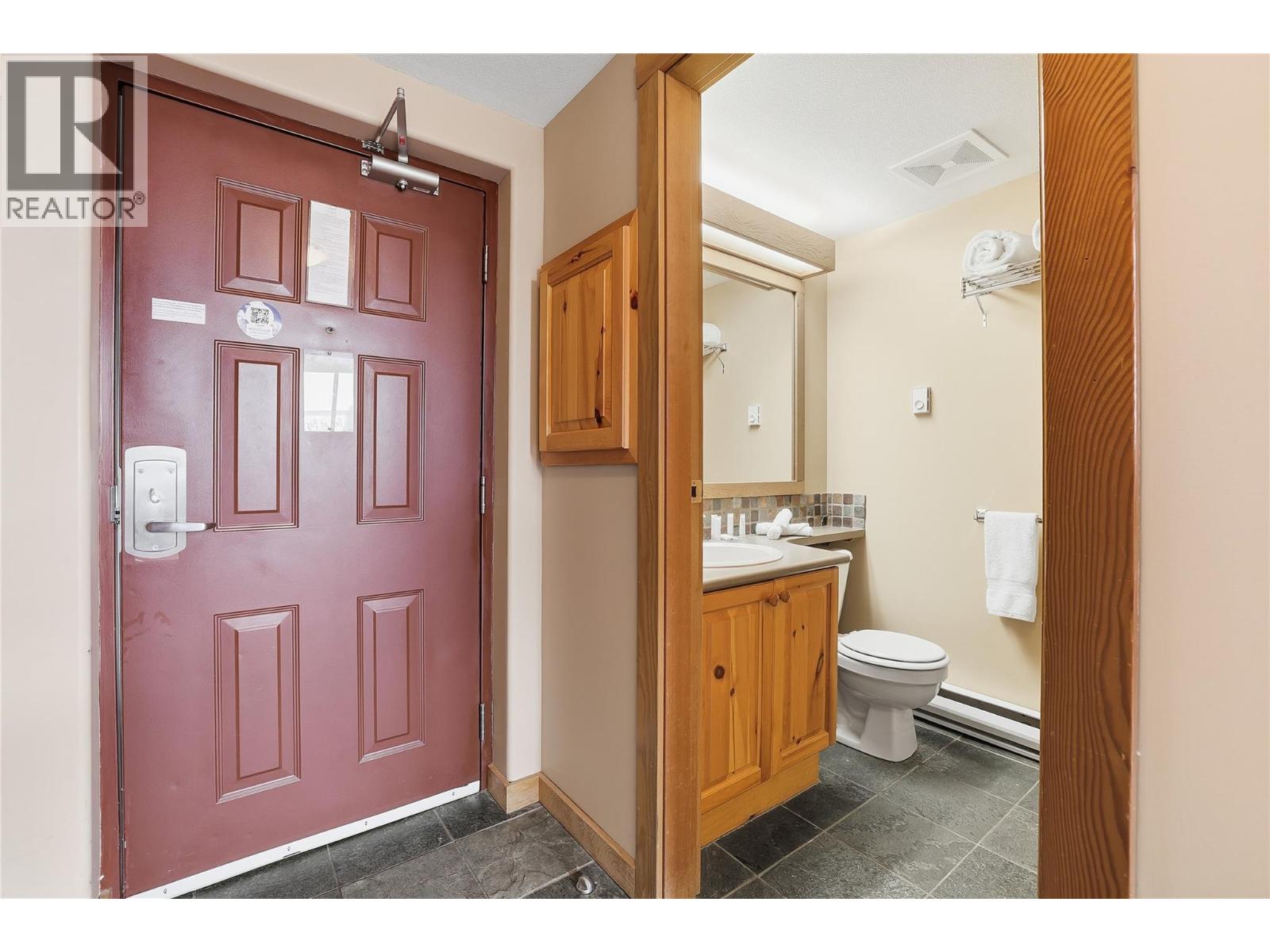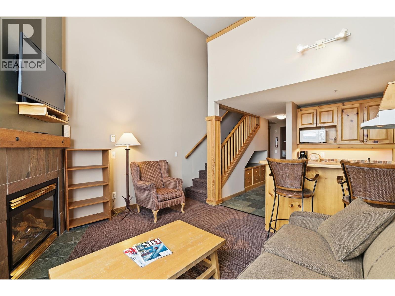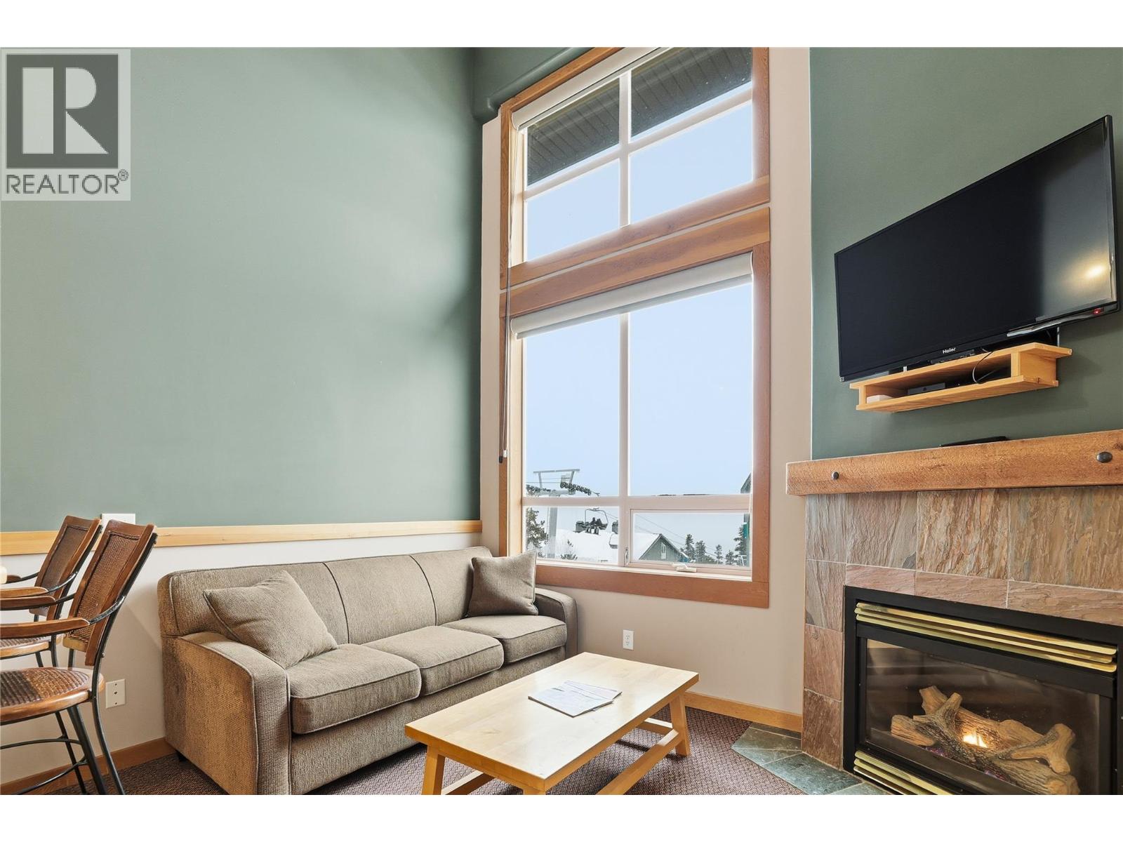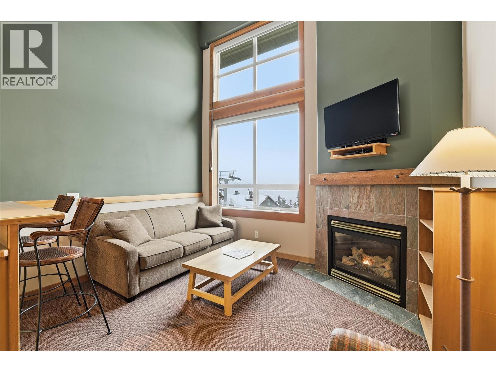 Experience the best of Big White from this prime village location at Chateau Big White. Just steps from shops and restaurants, you can also ski directly from your front door to the Plaza Chair for effortless access to the slopes. This one-bedroom loft offers a spacious feel at an affordable price point. Featuring vaulted ceilings and a cozy fireplace, it’s an inviting retreat—perfect as a weekend getaway or an attractive rental investment. The building also offers convenient amenities including underground parking, secure ski and snowboard storage, and a shared hot tub to relax in after a day on the mountain. (id:58842)