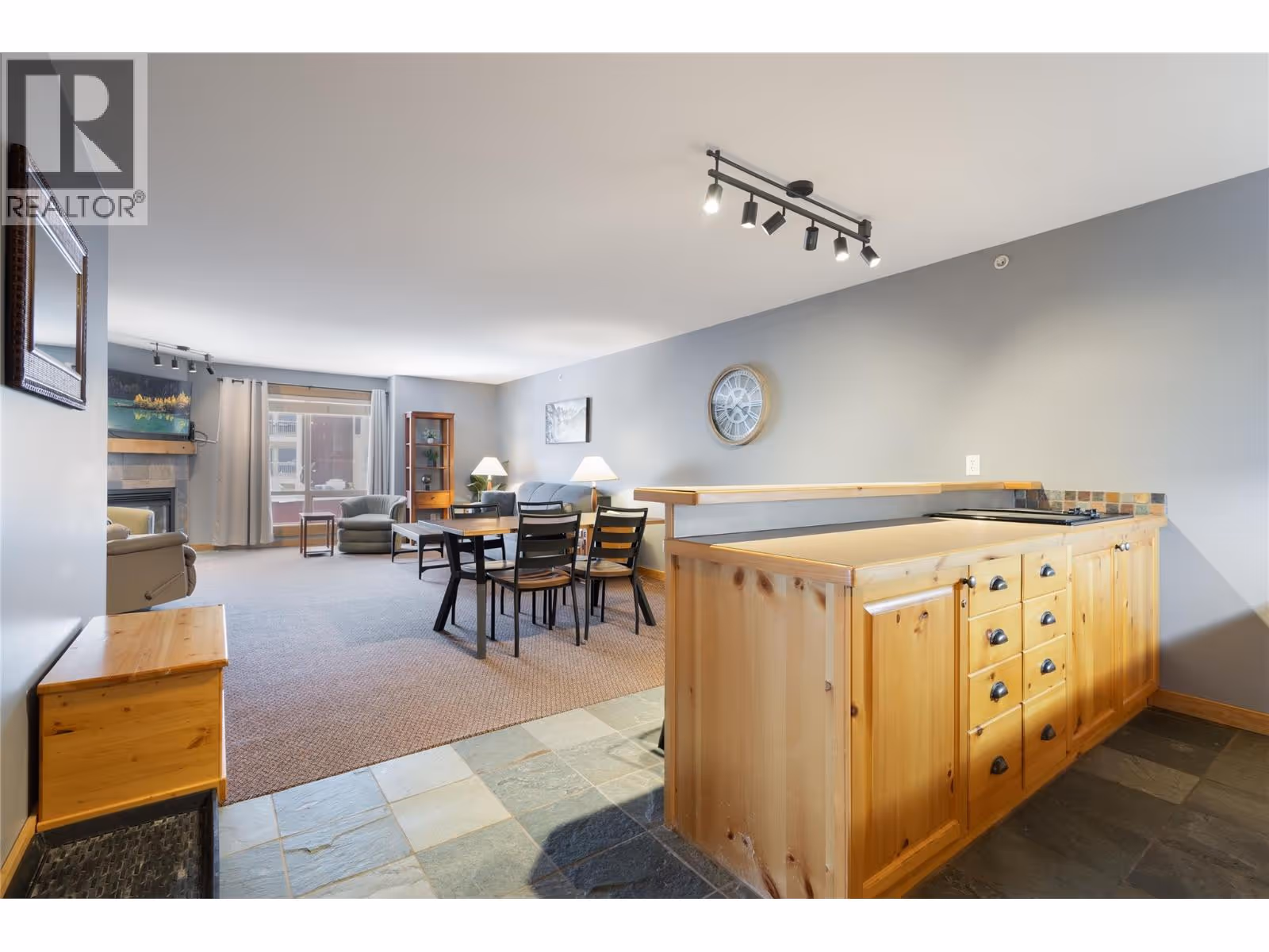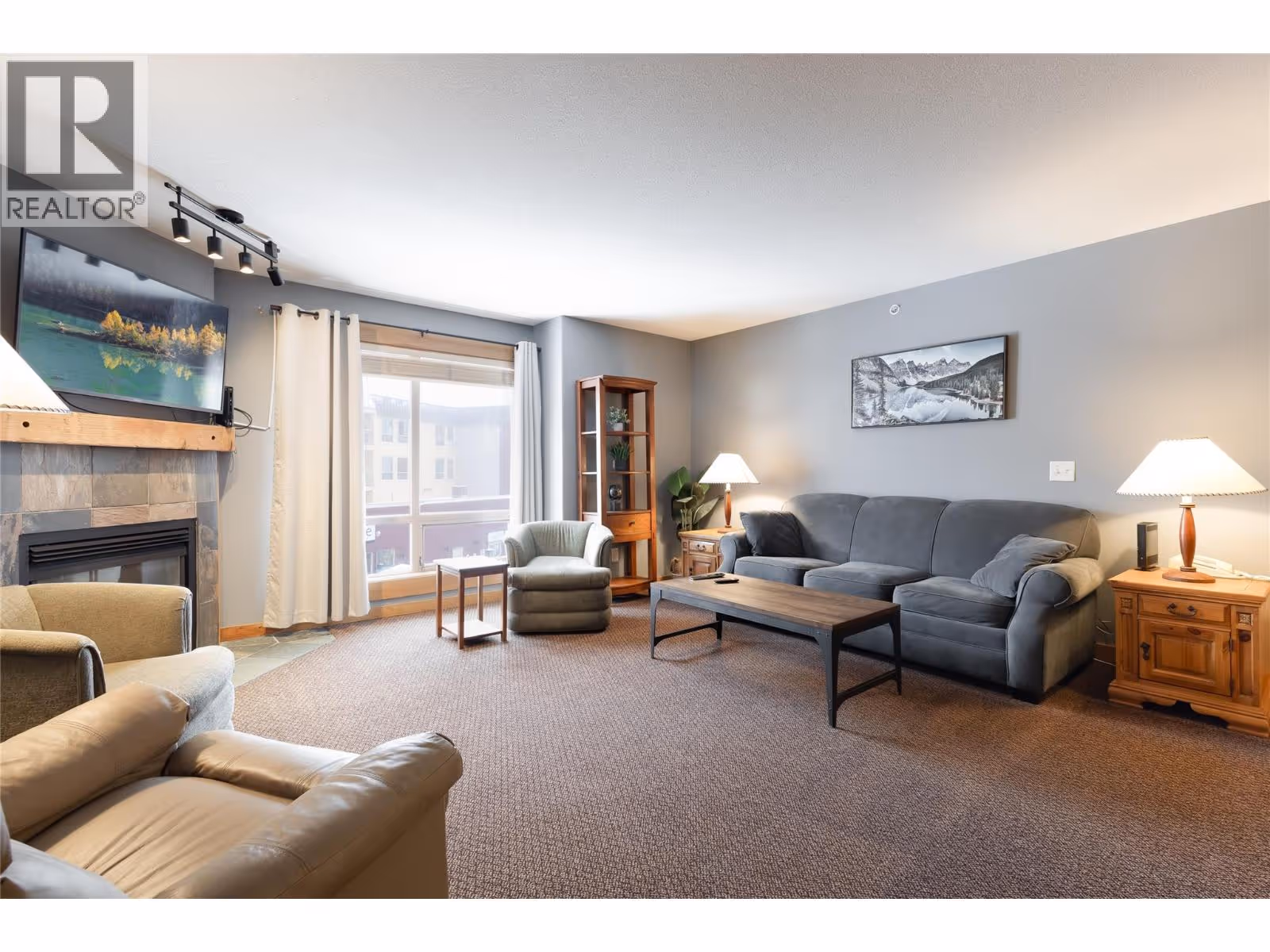 Discover the ultimate ski-in/ski-out opportunity with this top-floor, corner unit nestled right in the heart of the village! Whether you're an investor looking for a prime rental property or a mountain lover seeking your own slice of alpine paradise, this spacious 1-bedroom, 1-bathroom gem is ready to impress. Step inside one of the largest units in the building and be greeted by an open, airy space that comfortably accommodates up to 4 guests. Enjoy the warmth of the gas fireplace, whip up meals in the fully equipped kitchen that whole family can enjoy. Strata fees include heating, cooling, wifi and cable making it an effortless investment with no surprises. Leave your car in the designated parking spot, store your gear in the private locker, and hit the slopes right beside the Plaza Chair. The location, space and amenities tick all the boxes to ensure you maximize on nightly rentals. After a day carving through fresh powder, relax in the communal hot tub or refuel at the renowned Black Diamond Restaurant—both just steps away. A property like this doesn't come along everyday and doesn't just make for a great investment, but a place to create memories for a lifetime (id:58842)