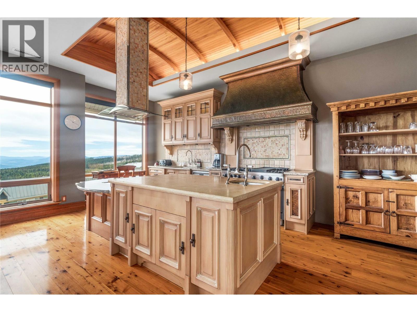 Located in the absolute best position at Big White Ski Resort, this exceptional top-floor, corner residence at Chateau Big White offers a location and view that are unmatched and truly unrivaled. Situated directly above the Plaza unload ramp in the heart of the Village, the condo enjoys spectacular panoramic views of the Monashee Mountains, ski runs, Main Village, and the resort’s iconic fireworks—views that cannot be duplicated anywhere else. Purpose-built for the original owner/developer, this 3,500+ sq ft residence is one of the largest condo units at Big White. Floor-to-ceiling windows flood the home with light and showcase the resort’s most dynamic vantage point. The chef’s kitchen features a Wolf griddle, 48” Ultraline/Viking gas range with double ovens, and a Sub-Zero refrigerator. With four bedrooms and four bathrooms, including an oversized primary suite with a massive ensuite and walk-in closet, the layout comfortably accommodates family and guests. Two wood-burning fireplaces create a warm alpine atmosphere, and this is the only pet-permitted unit in the building. Included is 1,180 sq ft of strata lot in Parkade 1, currently configured as three parking stalls and 665 sq ft of storage, with flexibility for alternative uses. Offering true ski-in/ski-out access and immediate Village amenities, this is a rare opportunity to own the premier condo at Big White. (id:58842)