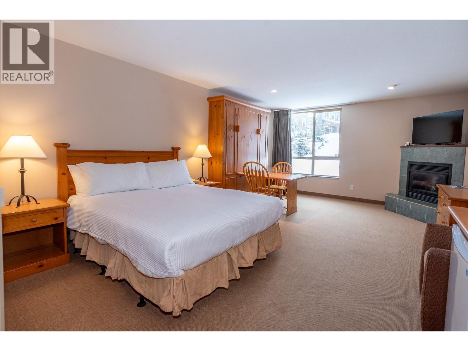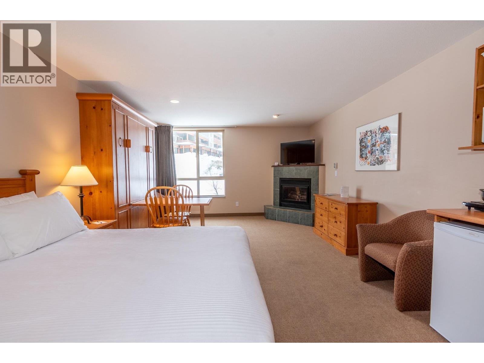 Opportunity awaits! Conveniently located in the heart of the Village at Big White Ski Resort, perfect for weekend getaways or all your mountain bike and ski adventures. Currently in the rental pool but owners only need to book their stay in advance or possibility to live in full time as well. Only a short walk to the gondola, village shops, restaurants and pubs! This Studio Suite has high ceilings, a cozy corner fireplace, Queen Size Bed & Murphy Bed along with the full bath and kitchenette. Brand new Carpet just installed. The Inn at Big White offers many amenities such as fitness room, games rooms, elevator, heated underground parking and the Best Hot Tub and Heated Pool in all of Big White* with stunning Mountain Views. For a quick bite or apres-ski, the Mexican Cantina del Centro is conveniently located in the building. Strata fees include gas, electricity, heat, insurance, water, cable, internet, contingency fund, all recreational amenities, management, heated secured parking, ski storage and shared laundry. This unit has it all! Great rental income potential. GST may apply. Buyers to confirm. Don't delay, book your viewing today! (id:58842)