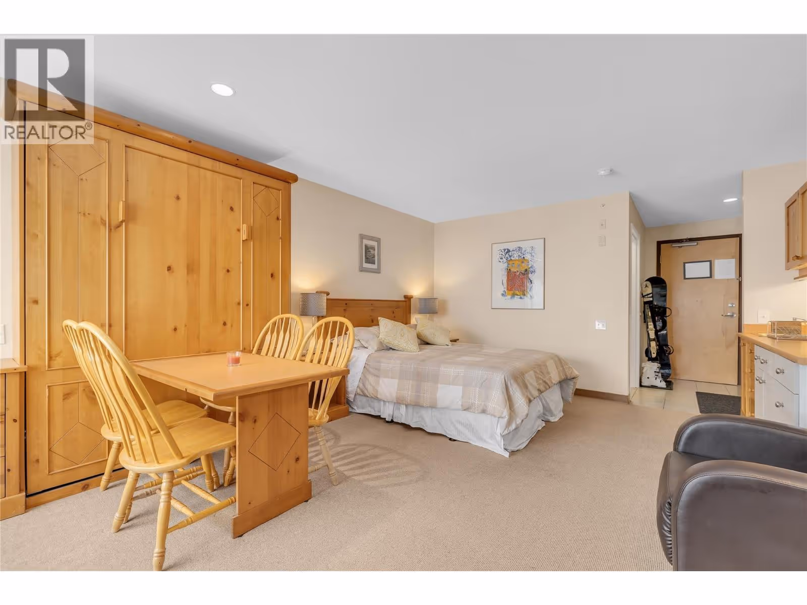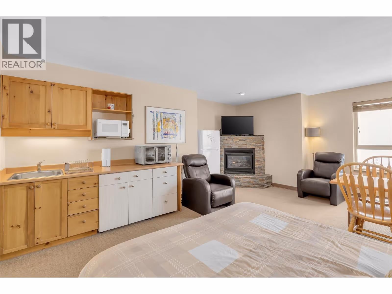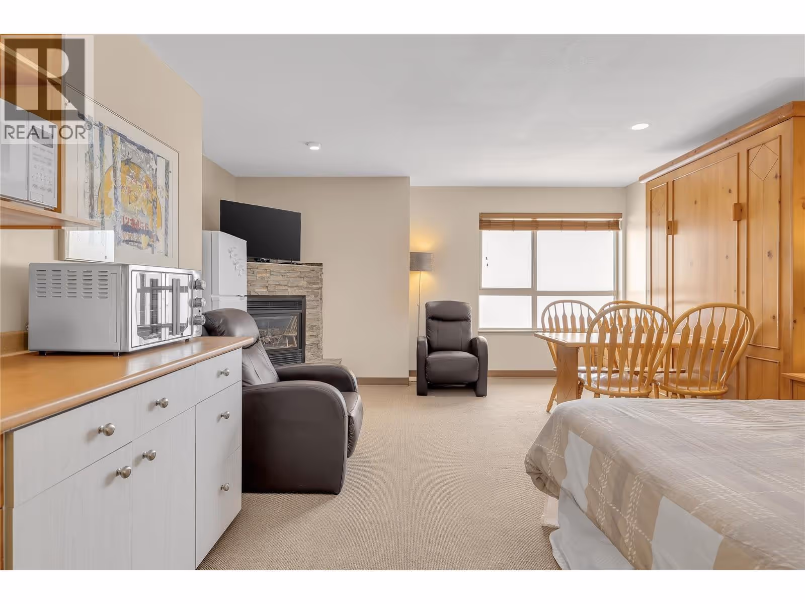 Discover your mountain hideaway at the Inn at Big White! Perched on the top floor and facing south, this oversized studio is one of the largest of its kind in the building. Designed to accommodate up to four guests, it’s an ideal escape for couples, friends, or families who want comfort with all the resort conveniences at their doorstep. The bright, open-plan design blends living, dining, and sleeping areas into one inviting space, making the most of every square foot. After an exhilarating day on the slopes or exploring the village, unwind in the building’s heated pool or soak tired muscles in the hot tub. The underground parkade makes parking effortless, while being just steps to the Village Centre, Gondola, and ski runs means you’ll never miss a moment of the action. Perfect for relaxation, adventure, or both, this suite offers a true Big White lifestyle. Plus, it’s exempt from the Foreign Buyer Ban, Foreign Buyers Tax, Speculation Tax, Empty Homes Tax, and Short-Term Rental Ban—making it an attractive opportunity for both enjoyment and investment. (id:58842)