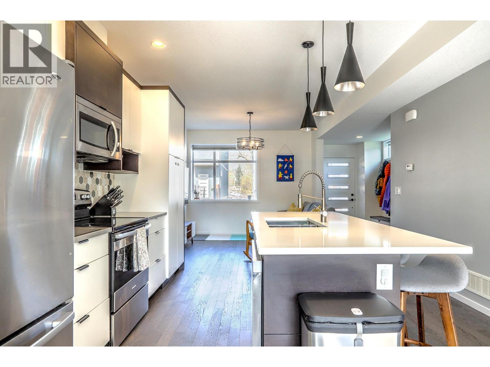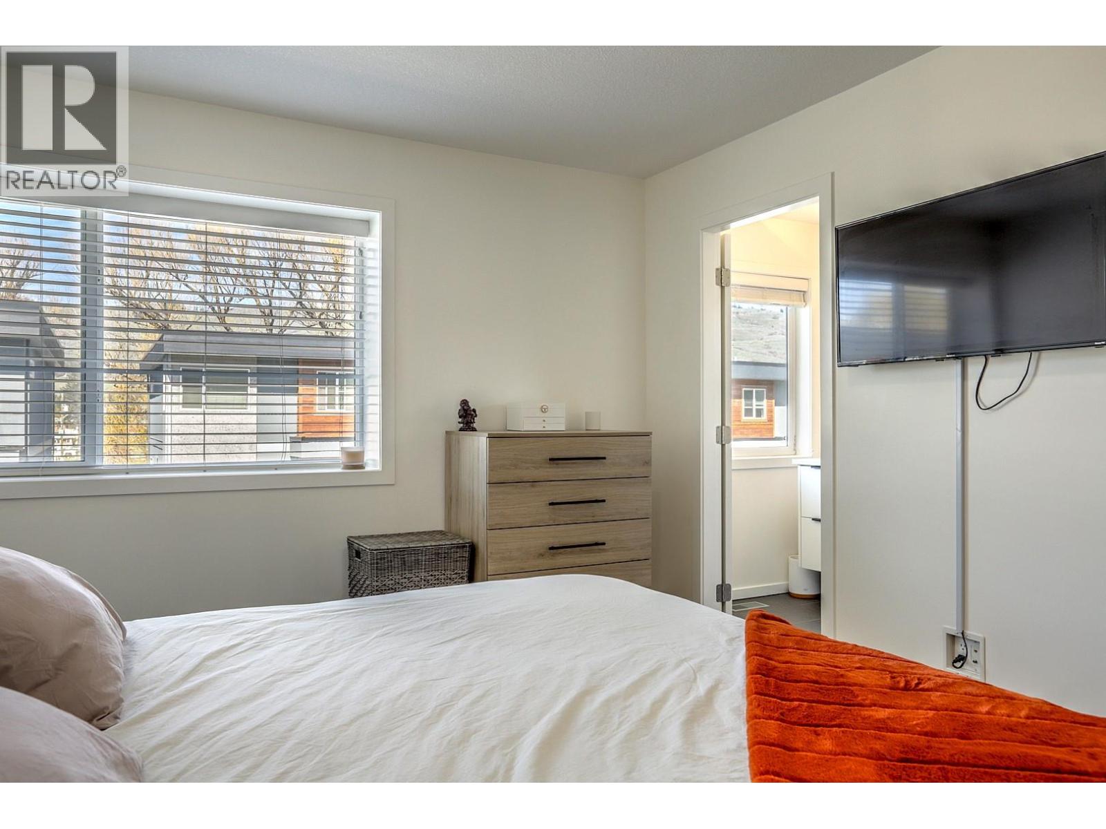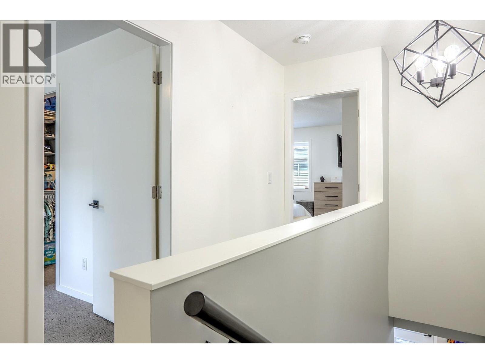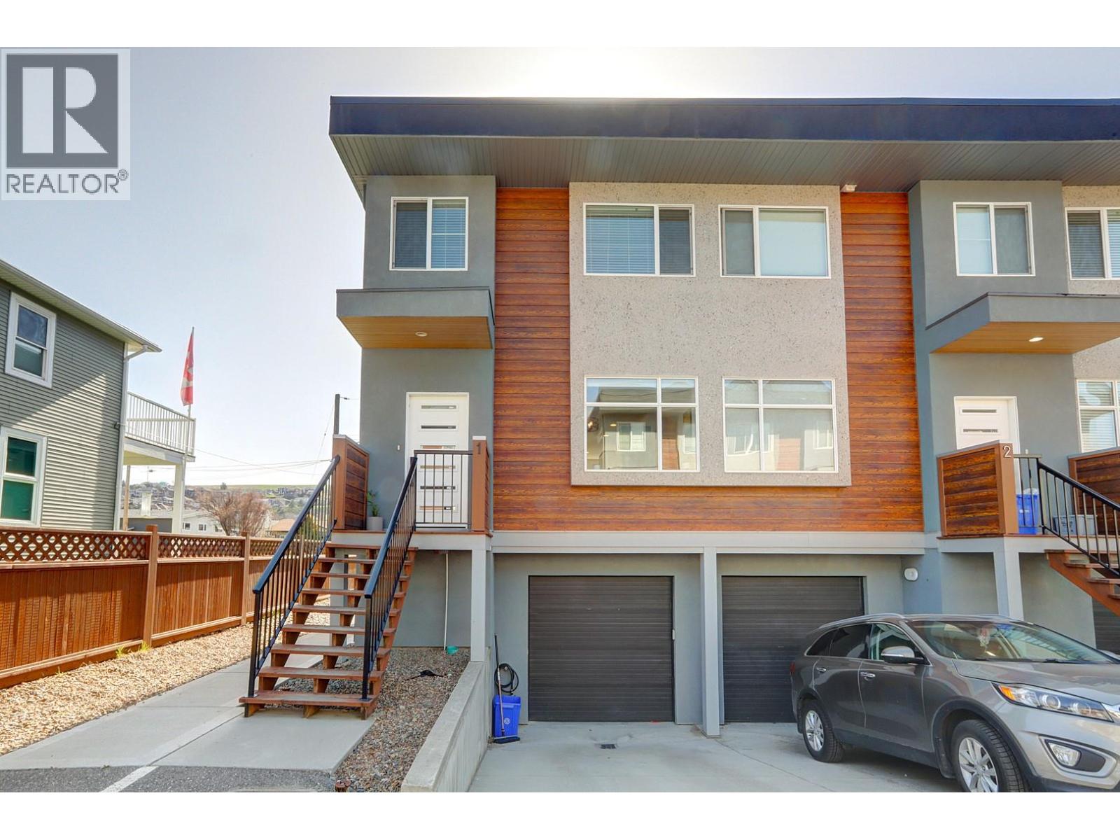 Stylish and spacious 2018-built end-unit townhouse in a quiet 11-unit complex with lovely hillside views and abundant natural light. Thoughtfully designed with engineered hardwood flooring, quartz countertops, modern cabinetry, tasteful wood accents, transom windows, tiled backsplash, quality fixtures, and newer, high-quality blinds on the main floor and natural gas hook up on the deck. The upper level offers two generous primary bedrooms, each with their own ensuite and walk-in closet—providing ample space and comfort. The lower level includes a single-car garage, a storage room, and a versatile third bedroom with ensuite, which also works beautifully as a family room or office. Enjoy south-facing light and a great sense of privacy. Located just minutes from Okanagan Lake beaches and parks, Vernon’s popular pickleball courts, scenic hiking trails, and top-rated golf at The Rise. An excellent location for anyone who loves both nature and convenience. Pet friendly: one dog or one cat allowed. All measurements taken from iGuide. (id:58842)