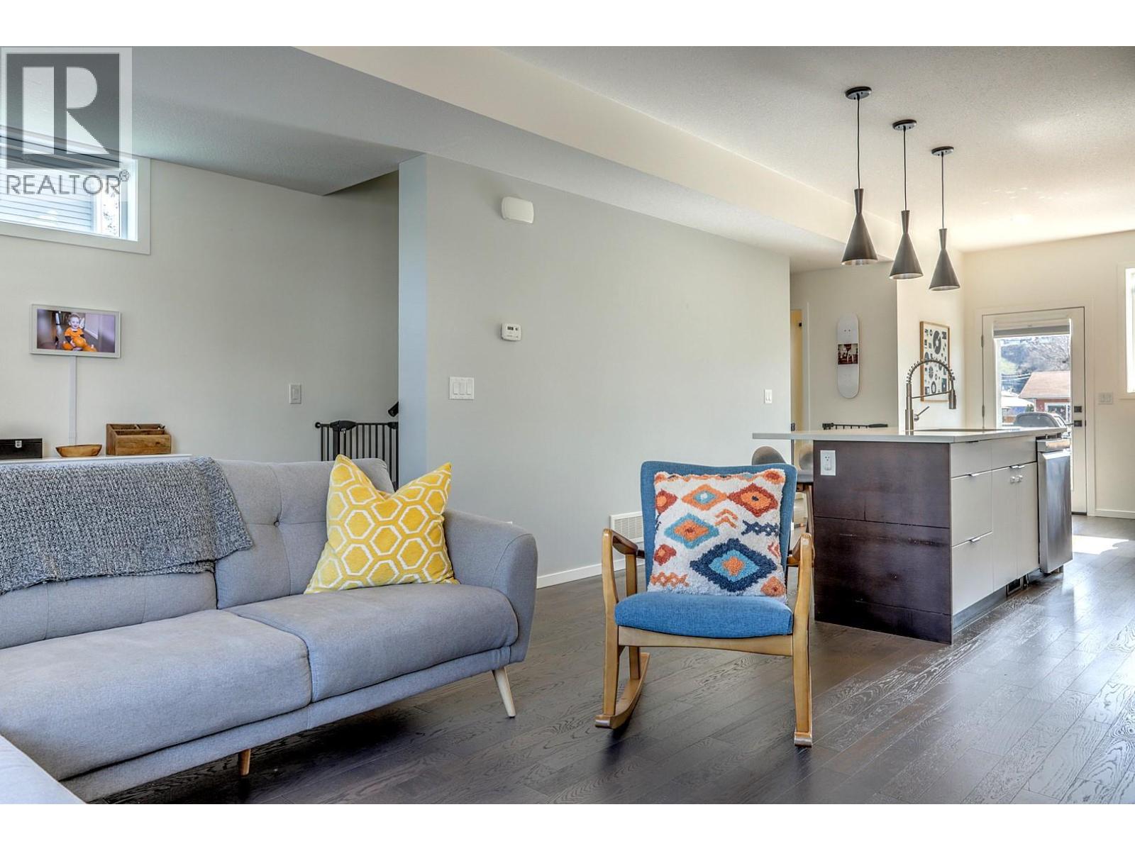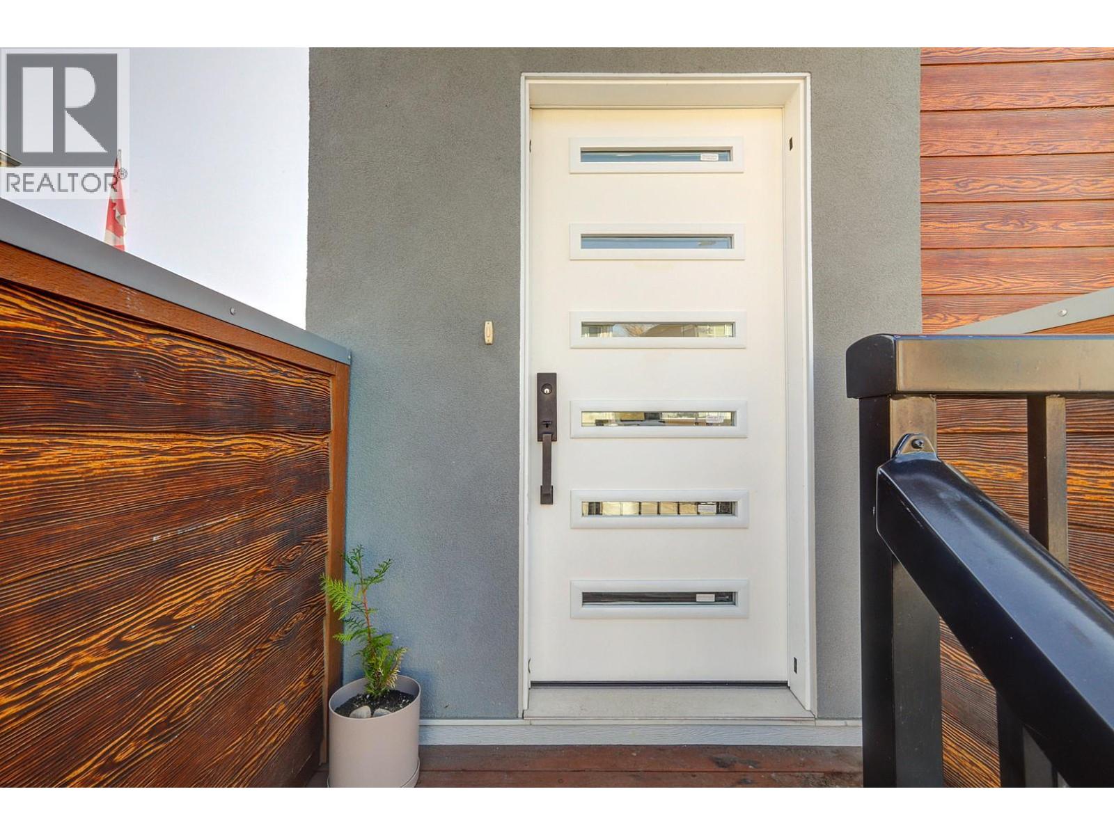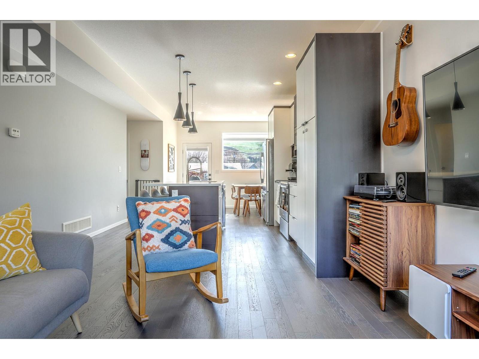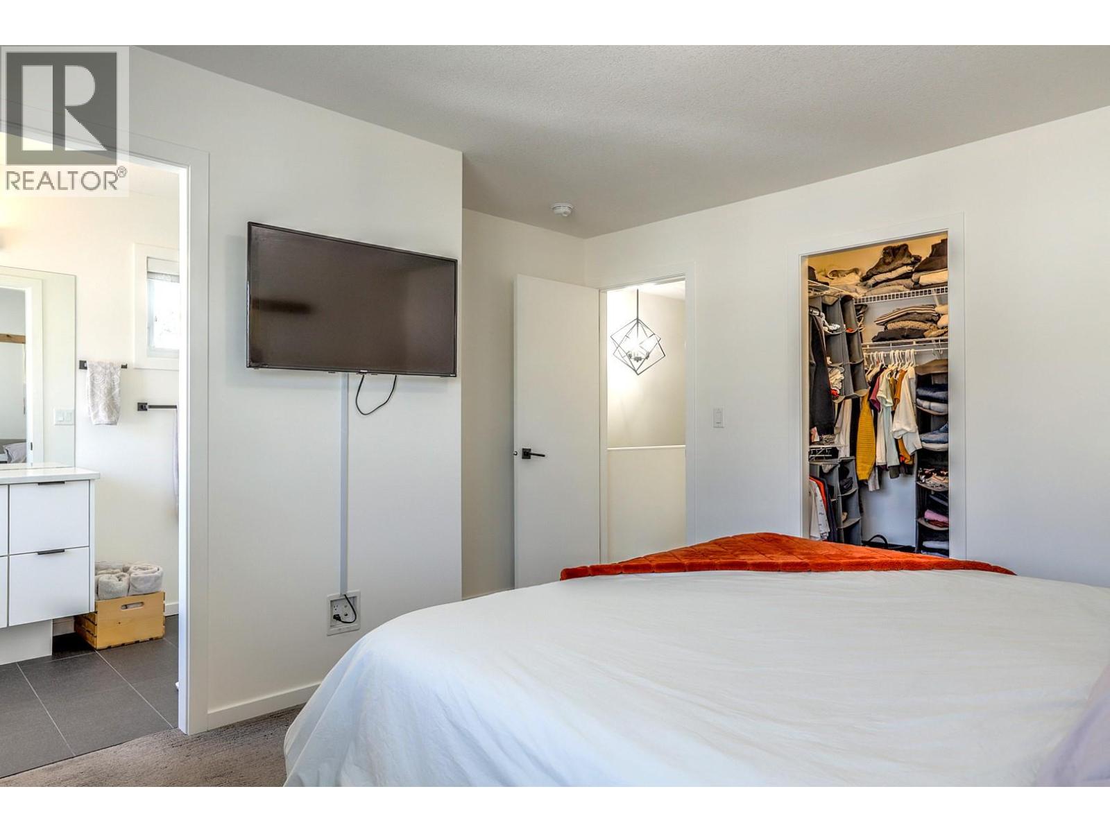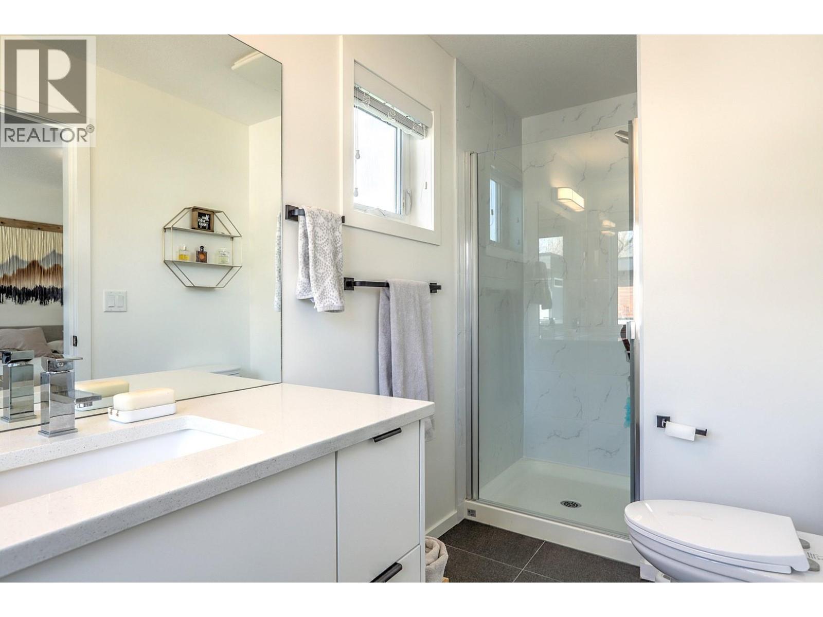 Stylish and spacious 2018-built end-unit townhouse in a quiet 11-unit complex with lovely hillside views and abundant natural light. Thoughtfully designed with engineered hardwood flooring, quartz countertops, modern cabinetry, tasteful wood accents, transom windows, tiled backsplash, quality fixtures, and newer, high-quality blinds on the main floor and natural gas hook up on the deck. The upper level offers two generous primary bedrooms, each with their own ensuite and walk-in closet—providing ample space and comfort. The lower level includes a single-car garage, a storage room, and a versatile third bedroom with ensuite, which also works beautifully as a family room or office. Enjoy south-facing light and a great sense of privacy. Located just minutes from Okanagan Lake beaches and parks, Vernon’s popular pickleball courts, scenic hiking trails, and top-rated golf at The Rise. An excellent location for anyone who loves both nature and convenience. Pet friendly: one dog or one cat allowed. All measurements taken from iGuide. (id:58842)