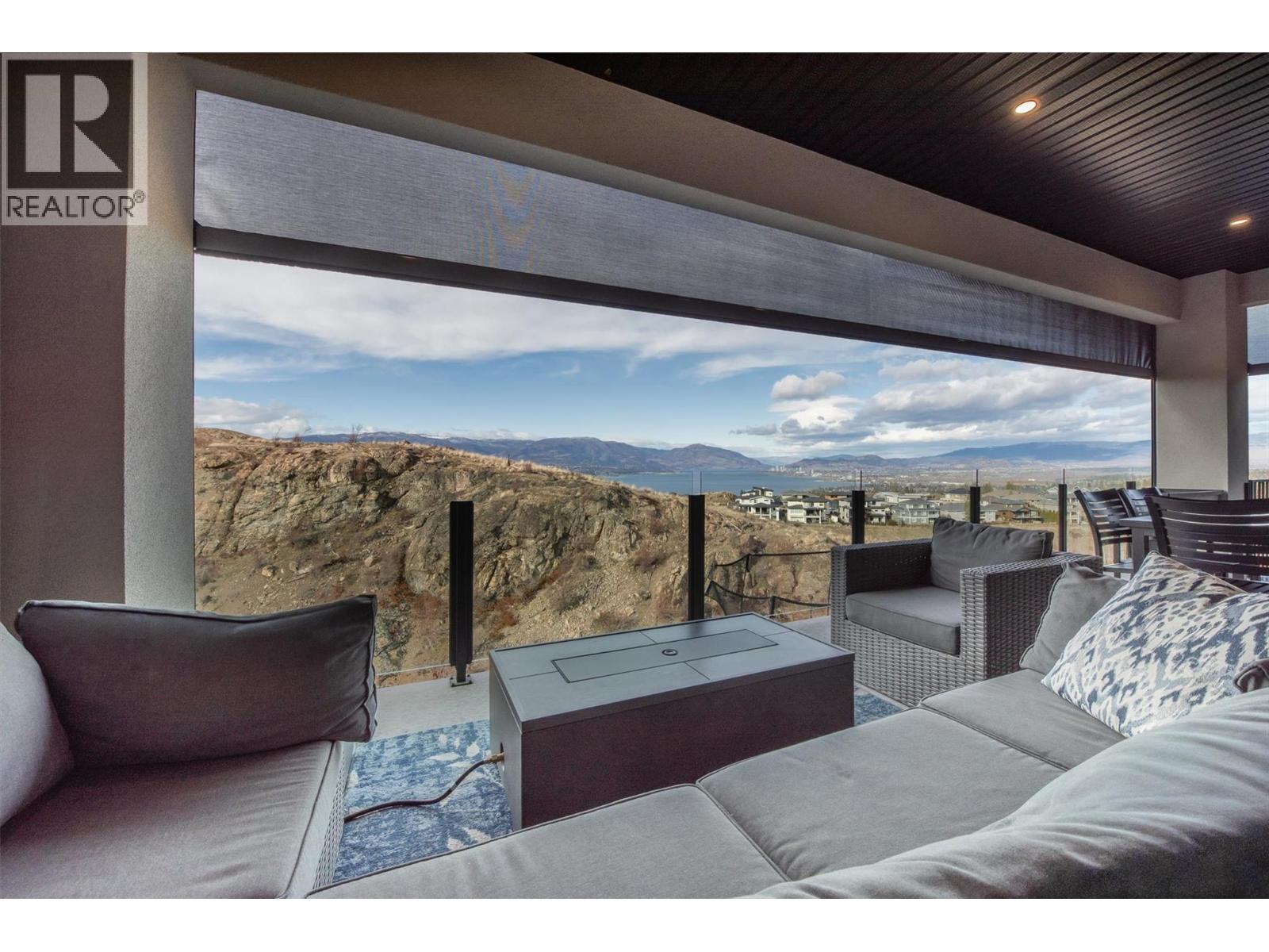 Framed by dramatic walls of glass that command sweeping panoramic views, this exceptional Upper Mission residence rises above Okanagan Lake with striking architectural presence and refined luxury. Perfectly positioned above a bold natural stone overlook, the home captures the lake from a vantage point that feels both powerful and private, providing a rare sense of an enduring natural view. The open concept main level features soaring ceilings, a dedicated office space and effortless indoor-outdoor flow via Nano doors. The chef’s kitchen is beautifully appointed with built-in high end appliances, a quartz waterfall island, and a full butler’s pantry that connects to a custom mudroom with exceptional integrated storage. The sprawling main deck is an entertainer's dream, featuring motorized sun shades, a BBQ area, and a convenient pass-through window to the kitchen and direct access to the pantry. The mezzanine-style upper family room is a true retreat, featuring a fireplace, wine bar, and private deck with stunning views. This level also hosts the primary suite, a spa-inspired ensuite and an expansive walk-in closet. Below, enjoy the resort-style gym, pool, and hot tub. With a bright 2-bedroom legal suite, the floorplan offers incredible flexibility. Every detail is considered: a smart home system, central audio, and a triple garage with extra-high ceilings. This is luxury without compromise, an inspired home minutes from schools, hiking, award-winning wineries and amenities (id:58842)