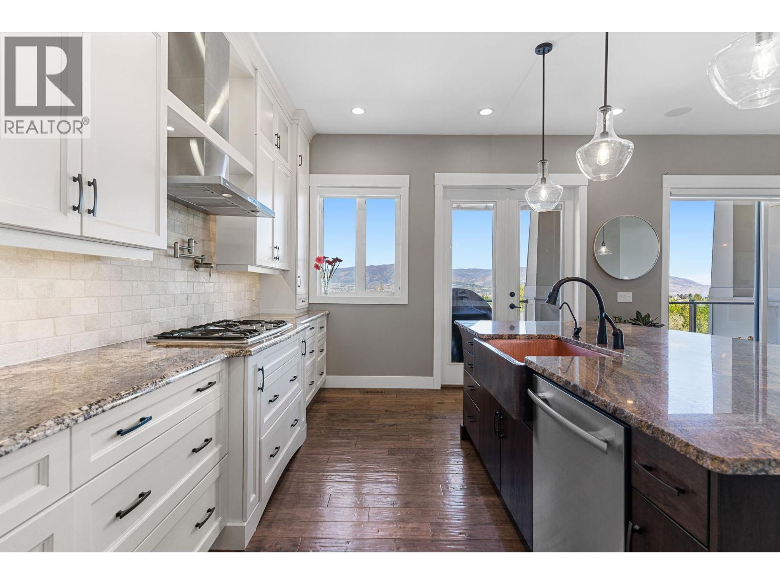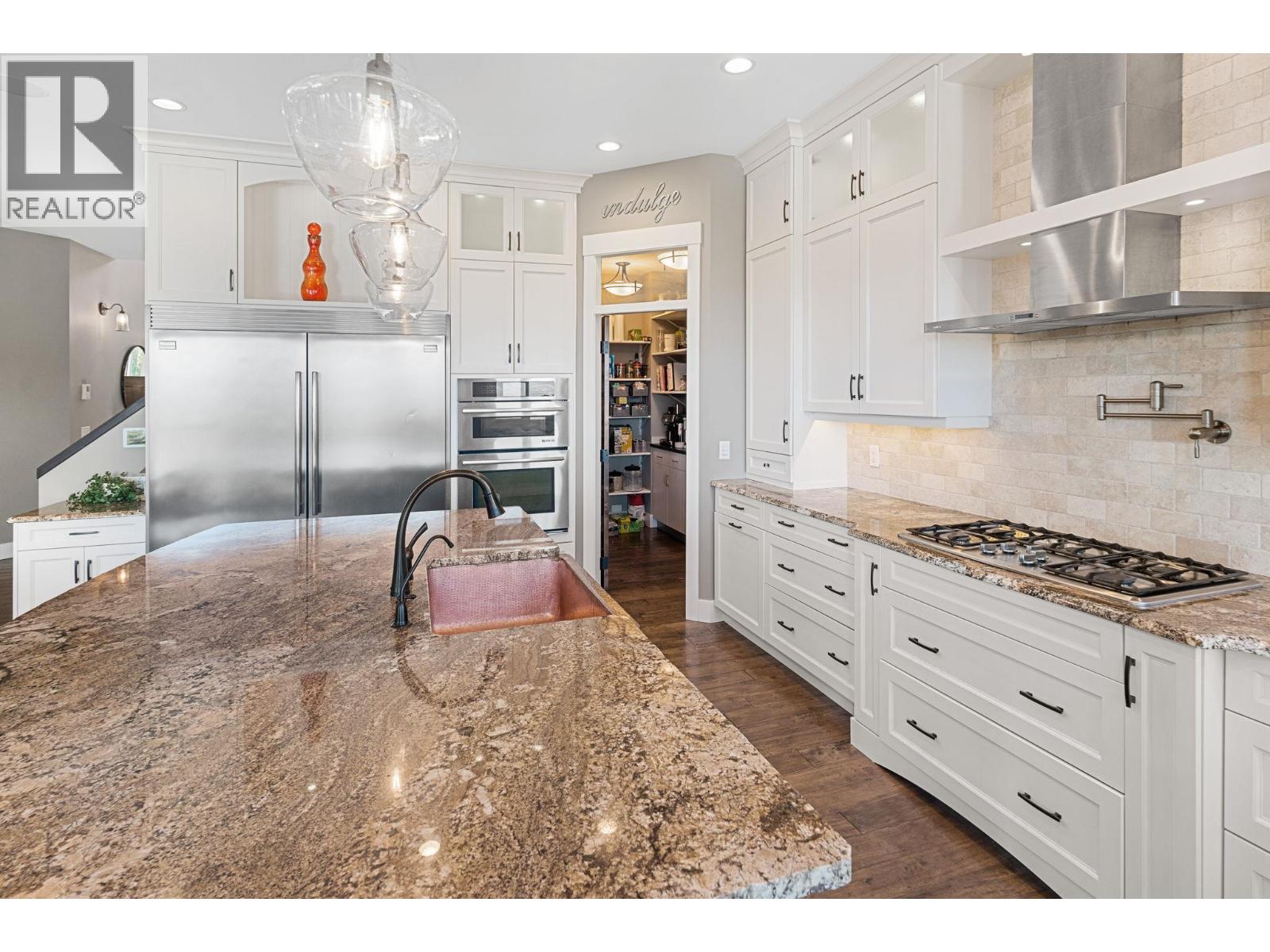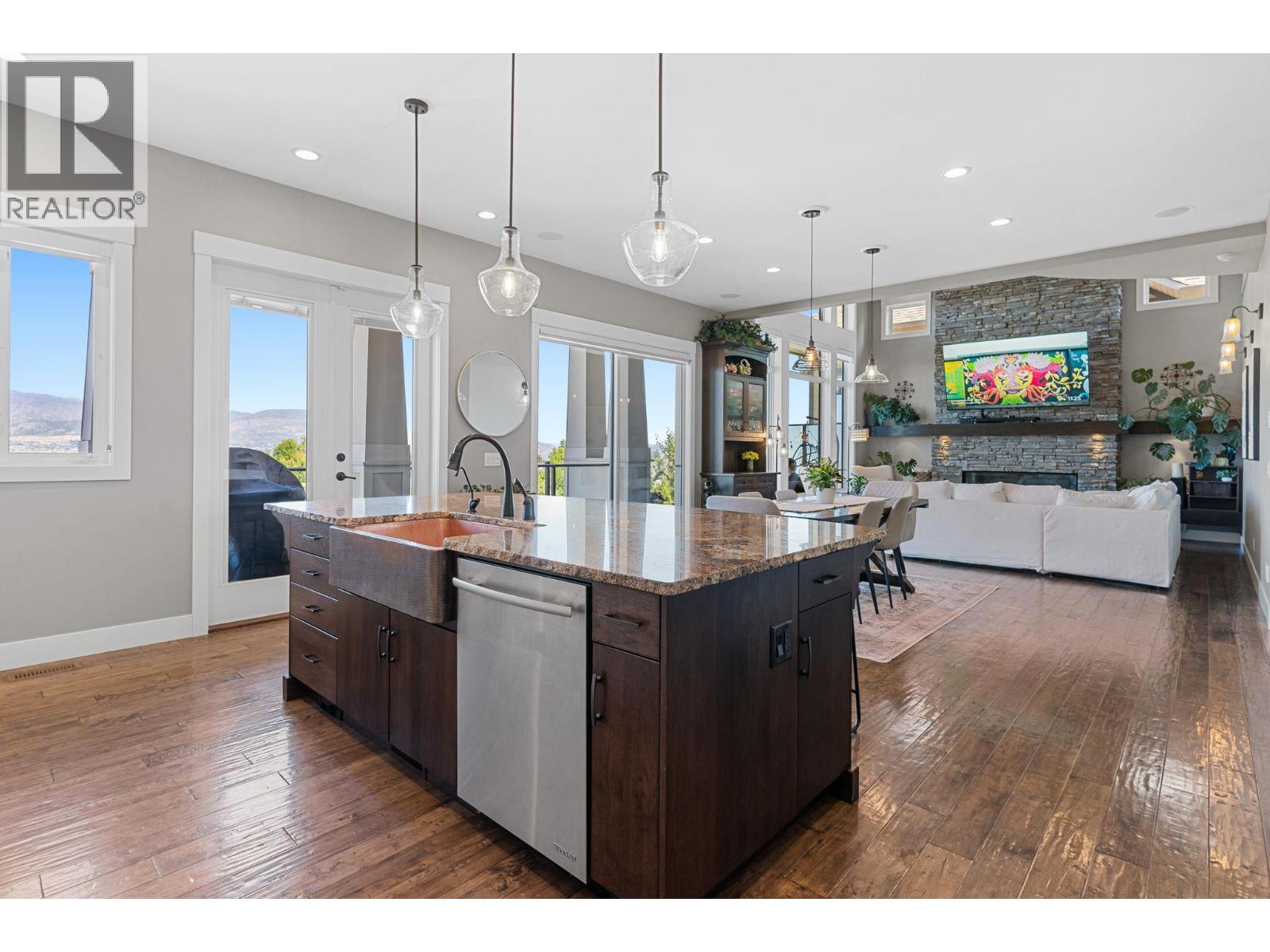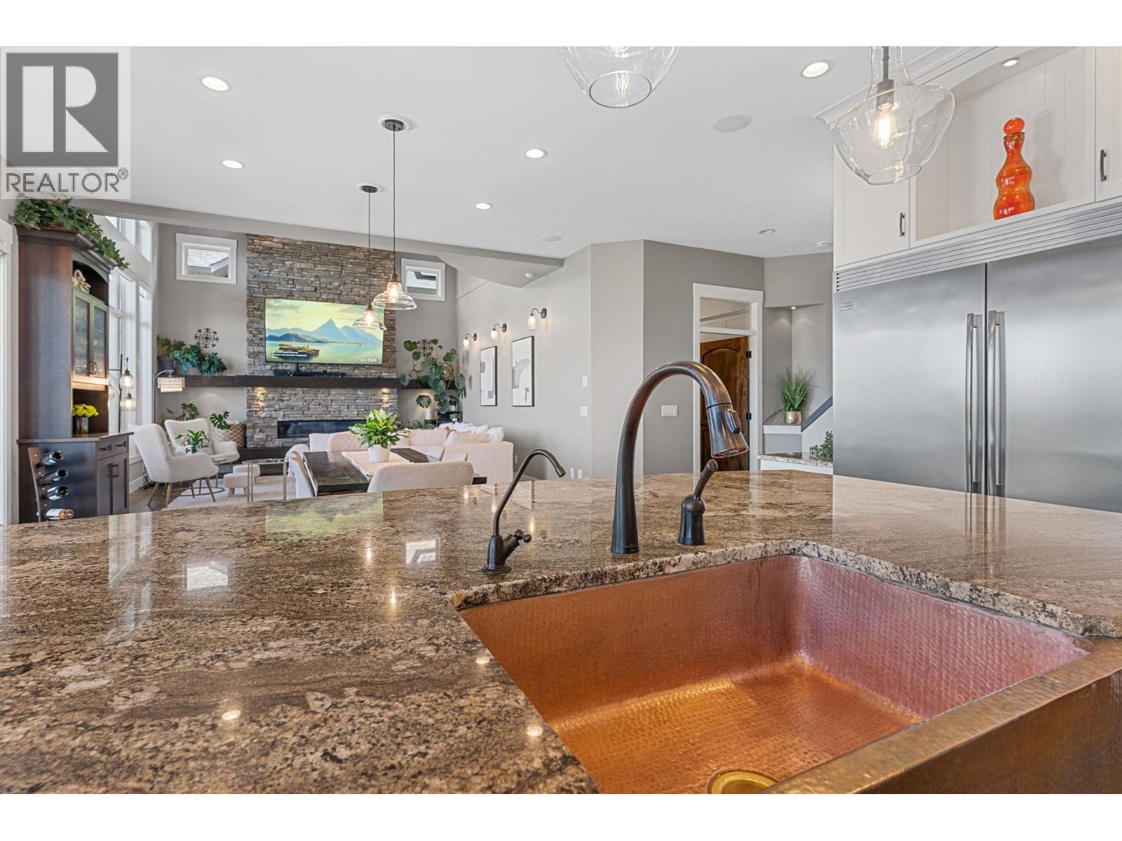 Welcome to this beautiful Kettle Valley two storey walk-out with everything your family could ever want, need or imagine! Gorgeous lake view home with 6 bedrooms, 5.5 baths with hardwood, vaulted ceilings, floor-to-ceiling stone fireplace, gourmet granite island kitchen with b/in stainless appliances, gas cooktop, pot filler and large walk-in pantry. Access to the covered sundeck with great views and gas BBQ hookup (and engineered for a hot tub)! Spacious main floor laundry/mud room with under the counter washer and dryer, b/in bench and lots of storage. Master on the second floor with private lake view deck and spa-like ensuite complete with two-sided fireplace, spacious double vanity, tiled walk-in shower and separate soaker tub and heated tile floors. Second and third bedroom share the jack-and-jill bathroom with dual vanity - perfect for school mornings! Lower level is an entertainers dream with granite wet bar, full-sized fridge and even a draft beer tap with walk-out to the covered patio complete with gas fire pit, gas BBQ hookup and straight to the pool and hot tub deck! Gym under suspended slab too! Cozy front porch to watch the world go by and listen the the bubbling rock water feature. One home away from the linear park that takes you to the children's water park and playground. Transit, hiking trails, Chute Lake Elementary and Kettle Valley Main Street amenities, all within short walking distance. This home is a must see! RV/boat parking in alley at bottom of lot. (id:58842)
