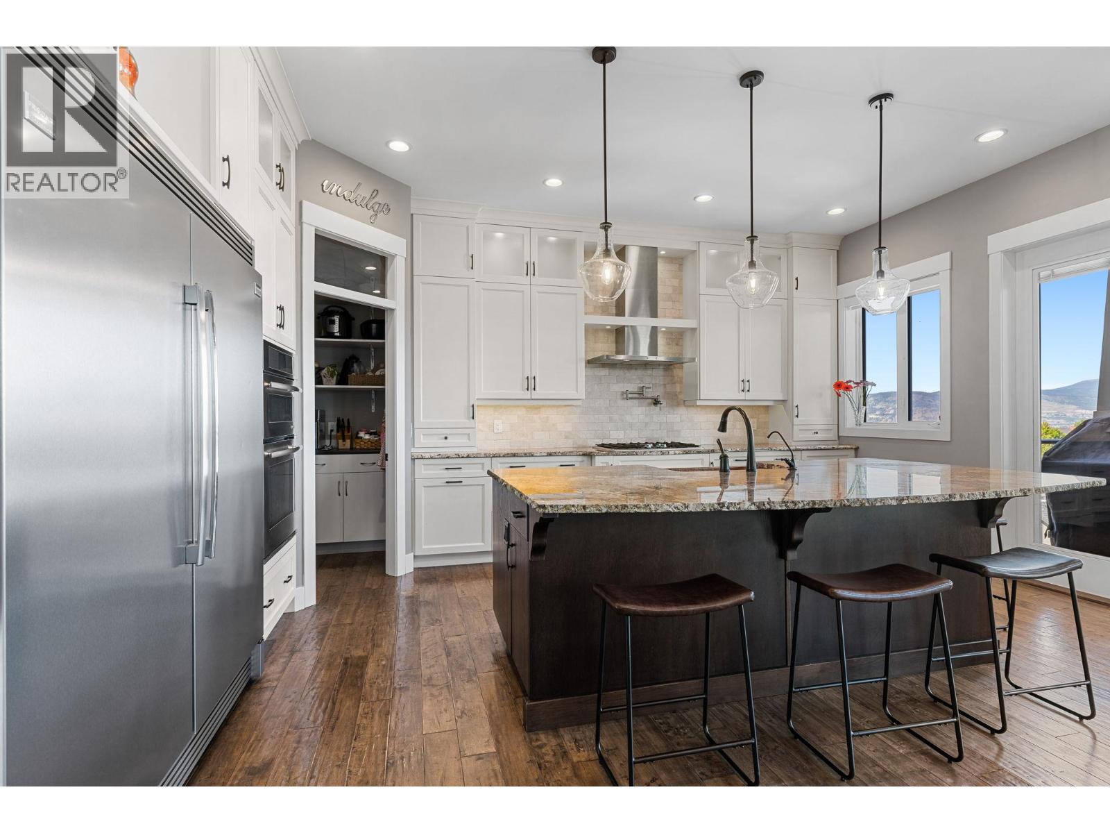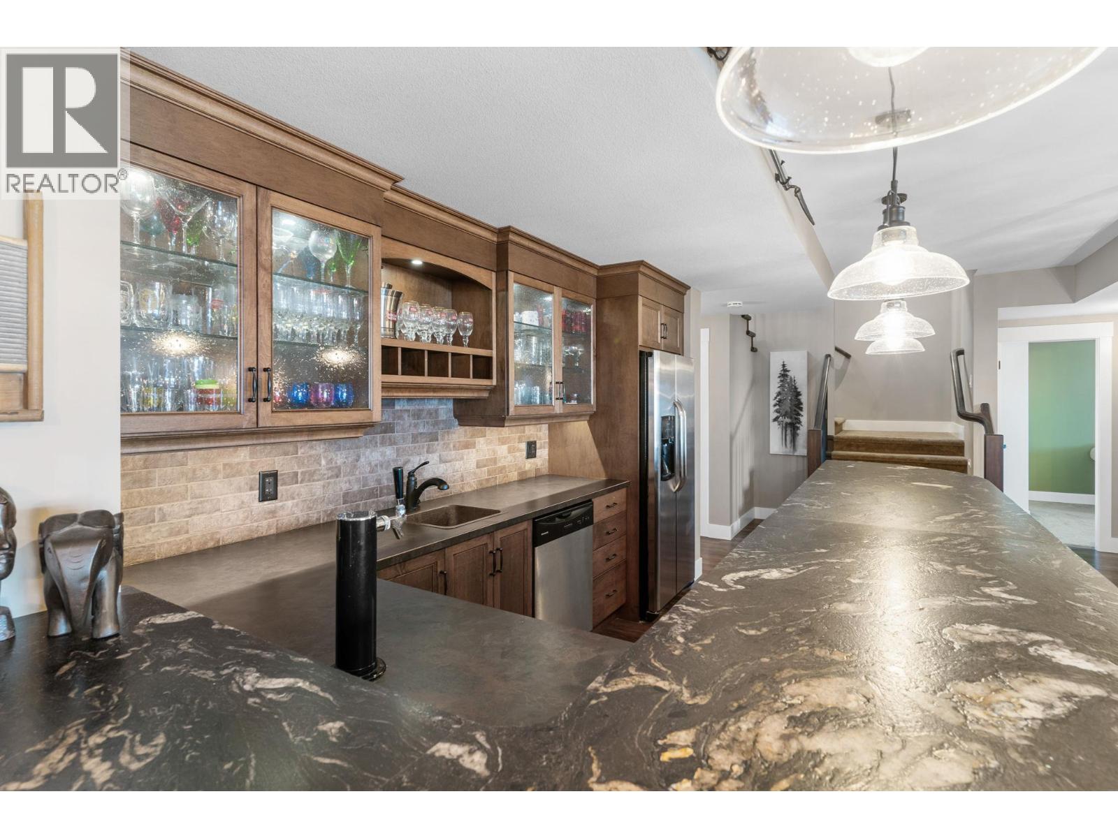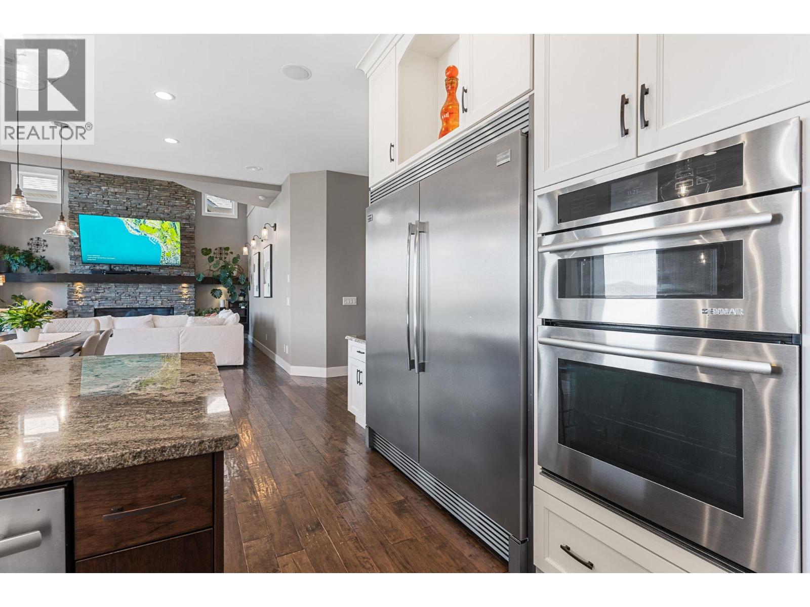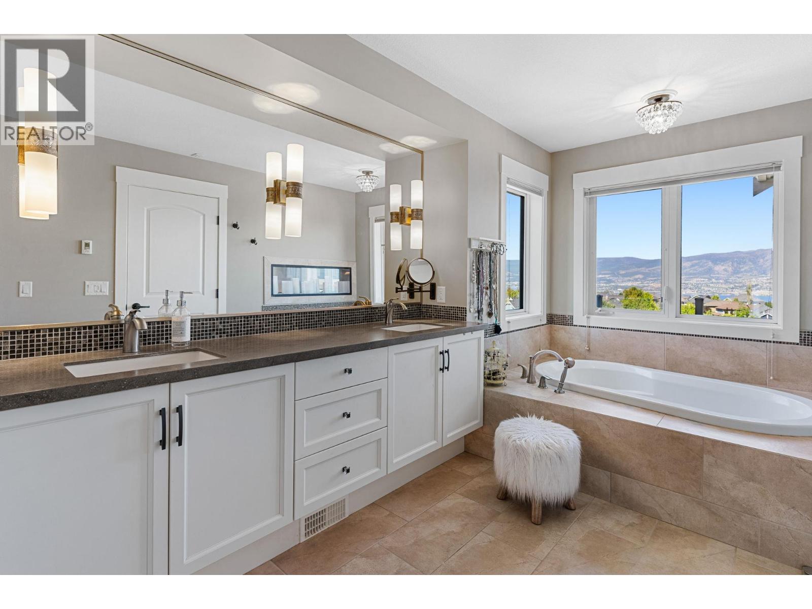 Welcome to this beautiful Kettle Valley two storey walk-out with everything your family could ever want, need or imagine! Gorgeous lake view home with 6 bedrooms, 5.5 baths with hardwood, vaulted ceilings, floor-to-ceiling stone fireplace, gourmet granite island kitchen with b/in stainless appliances, gas cooktop, pot filler and large walk-in pantry. Access to the covered sundeck with great views and gas BBQ hookup (and engineered for a hot tub)! Spacious main floor laundry/mud room with under the counter washer and dryer, b/in bench and lots of storage. Master on the second floor with private lake view deck and spa-like ensuite complete with two-sided fireplace, spacious double vanity, tiled walk-in shower and separate soaker tub and heated tile floors. Second and third bedroom share the jack-and-jill bathroom with dual vanity - perfect for school mornings! Lower level is an entertainers dream with granite wet bar, full-sized fridge and even a draft beer tap with walk-out to the covered patio complete with gas fire pit, gas BBQ hookup and straight to the pool and hot tub deck! Gym under suspended slab too! Cozy front porch to watch the world go by and listen the the bubbling rock water feature. One home away from the linear park that takes you to the children's water park and playground. Transit, hiking trails, Chute Lake Elementary and Kettle Valley Main Street amenities, all within short walking distance. This home is a must see! RV/boat parking in alley at bottom of lot. (id:58842)