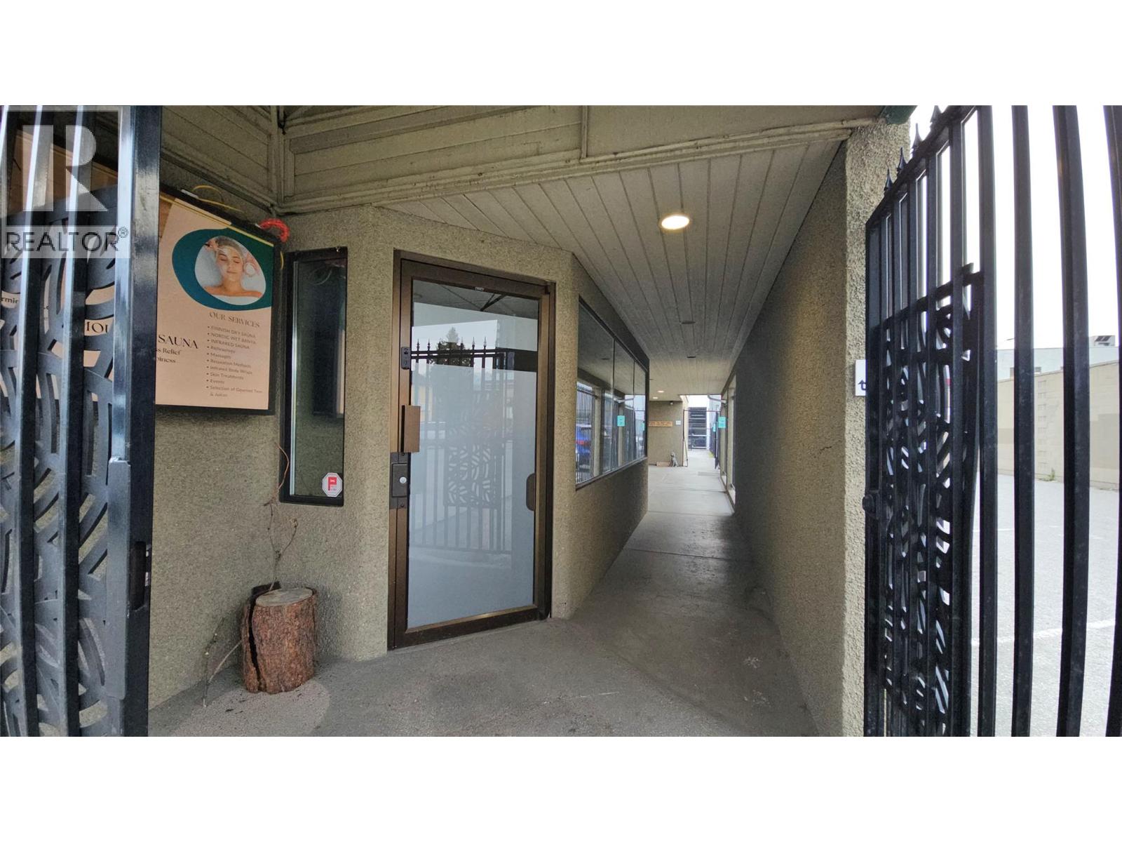 Prime downtown Kelowna commercial space for lease offering approximately 2,000 sq. ft. of versatile retail or office space located in the Downtown Urban Centre. The unit is currently built out with multiple enclosed rooms and includes two washrooms and a real wood sauna, making it well suited for professional services, wellness, medical, office, or boutique retail uses. The space can be demised into two smaller units depending on tenant requirements, providing flexibility for a variety of business needs. A rare downtown feature, the property includes three dedicated, secure, fenced parking stalls for staff or clients. Zoned UC1 – Downtown Urban Centre, the location supports a wide range of commercial uses and benefits from excellent walkability, exposure, and proximity to downtown amenities. Three dedicated parking stalls fenced in. 2018 Hot water tank PEX plumbing, 2020 furnace, two furnaces. Include gated storefront, gated walkway, front desk, rsting area, waiting area, 3 showers, 7 sinks, 2 toilets, sauna and 4 entrances (main entrance, two side entrance and a back door). (id:58842)