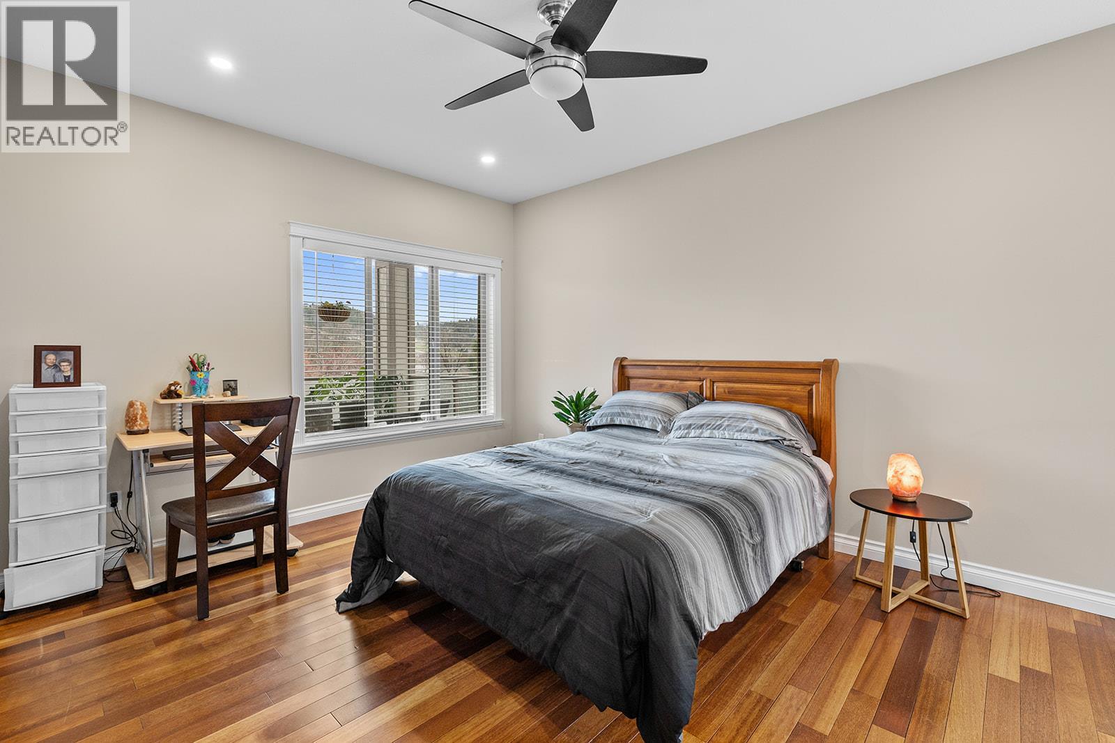 Set on a quiet Glenmore cul de sac, this expansive 3 level walkout rancher offers 4,164 sq ft with 4 bedrooms, 4 bathrooms, and a double garage. Outdoor adventure is close at hand with hiking and mountain biking around Kathleen Lake and Knox Mountain just minutes away. The main level features soaring 13 foot ceilings and large windows that fill the home with natural light. Two generous decks look out toward Dilworth Mountain, creating effortless outdoor living for everyday life and entertaining. Designed with flexibility in mind, the lower level includes its own entrance and two sets of washer and dryers, ideal for growing families or multi generational living. A dedicated theatre room adds standout appeal, pre-wired for Dolby 5.1 surround sound and complete with a 3D projector. Comfort upgrades include a new steam shower, jacuzzi tub in the ensuite, wine fridge, hydronic heating on the lower two floors, and central air conditioning. Ample street parking adds everyday convenience. Located close to UBCO, the airport, schools, shopping, Kelowna Golf and Country Club, and the city centre, with quick access to major routes, this home brings together space, functionality, and a highly connected lifestyle. (id:58842)