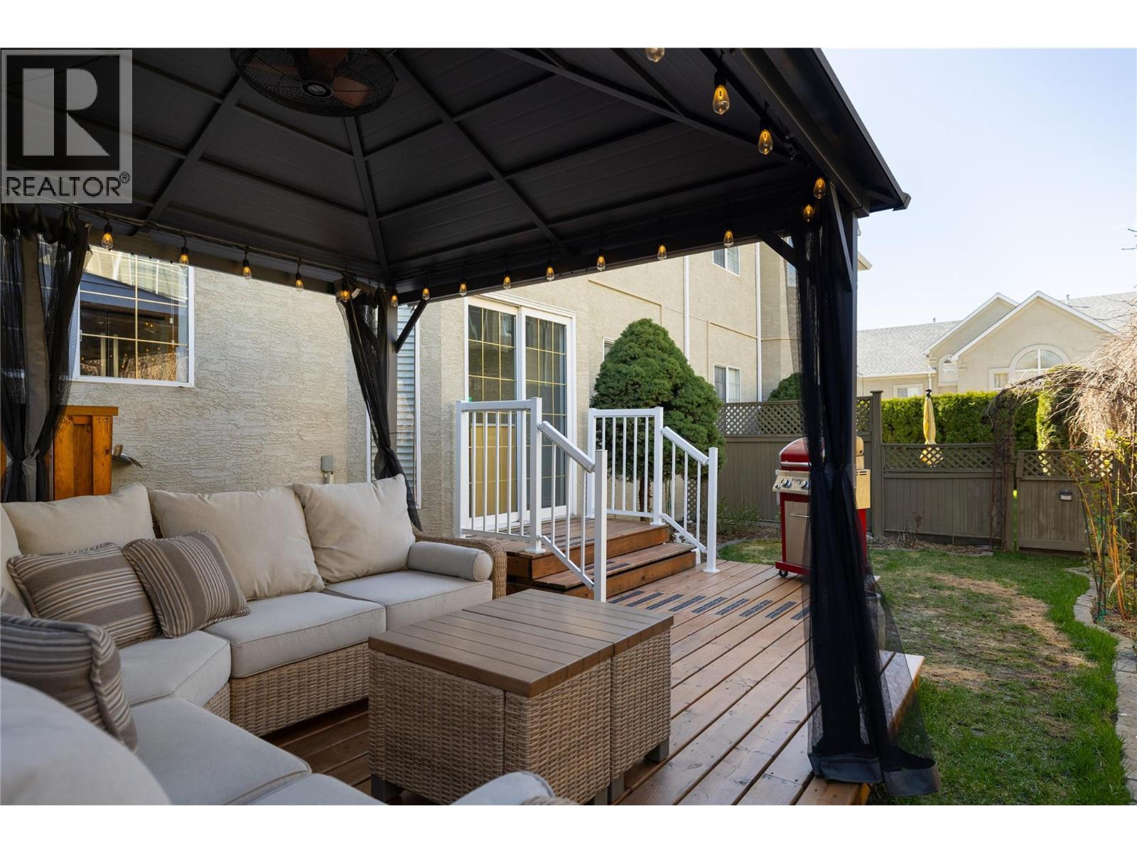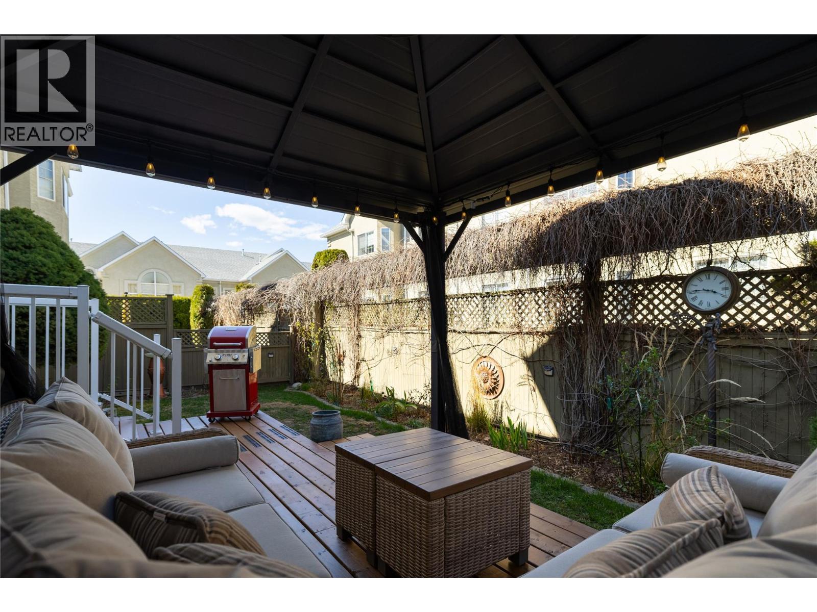 Welcome to Roxborough by the Creek — a family friendly community - where luxurious comfort, convenience, and style come together. This beautifully maintained 2-bedroom, 3-bath home is flooded with natural light from large windows and vaulted ceilings. The open-concept main floor is ideal for both everyday living and entertaining, featuring a spacious living room with cozy gas fireplace and oversized picture windows to create an airy, welcoming feel, flowing into your dining area with room for friends and family! The well-appointed kitchen complete with sit-up island, high end appliances, quartz countertops, and convenient access to the laundry room. Step outside through sliding glass doors to your private deck with gazebo, and a quiet fenced back yard - perfect for summer evenings or your morning coffee. The beautiful greenery and flowers are just coming into bloom! Upstairs, the generous main bedroom will easily accommodate a king-size bed and room for more, offering a walk-through closet, plus a full ensuite with a walk in shower. Another full bathroom with a jetted soaker tub finishes off the upper floor. The second bedroom on the mid floor provides versatility for guests, an office, or a hobby room. Many updates, including mechanical, flooring, countertops, and fresh paint over the past few years make this home truly move-in ready. The attached single car garage features a dedicated car charger outlet, and access to a large crawl space, excellent for storage. The driveway offers parking for 2 cars and includes a dedicated car charger. This home is a short walk to Village Green Shopping Centre, Walmart, and city transit. Silver Star Mountain Resort is only 25 minutes away — this location offers both urban convenience and walking trails close by. Don’t miss your opportunity to make this home your own! (id:58842)