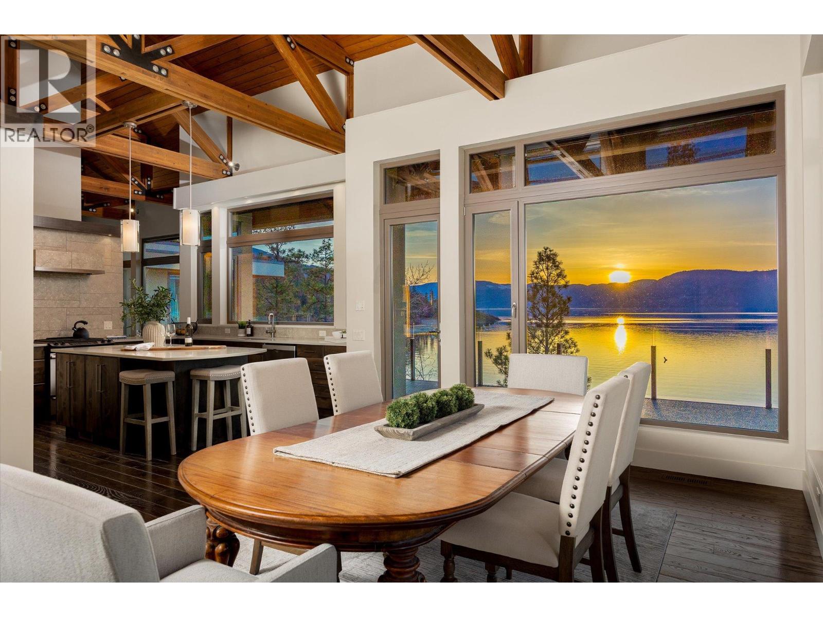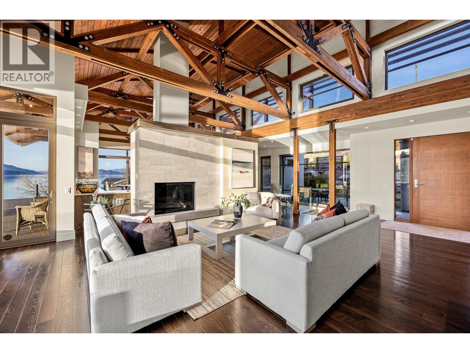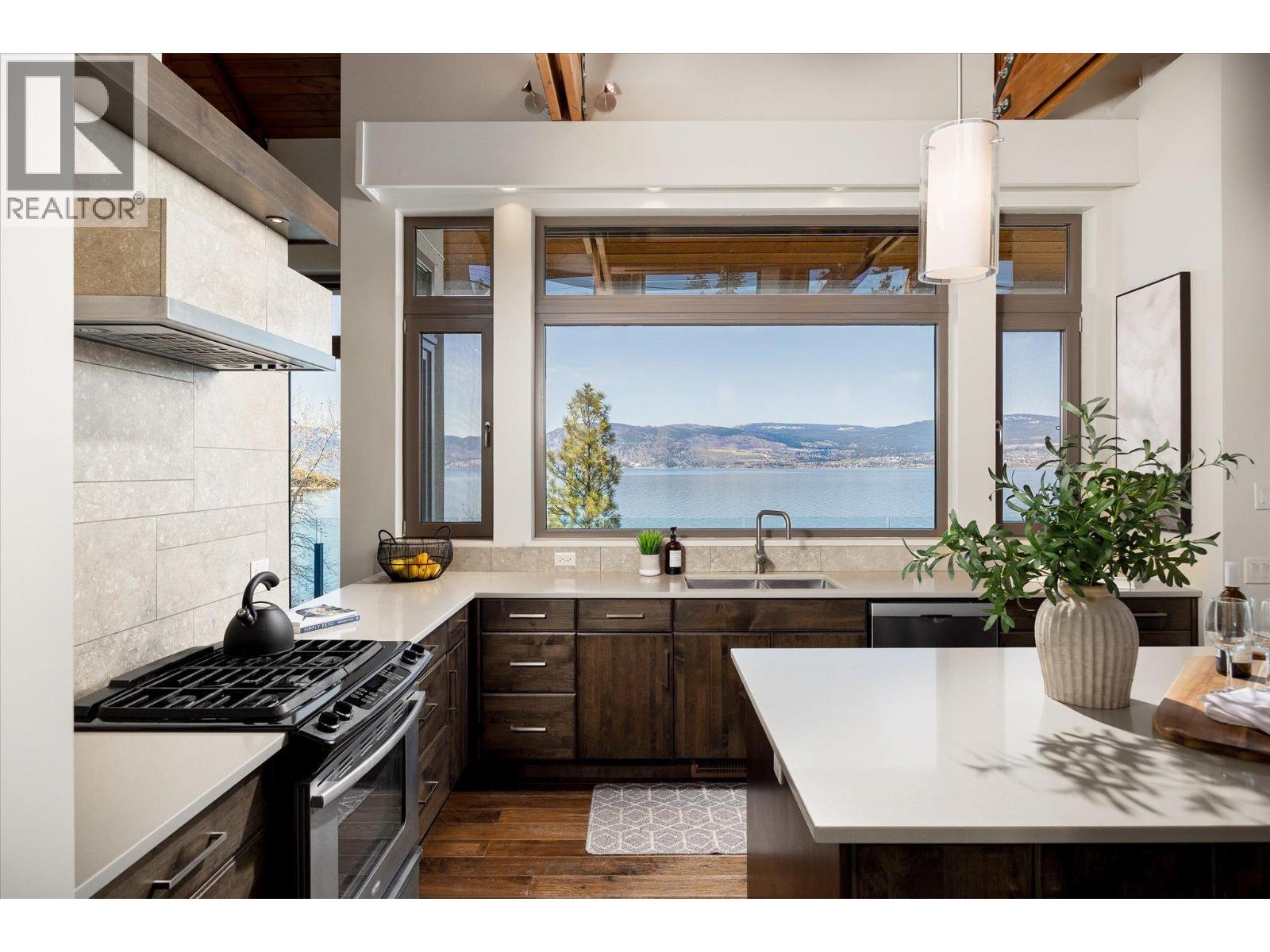 Known as Asparagus Bay, this home is built to celebrate Okanagan life. Its 1.297 acres - nurtured into an award-winning water-wise garden - offer a 5000 plus square foot house designed by Architect Robert Turik to create ideal views, a roofline that honors the surrounding hillsides, access to outdoor living spaces, sunlight exposure, & privacy. Six bedrooms & four bathrooms total! Inside, the ceiling follows curved trusses varying from 12.5 feet to 20 feet high; the main south-facing windows ensure year-round sun; European tilt windows allow for extra airflow and cross breezes; & a bank of upper windows draw in the morning light. Upstairs, the kitchen is book-ended by living spaces, the master & ensuite both provide lake views, and a one bedroom suite offers privacy to guests. Every room provides seamless access to outside, including 1100+ square feet of patio space w/ stairs to another deck below. Downstairs offers two bedrooms and one bathroom, a kitchenette, access to outdoors, storage, and another roughed-in suite with kitchen and bathroom plumbing. Outside, walk down an accessible path (the old orchard-donkey path!) to 219 feet of lakeshore frontage with beach-entrance swimming and a private 130 foot dock built in 2018, and featuring both a three tonne hoist and parking for guests. The lot is bisected by Lakeshore Road, so landscaped uplands offer additional parking, a deer-fenced garden with fruit trees and berries, space for a workshop, and long-term development/subdivision potential. Walking distance to Cedar Creek Winery, Martin's Lane, waterfront parks, & more. (id:58842)