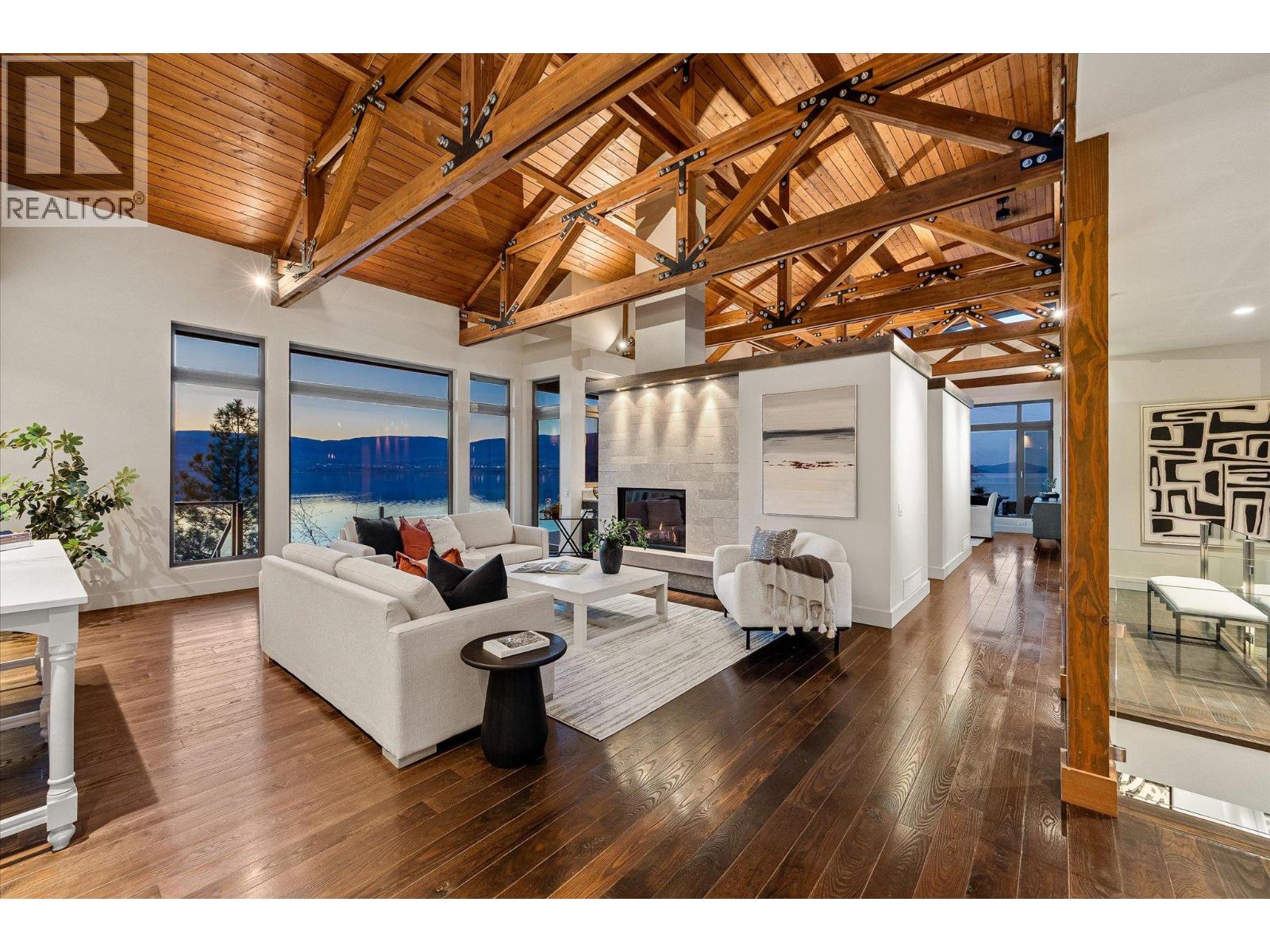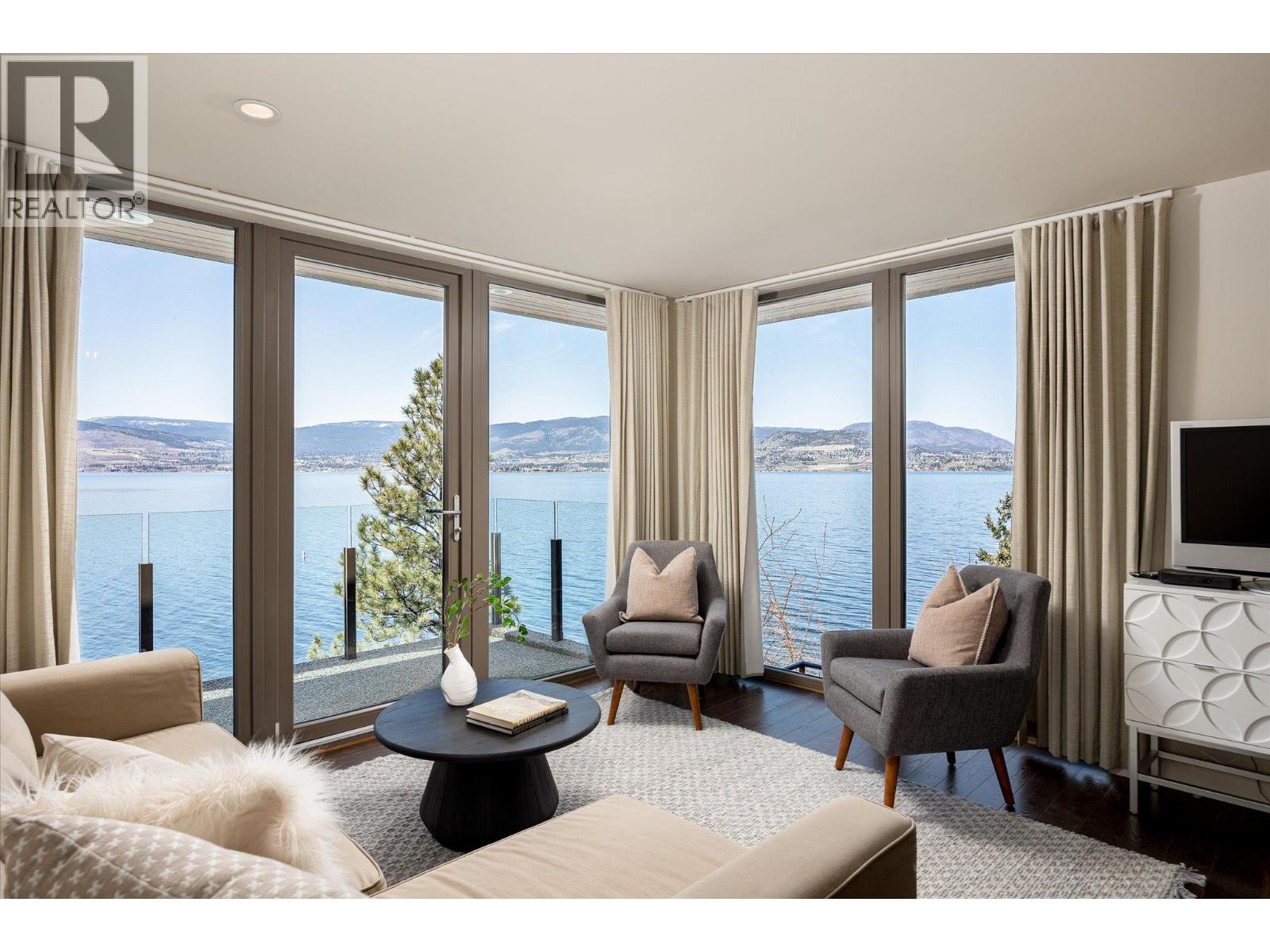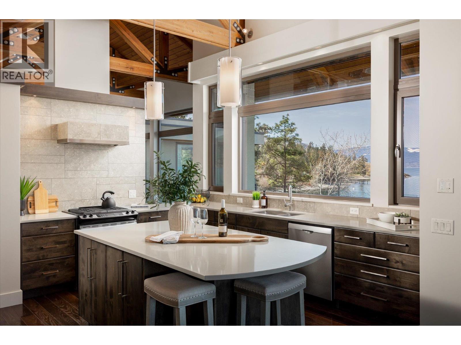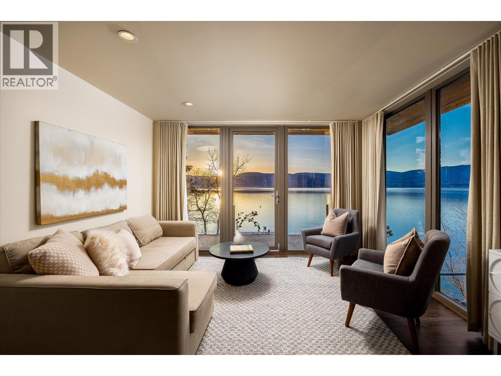 Known as Asparagus Bay, this home is built to celebrate Okanagan life. Its 1.297 acres - nurtured into an award-winning water-wise garden - offer a 5000 plus square foot house designed by Architect Robert Turik to create ideal views, a roofline that honors the surrounding hillsides, access to outdoor living spaces, sunlight exposure, & privacy. Six bedrooms & four bathrooms total! Inside, the ceiling follows curved trusses varying from 12.5 feet to 20 feet high; the main south-facing windows ensure year-round sun; European tilt windows allow for extra airflow and cross breezes; & a bank of upper windows draw in the morning light. Upstairs, the kitchen is book-ended by living spaces, the master & ensuite both provide lake views, and a one bedroom suite offers privacy to guests. Every room provides seamless access to outside, including 1100+ square feet of patio space w/ stairs to another deck below. Downstairs offers two bedrooms and one bathroom, a kitchenette, access to outdoors, storage, and another roughed-in suite with kitchen and bathroom plumbing. Outside, walk down an accessible path (the old orchard-donkey path!) to 219 feet of lakeshore frontage with beach-entrance swimming and a private 130 foot dock built in 2018, and featuring both a three tonne hoist and parking for guests. The lot is bisected by Lakeshore Road, so landscaped uplands offer additional parking, a deer-fenced garden with fruit trees and berries, space for a workshop, and long-term development/subdivision potential. Walking distance to Cedar Creek Winery, Martin's Lane, waterfront parks, & more. (id:58842)