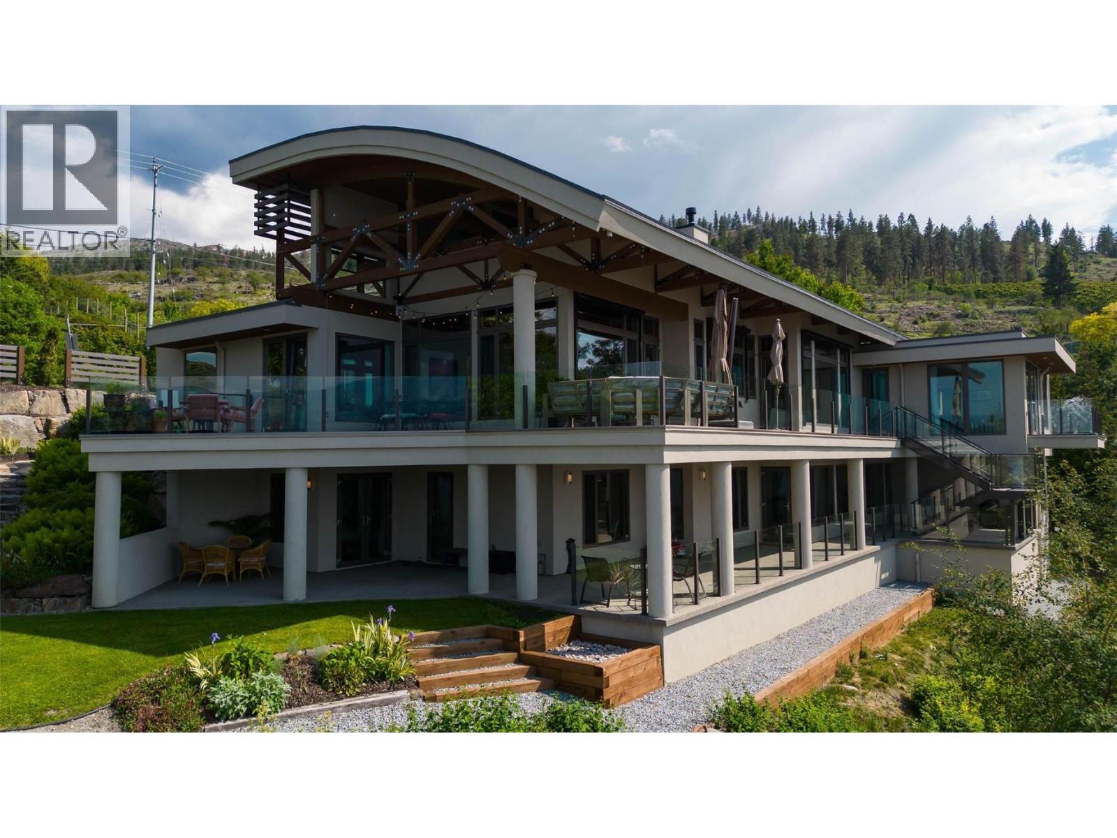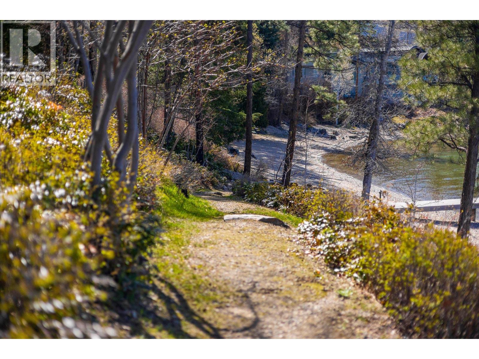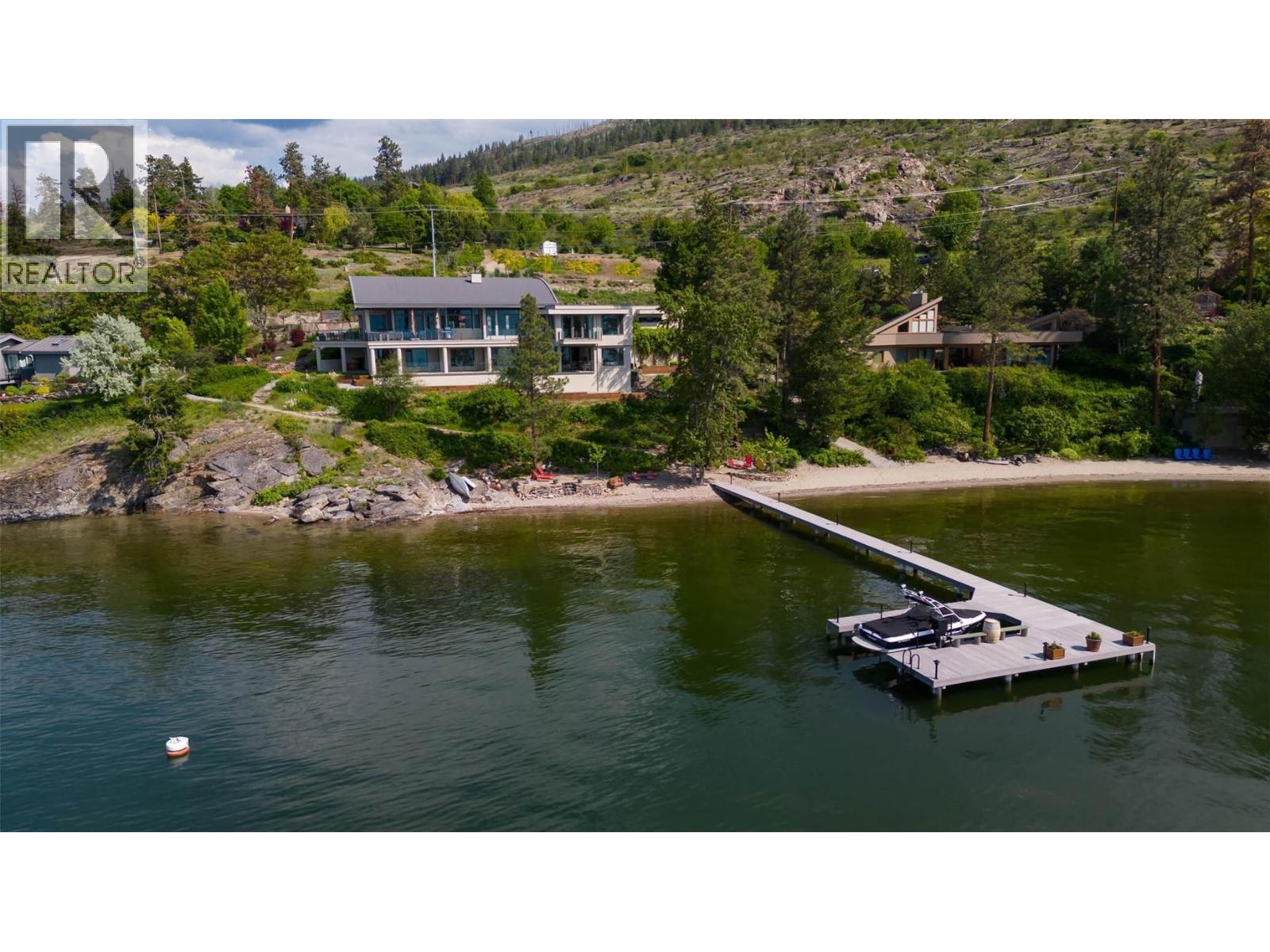 Known as Asparagus Bay, this home is built to celebrate Okanagan life. Its 1.297 acres - nurtured into an award-winning water-wise garden - offer a 5000+ square foot house designed by Architect Robert Turik to create ideal views, a roofline that honors the surrounding hillsides, access to outdoor living spaces, sunlight exposure, & privacy. Six bedrooms and four bathrooms total! Inside, the ceiling follows curved trusses varying from 12.5 feet to 20 feet high; the main south-facing windows ensure year-round sun; European tilt windows allow for extra airflow and cross breezes; & a bank of upper windows draw in the morning light. Upstairs, the kitchen is book-ended by living spaces, the master & ensuite both provide lake views, and a one bedroom suite offers privacy to guests. Every room provides seamless access to outside, including 1100+ square feet of patio space with stairs to another deck below. Downstairs offers two bedrooms and one bathroom, a kitchenette, access to outdoors, storage, and another roughed-in suite with kitchen and bathroom plumbing. Outside, walk down an accessible path (the old orchard-donkey path!) to 219 feet of lakeshore frontage with beach-entrance swimming and a private 130 foot dock built in 2018, and featuring both a three tonne hoist and parking for guests. The lot is bisected by Lakeshore Road, so landscaped uplands offer additional parking, a deer-fenced garden with fruit trees and berries, space for a workshop, and long-term development/subdivision potential. Walking distance to Cedar Creek Winery, Martin's Lane, waterfront parks, & more. (id:58842)