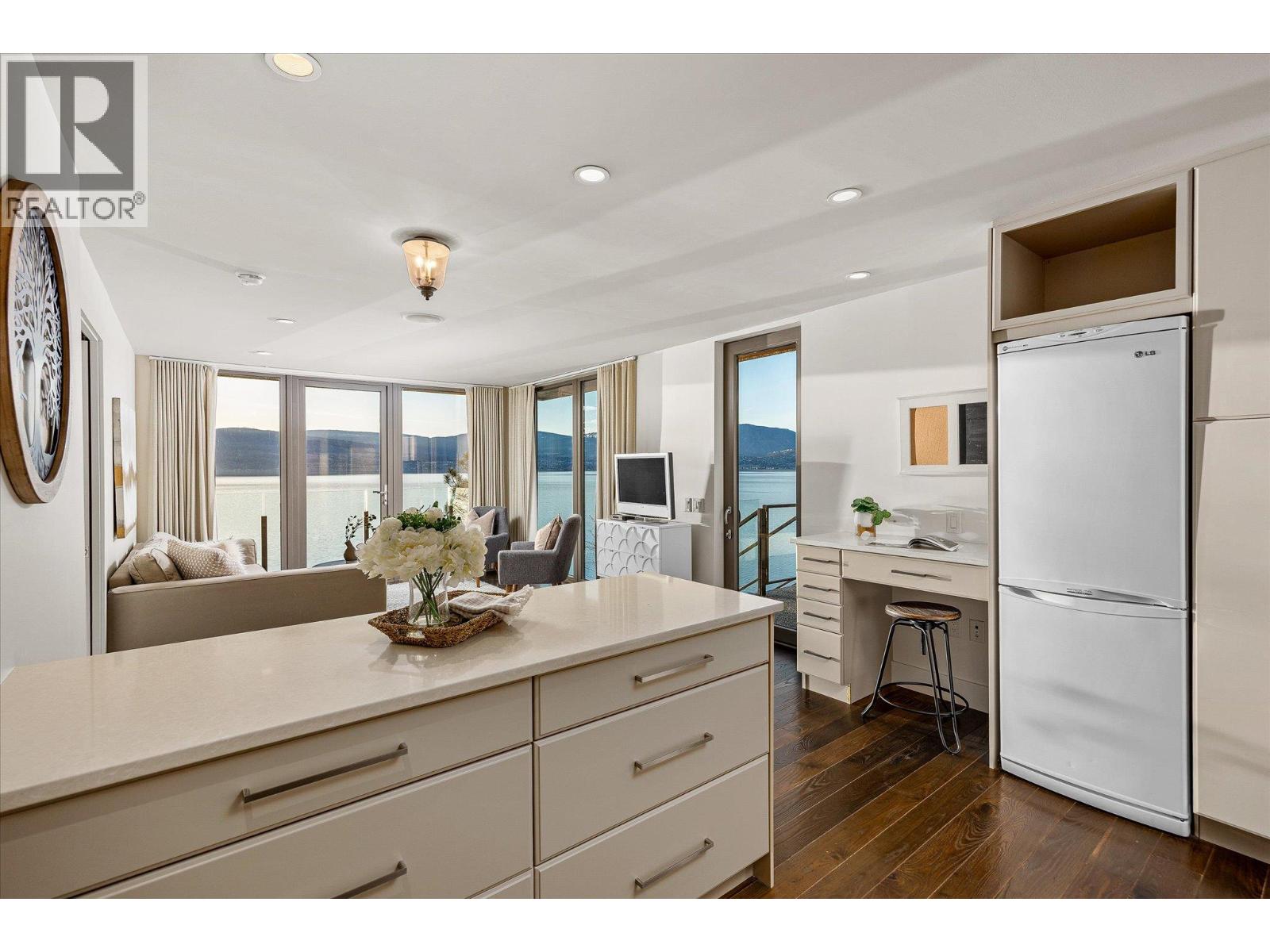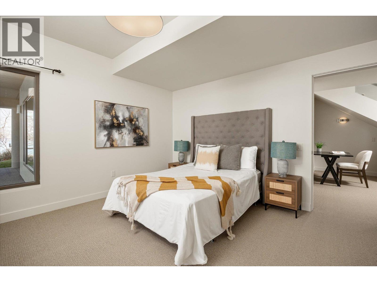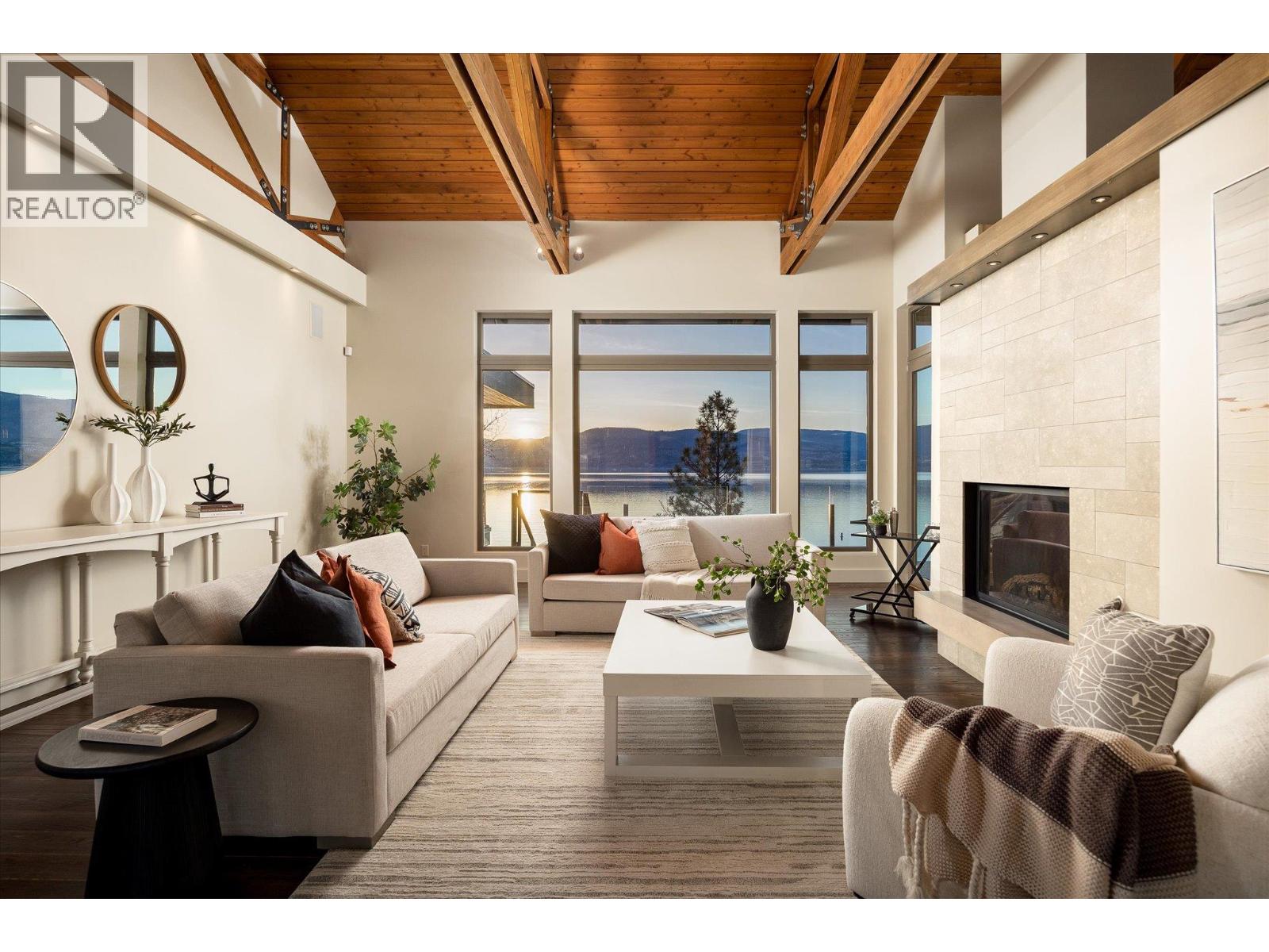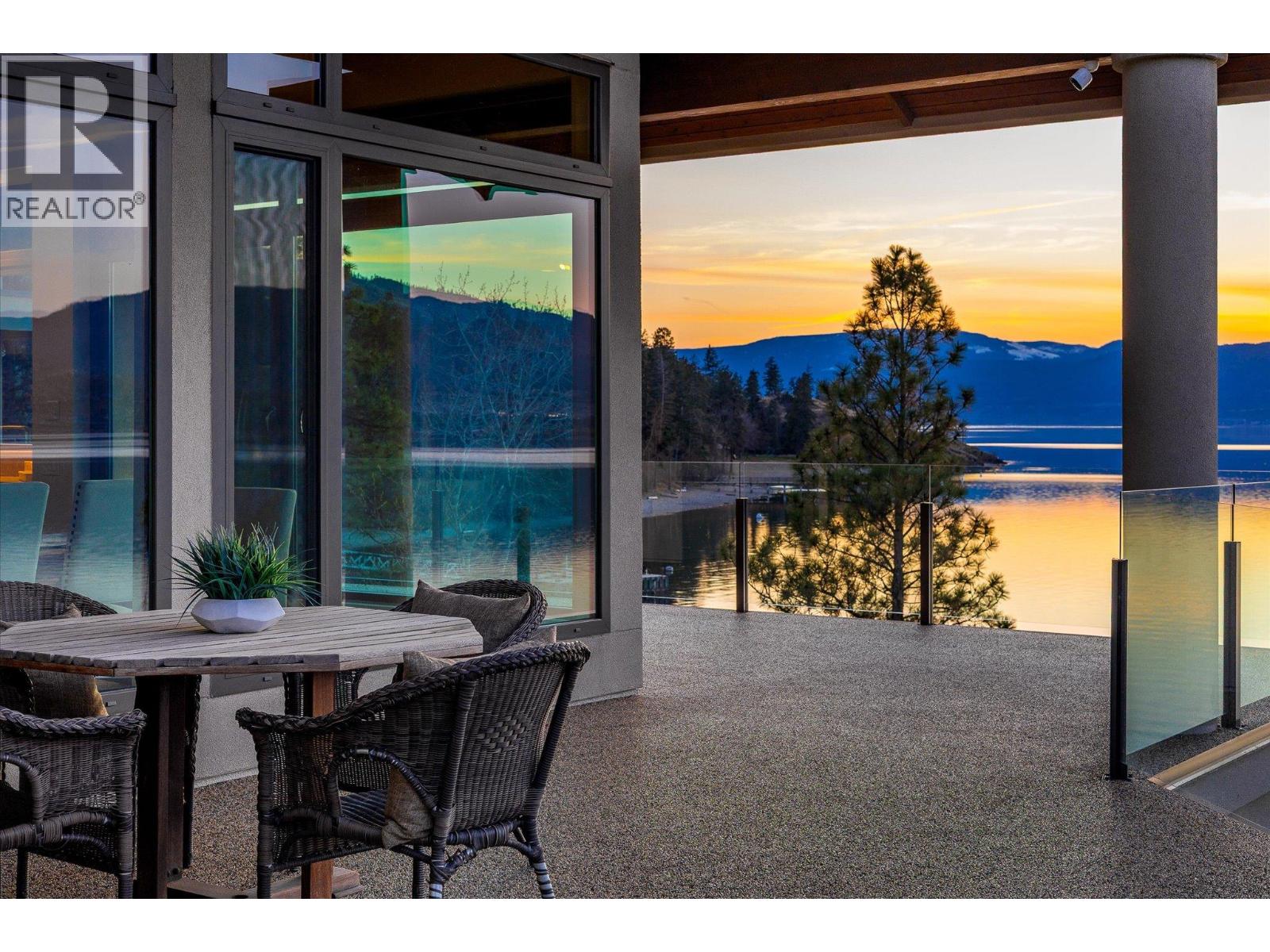 Known as Asparagus Bay, this home is built to celebrate Okanagan life. Its 1.297 acres - nurtured into an award-winning water-wise garden - offer a 5000+ square foot house designed by Architect Robert Turik to create ideal views, a roofline that honors the surrounding hillsides, access to outdoor living spaces, sunlight exposure, & privacy. Six bedrooms and four bathrooms total! Inside, the ceiling follows curved trusses varying from 12.5 feet to 20 feet high; the main south-facing windows ensure year-round sun; European tilt windows allow for extra airflow and cross breezes; & a bank of upper windows draw in the morning light. Upstairs, the kitchen is book-ended by living spaces, the master & ensuite both provide lake views, and a one bedroom suite offers privacy to guests. Every room provides seamless access to outside, including 1100+ square feet of patio space with stairs to another deck below. Downstairs offers two bedrooms and one bathroom, a kitchenette, access to outdoors, storage, and another roughed-in suite with kitchen and bathroom plumbing. Outside, walk down an accessible path (the old orchard-donkey path!) to 219 feet of lakeshore frontage with beach-entrance swimming and a private 130 foot dock built in 2018, and featuring both a three tonne hoist and parking for guests. The lot is bisected by Lakeshore Road, so landscaped uplands offer additional parking, a deer-fenced garden with fruit trees and berries, space for a workshop, and long-term development/subdivision potential. Walking distance to Cedar Creek Winery, Martin's Lane, waterfront parks, & more. (id:58842)