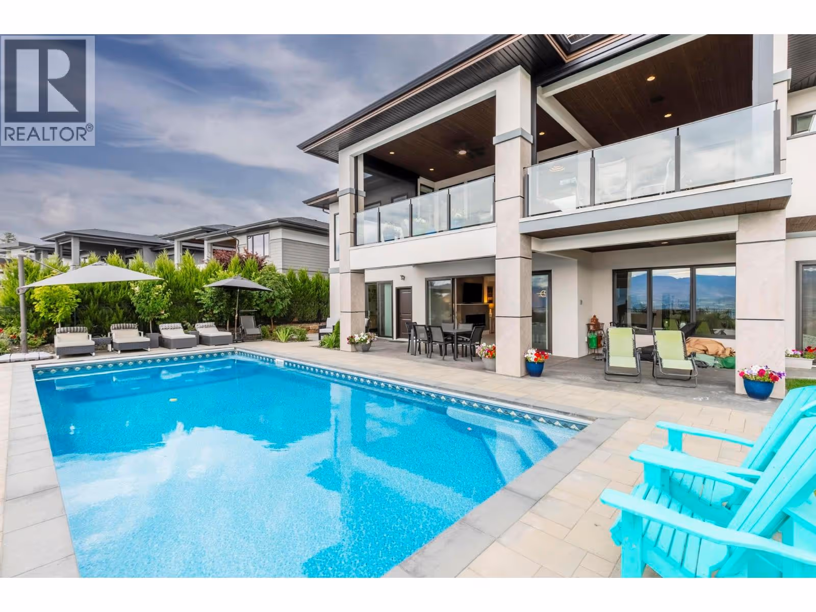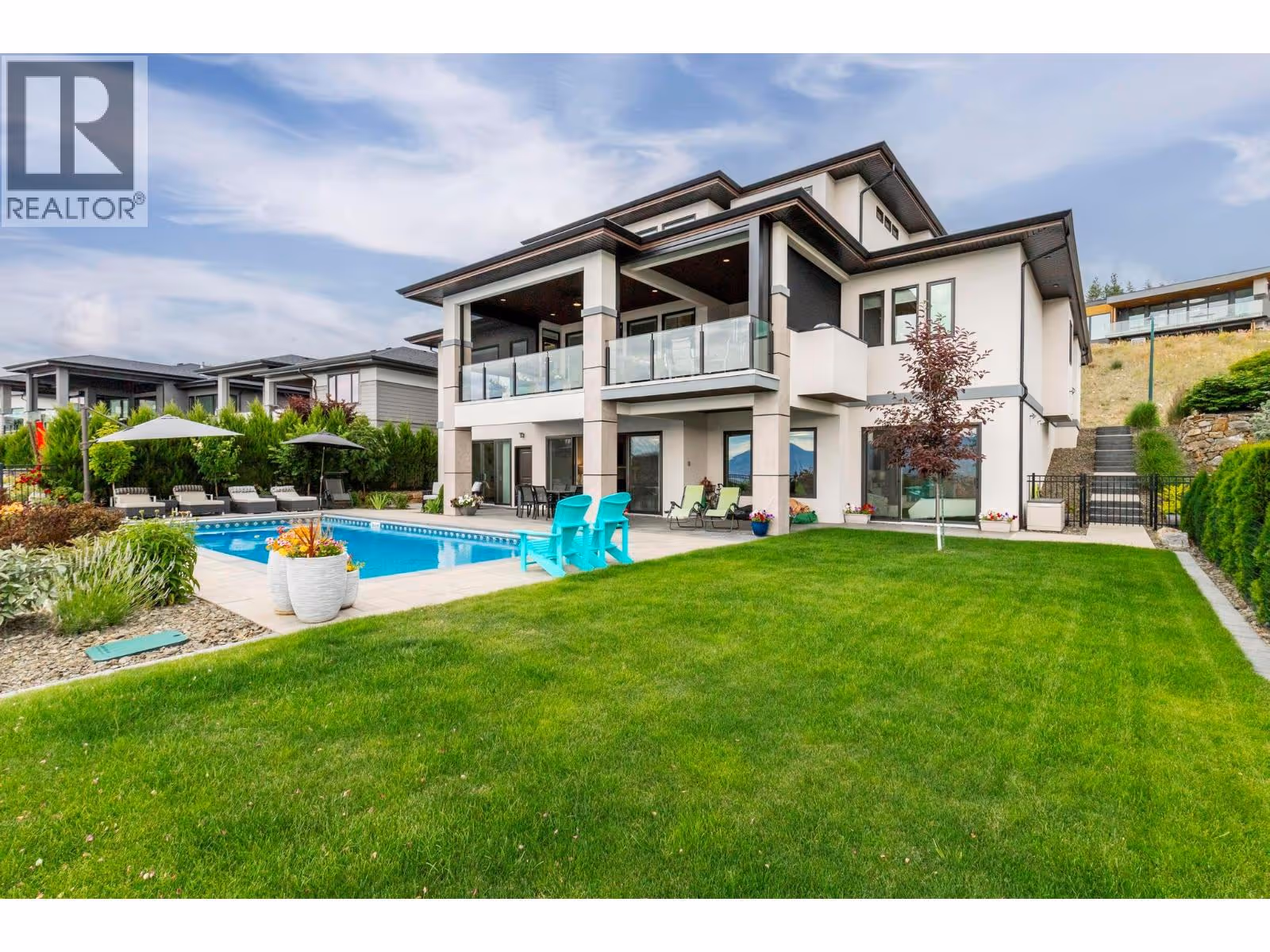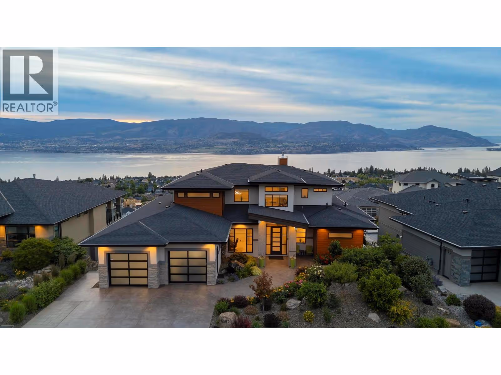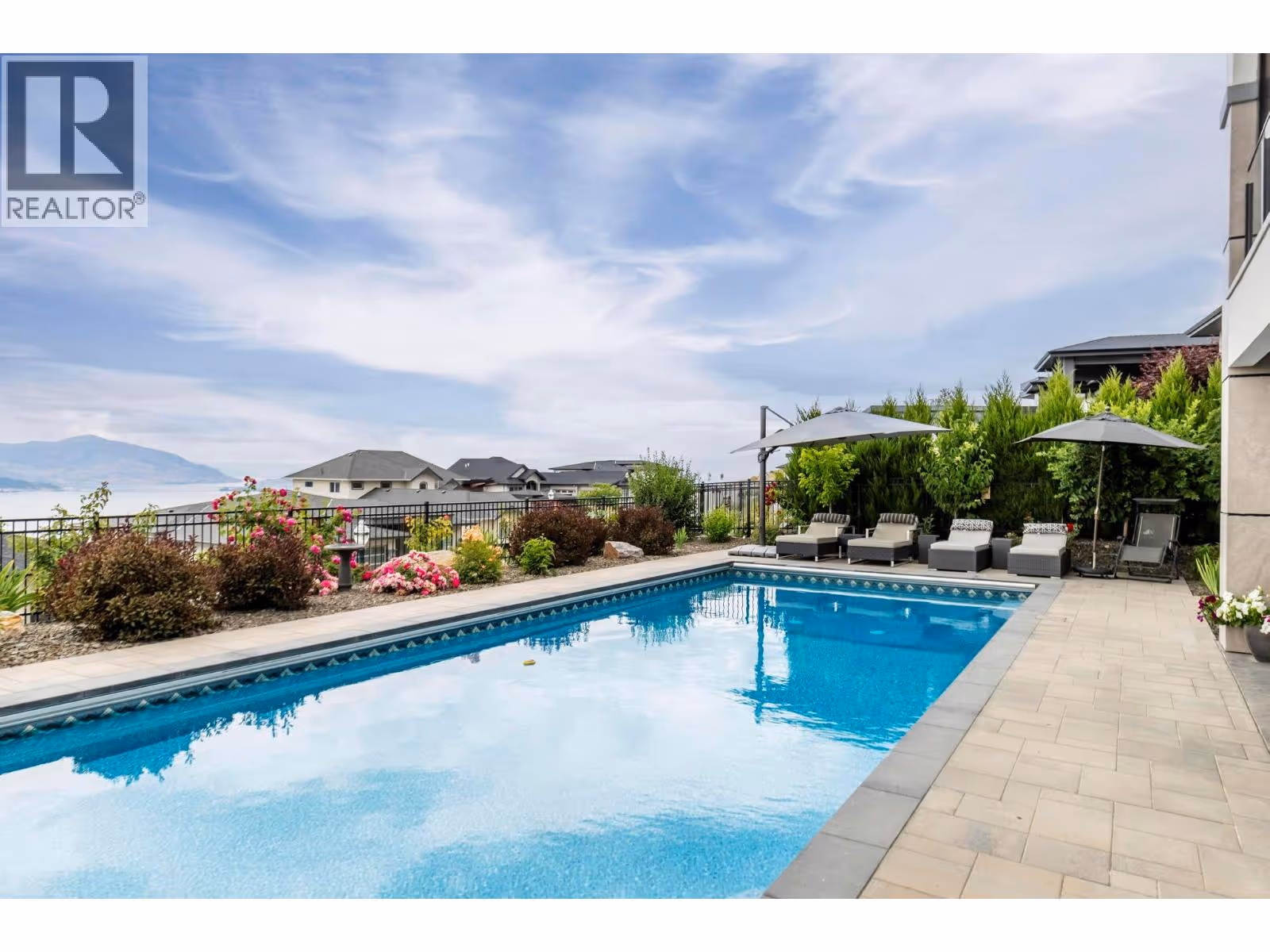 Kelowna Dream Home in the heart of Okanagan Wine & Lake Country! This near-new 'MINT' 5 Bedroom plus Den, 6 Bathroom, with 1 Bed Legal Suite home has 5,600+ square feet of beautifully designed contemporary space to enjoy with panoramic lake views, bright walkout basement, private pool w/ auto cover, fenced yard with grass area and gorgeous flower gardens! The open concept Main floor features oak hardwood and 18 ft vaulted ceilings with expansive windows showcasing the lake & downtown views. Proceed to the Primary Bedroom retreat w/ spa inspired Ensuite Bath w/ extra large tiled shower, generous walk-in closet, plus auto blinds and direct control cooling/heating. Find a Den, Powder Room, Kitchen with high end appliances, large walk-in Pantry with built-in cabinets and sink, and Mudroom / Laundry Room with access to the 2-3 car oversized garage with 10’5” ceilings (fit Lifts and/or Golf Simulator). Find a spacious loft up with two additional bedrooms each with their own en-suite baths! Downstairs find an entertainer’s dream with large open Rec Room, Wet Bar, and Gym with access to the fenced back yard oasis w/ 16 x 38 ft pool & grass area, plus 4th bedroom and full bathroom (+ 1 Bed Suite)! No expense spared with multi zone heating / cooling, heated garage, Control 4 multi zone speakers, smart home features, one touch auto opening cabinets, automated blinds, Gemstone lights, Hide-a-hose central vac, and power screened deck for those sunset evenings at the fire table. MOTIVATED. (id:58842)