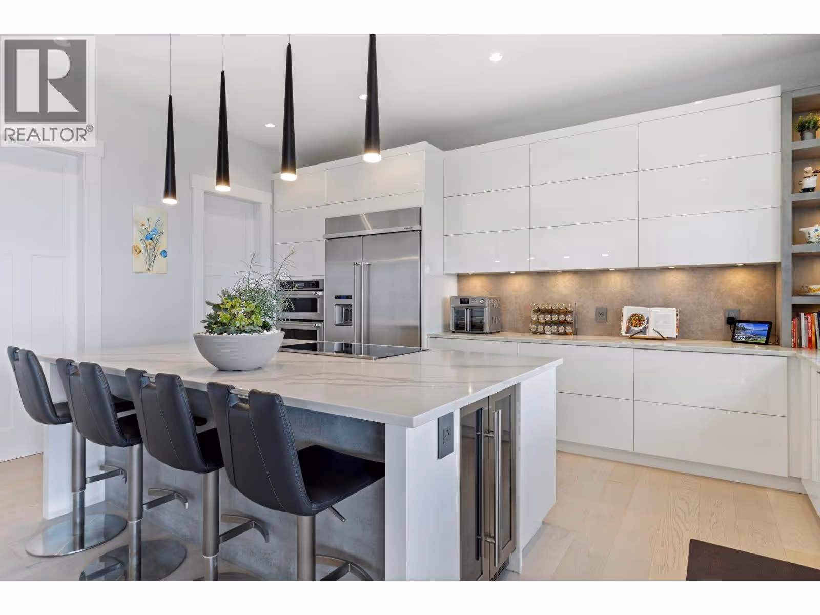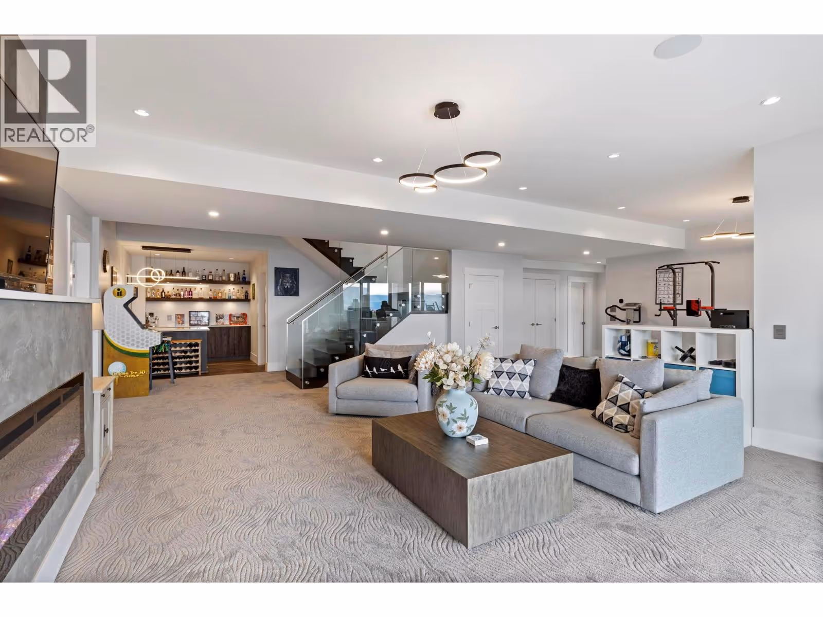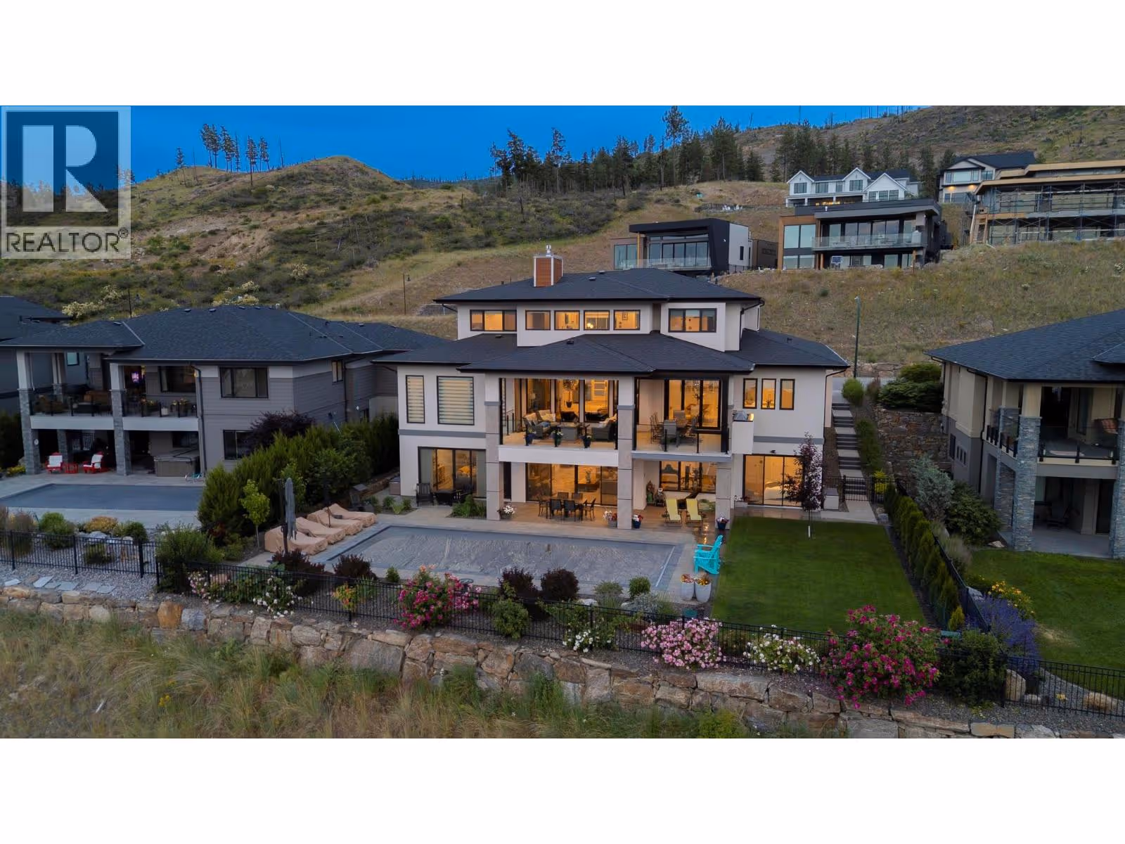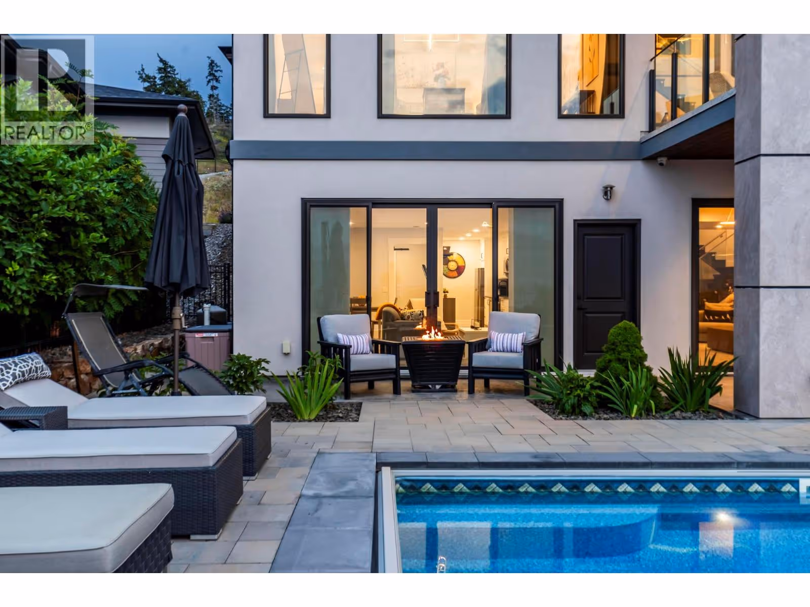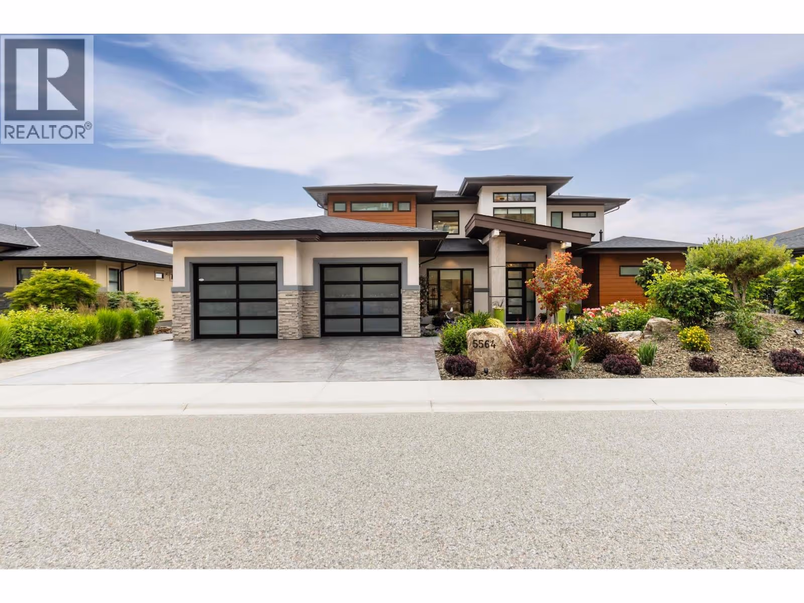 Kelowna Dream Home in the heart of Okanagan Wine & Lake Country! This near-new 'MINT' 5 Bedroom plus Den, 6 Bathroom, with 1 Bed Legal Suite home has 5,600+ square feet of beautifully designed contemporary space to enjoy with panoramic lake views, bright walkout basement, private pool w/ auto cover, fenced yard with grass area and gorgeous flower gardens! The open concept Main floor features oak hardwood and 18 ft vaulted ceilings with expansive windows showcasing the lake & downtown views. Proceed to the Primary Bedroom retreat w/ spa inspired Ensuite Bath w/ extra large tiled shower, generous walk-in closet, plus auto blinds and direct control cooling/heating. Find a Den, Powder Room, Kitchen with high end appliances, large walk-in Pantry with built-in cabinets and sink, and Mudroom / Laundry Room with access to the 2-3 car oversized garage with 10’5” ceilings (fit Lifts and/or Golf Simulator). Find a spacious loft up with two additional bedrooms each with their own en-suite baths! Downstairs find an entertainer’s dream with large open Rec Room, Wet Bar, and Gym with access to the fenced back yard oasis w/ 16 x 38 ft pool & grass area, plus 4th bedroom and full bathroom (+ 1 Bed Suite)! No expense spared with multi zone heating / cooling, heated garage, Control 4 multi zone speakers, smart home features, one touch auto opening cabinets, automated blinds, Gemstone lights, Hide-a-hose central vac, and power screened deck for those sunset evenings at the fire table. MOTIVATED. (id:58842)