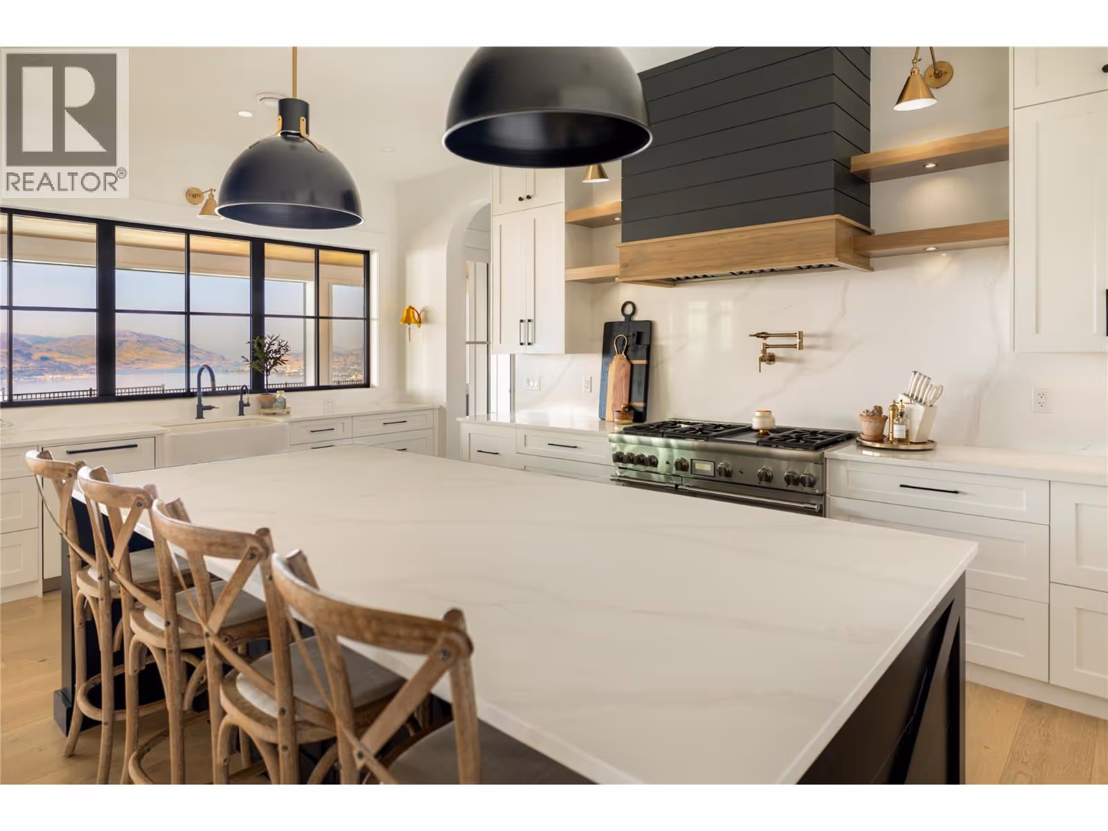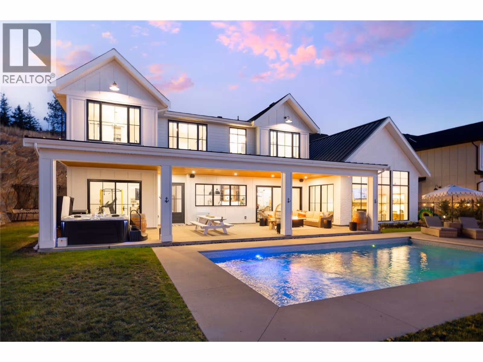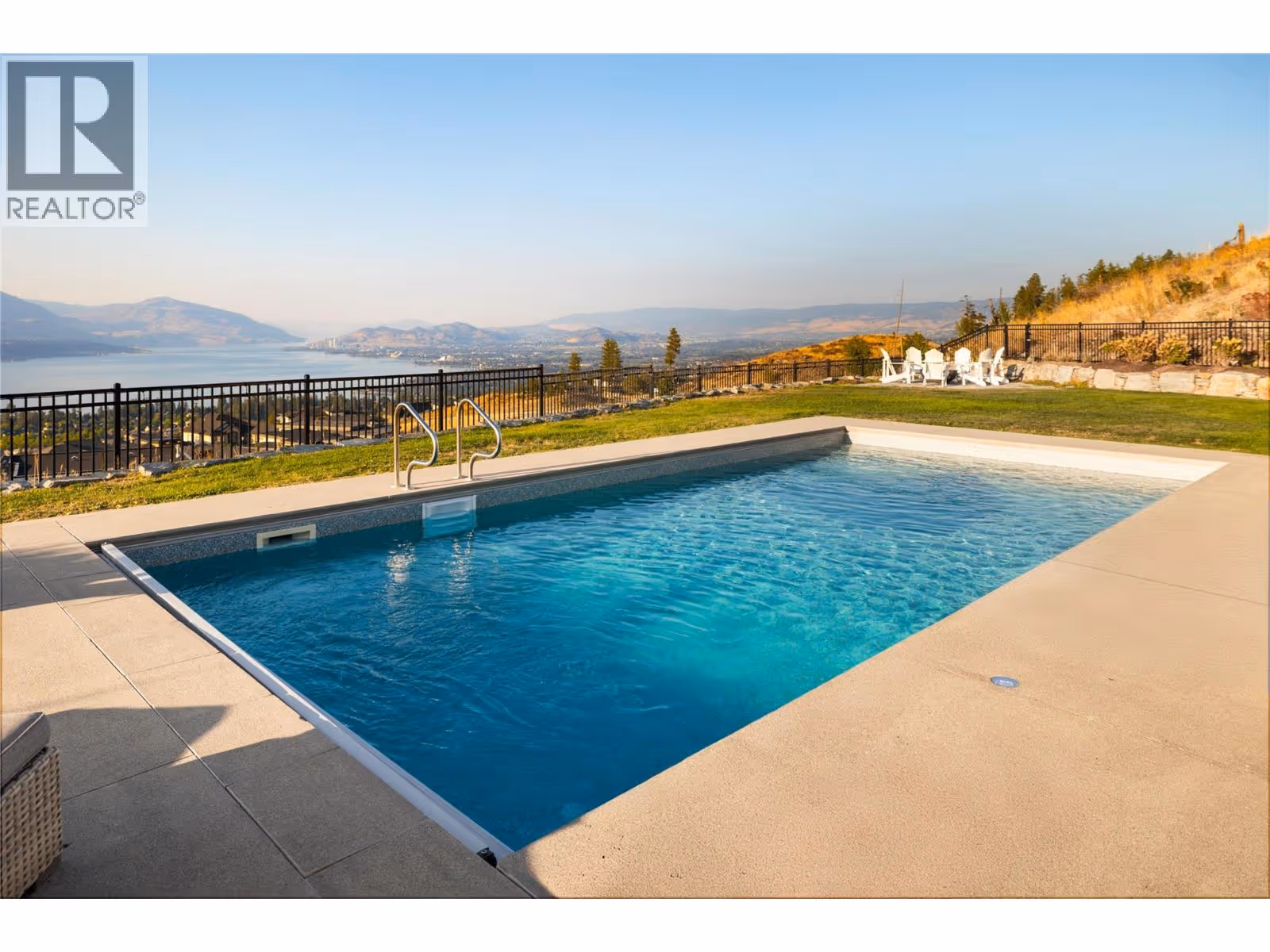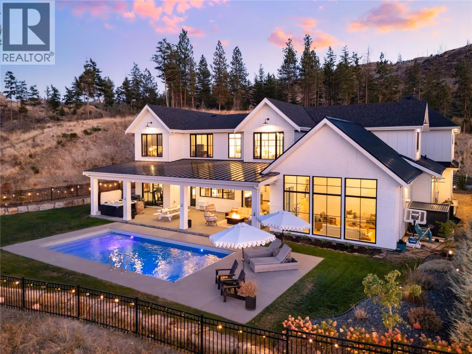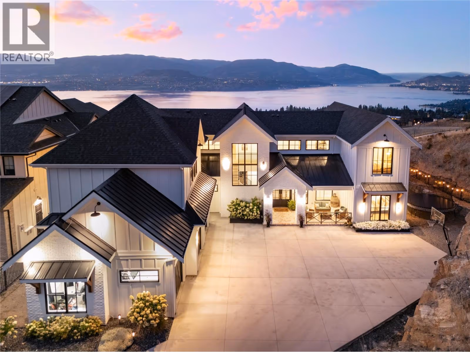 The Ultimate Upper Mission Family Estate—Modern Farmhouse Luxury on 1.1 Acres! Beyond the gates, a private spacious setting captures sweeping lake, mountain & city views while the residence itself is an architectural showpiece of flawless design. The main level is defined by volume & light: soaring ceilings, expansive windows, arched doorways & timeless shiplap details. At its heart is a chef’s kitchen crafted for both beauty & function—Thermador appliances, a striking 3-tone palette, custom hood fan, farmhouse sink & a butler’s pantry with direct access to the pool deck. The adjoining dining space & living room (anchored by a stone fireplace & custom built-ins) open completely to the outdoors, where seamless entertaining takes centre stage. The outdoor living environment is resort calibre: a saltwater pool, hot tub, firepit, covered patio with heaters and speakers & a perfectly flat lawn for kids to play. Upstairs, the family-friendly floor plan shines—four bedrooms together, a generous rec room for children or teens & a private primary retreat with spa-inspired ensuite & walk-in closet. Additional luxuries include a wine room, fitness room, expansive mudroom & oversized garage. Every detail was designed to elevate daily living while creating a backdrop for family memories. Rarely does a home offer this much land, this calibre of finish & this level of lifestyle—minutes to schools, shops, wineries & the lake. (id:58842)