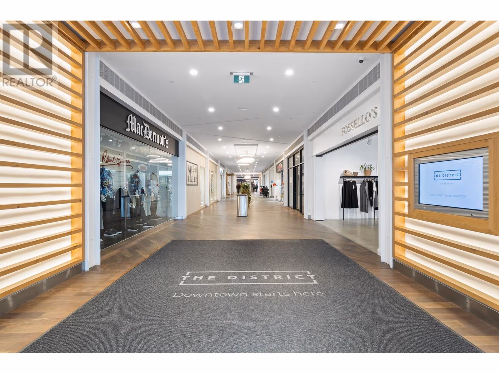 Position your business at the heart of Kelowna’s vibrant downtown core. This 956 SF retail unit offers an exceptional opportunity within The District on Bernard, a premier retail and office destination known for its energy, style, and high visibility... High Exposure Location: Benefit from constant pedestrian and vehicle traffic generated by the dynamic tenant mix Tommy Guns, Gameday, Post office and more. Modern, Urban Aesthetic: Clean lines, ample natural light, and contemporary finishes create an inviting retail environment...Huge Windows: Great advertising space...On-Site Parking: Dedicated customer parking ensures easy accessibility, boosting convenience and sales opportunities...Main Floor Washrooms: Shared facilities provide added customer and staff convenience. CAM + Property Taxes$13.12 PSF HVAC + Utilities$3.07 PSF (id:58842)