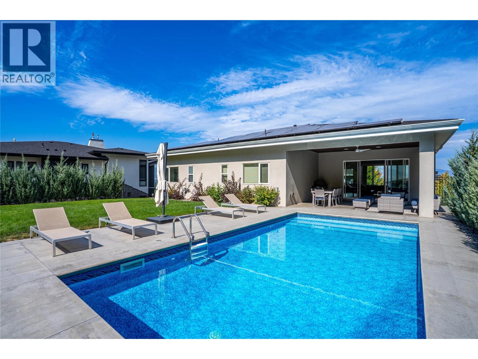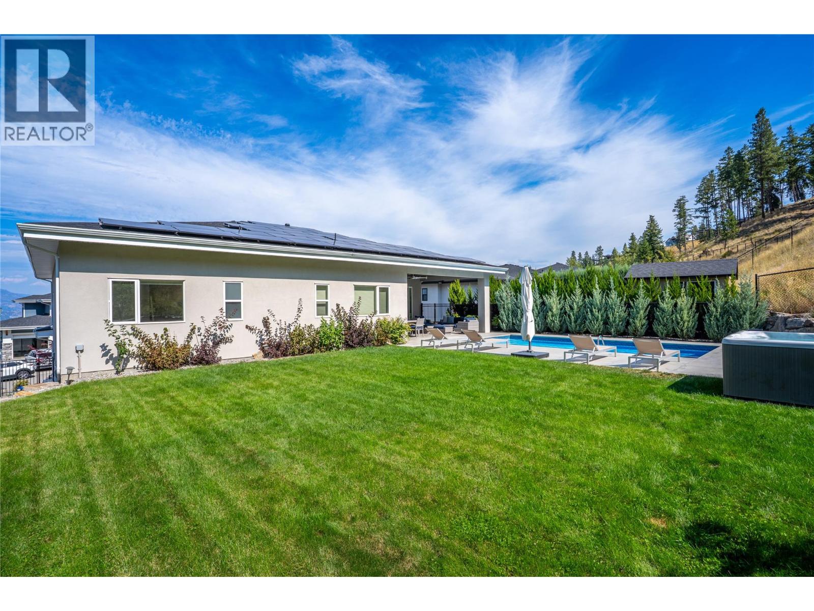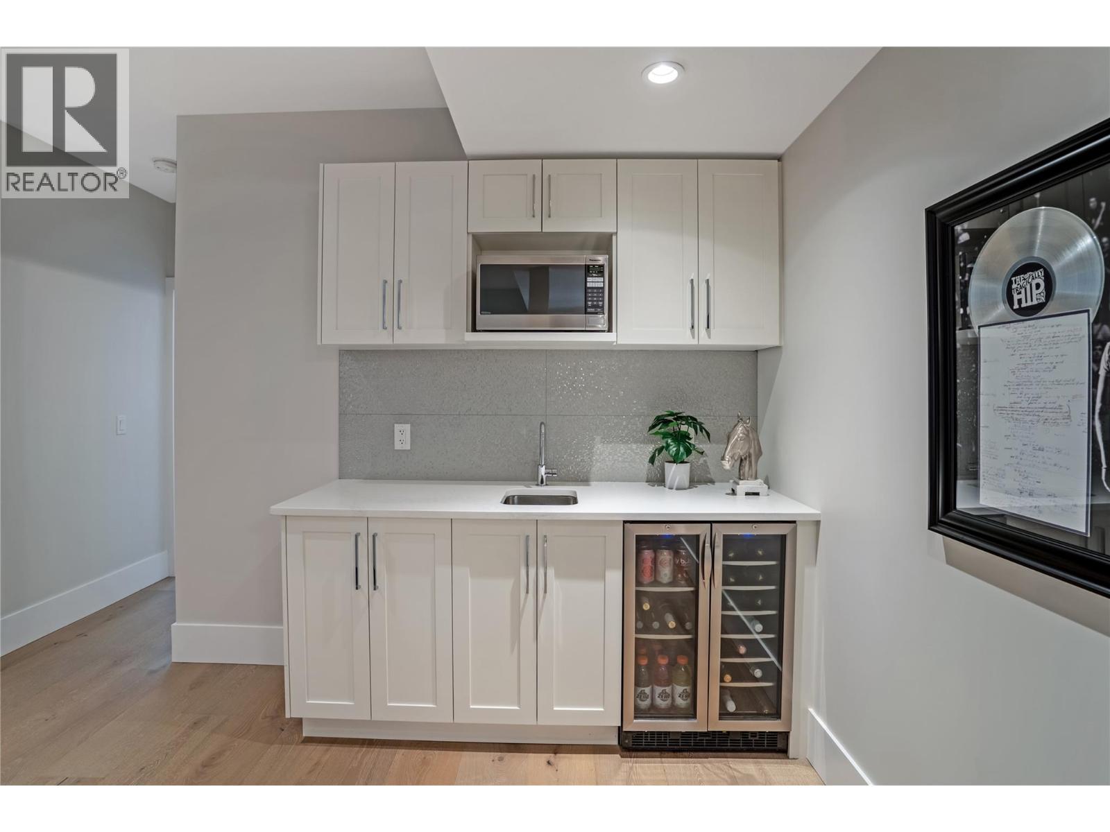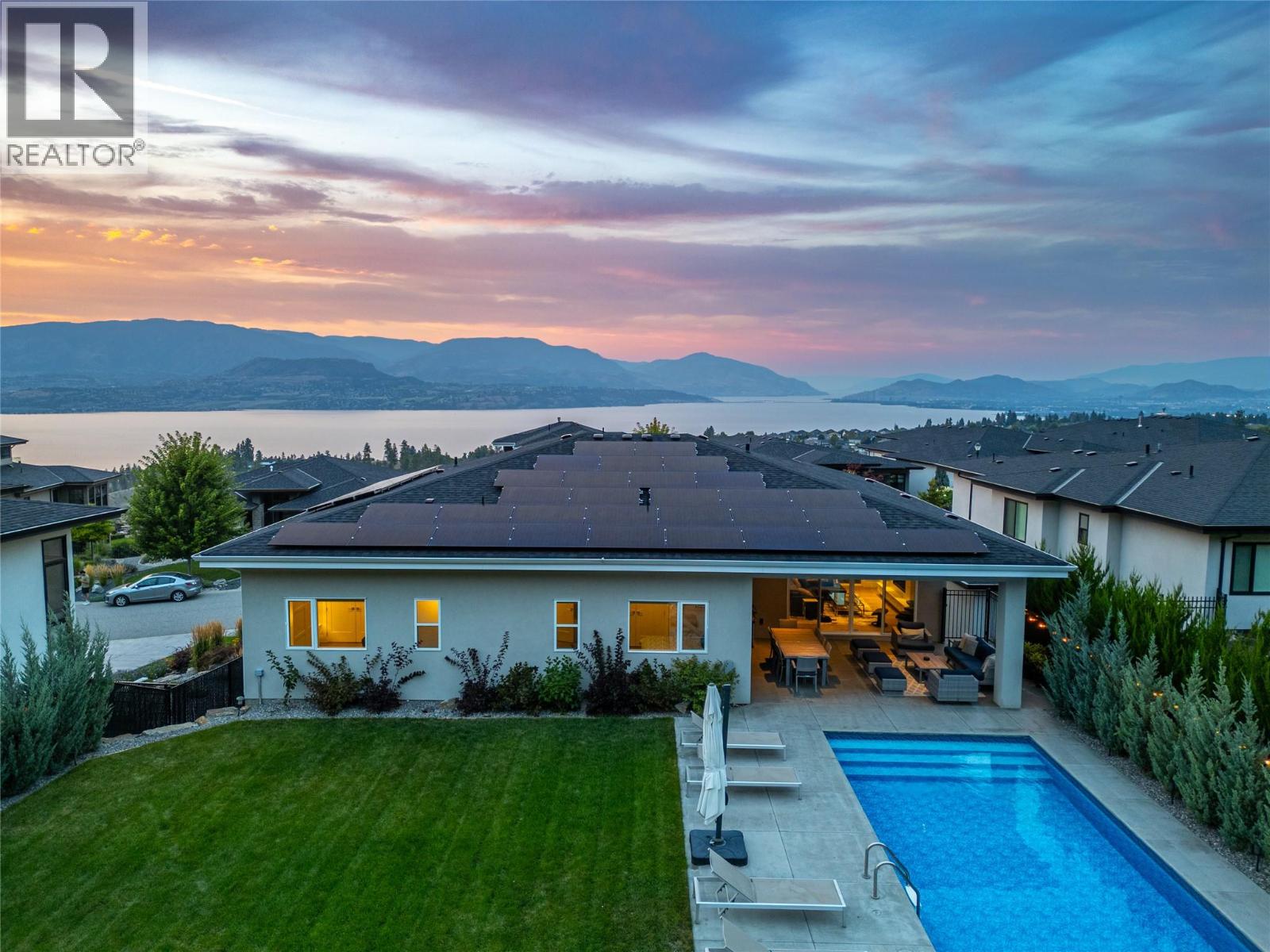 Discover custom-built luxury in this stunning 5-bedroom, 5-bath home featuring a bright, legal 1-bedroom ground-level suite. This high-efficiency smart home boasts soaring vaulted ceilings, a dramatic floating staircase, and rich wide plank wood floors. The open-concept main floor centers around a chef’s kitchen with quartz countertops, custom cabinetry, and a hidden walk-in butler’s pantry. Flow effortlessly into the spacious dining and living areas warmed by a gas fireplace, then step out onto the front deck to enjoy Okanagan Lake and mountain views. The private backyard is an entertainer’s dream with a heated saltwater pool, hot tub, and ample space to relax or host gatherings. The main-level master suite offers a spa-like retreat with a soaker tub, glass-enclosed shower, and double floating vanity with undermount lighting. Two additional bedrooms share a stylish Jack & Jill bath, with one bedroom featuring a queen Murphy bed—ideal for guests or a home office. A large laundry room with abundant counters and cabinetry enhances daily functionality. The lower level features a generous rec room with an electric fireplace, wet bar, guest bedroom, and full bath. The oversized three-car garage easily fits a boat, a car, and plenty of toys. Exceptional millwork, designer fixtures, and quality finishes elevate every room. Enjoy close proximity to top schools, parks, dining, and Okanagan’s renowned wineries. Luxury, comfort, and thoughtful design converge in this remarkable home. (id:58842)