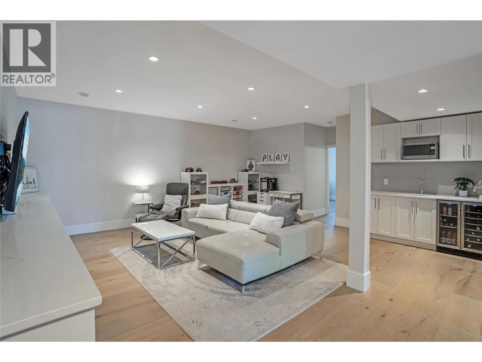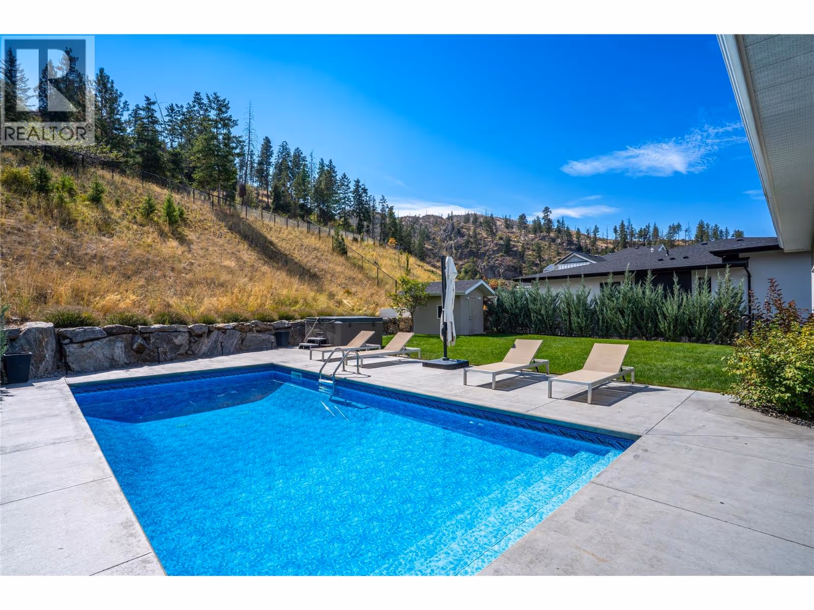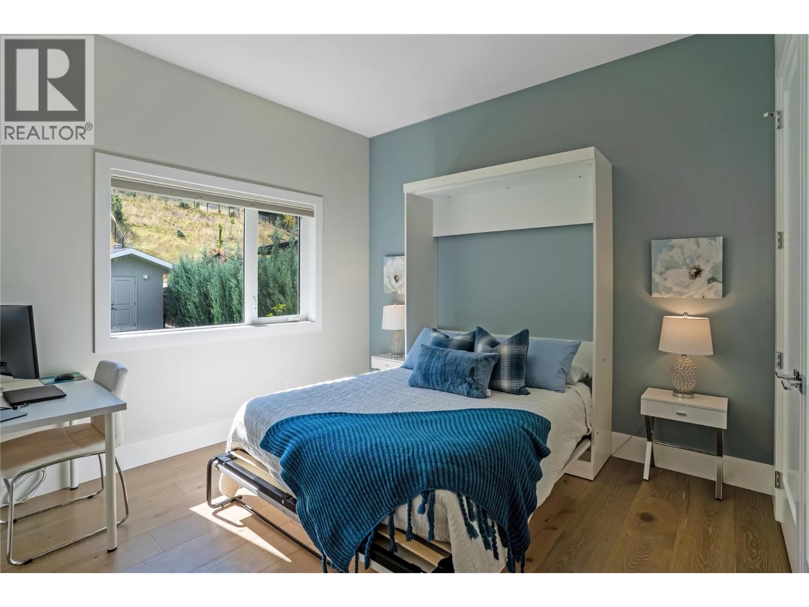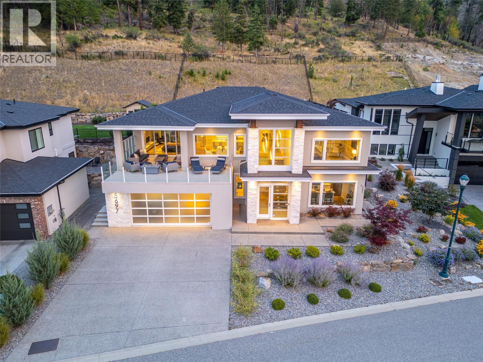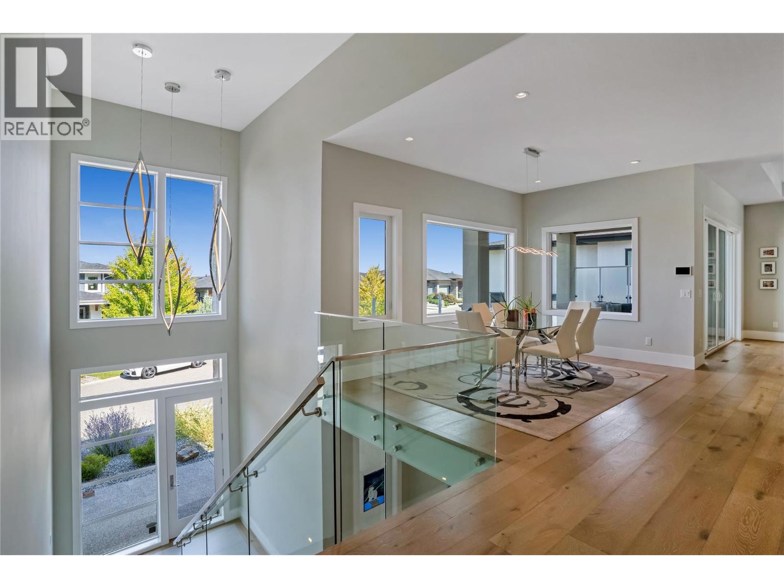 Discover custom-built luxury in this stunning 5-bedroom, 5-bath home featuring a bright, legal 1-bedroom ground-level suite. This high-efficiency smart home boasts soaring vaulted ceilings, a dramatic floating staircase, and rich wide plank wood floors. The open-concept main floor centers around a chef’s kitchen with quartz countertops, custom cabinetry, and a hidden walk-in butler’s pantry. Flow effortlessly into the spacious dining and living areas warmed by a gas fireplace, then step out onto the front deck to enjoy Okanagan Lake and mountain views. The private backyard is an entertainer’s dream with a heated saltwater pool, hot tub, and ample space to relax or host gatherings. The main-level master suite offers a spa-like retreat with a soaker tub, glass-enclosed shower, and double floating vanity with undermount lighting. Two additional bedrooms share a stylish Jack & Jill bath, with one bedroom featuring a queen Murphy bed—ideal for guests or a home office. A large laundry room with abundant counters and cabinetry enhances daily functionality. The lower level features a generous rec room with an electric fireplace, wet bar, guest bedroom, and full bath. The oversized three-car garage easily fits a boat, a car, and plenty of toys. Exceptional millwork, designer fixtures, and quality finishes elevate every room. Enjoy close proximity to top schools, parks, dining, and Okanagan’s renowned wineries. Luxury, comfort, and thoughtful design converge in this remarkable home. (id:58842)