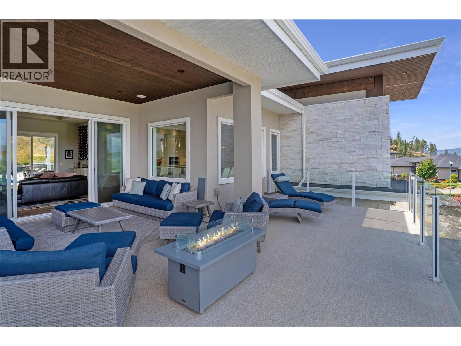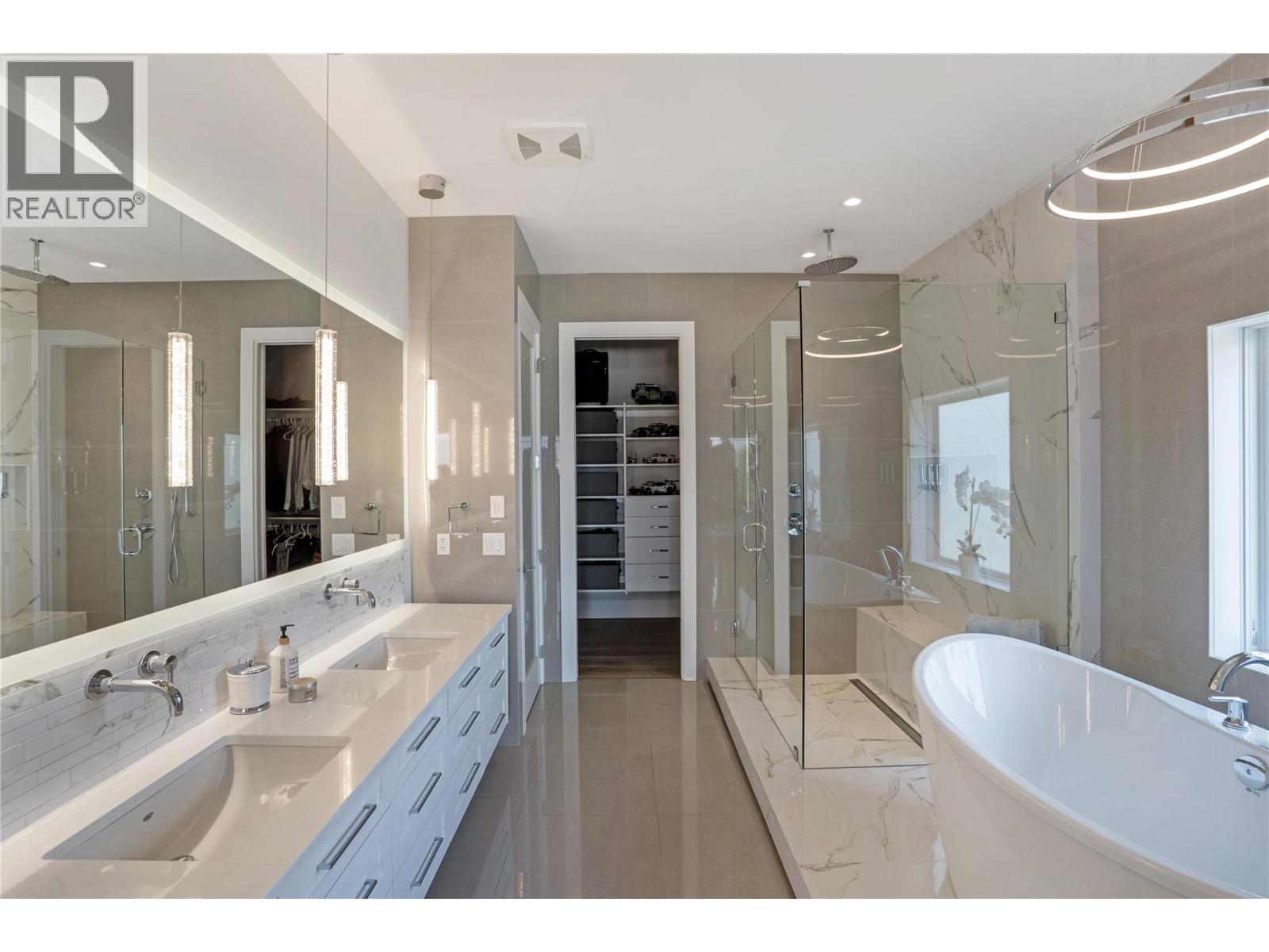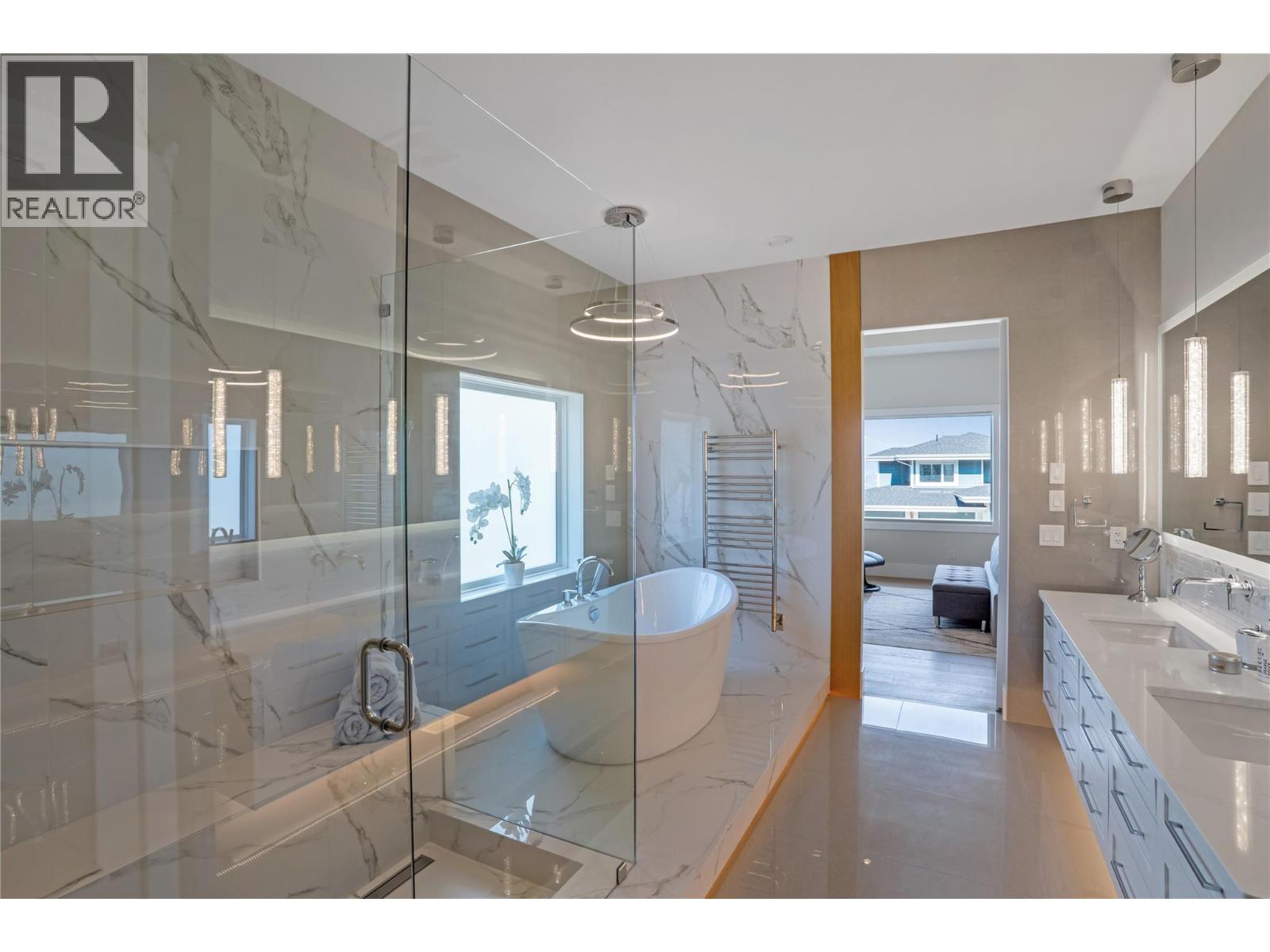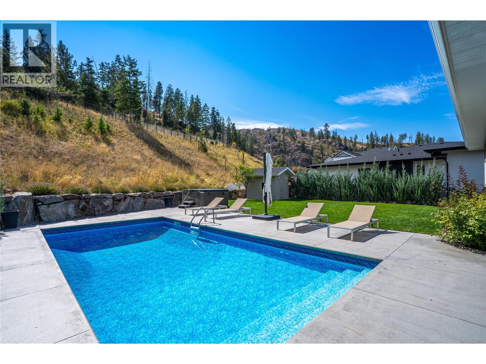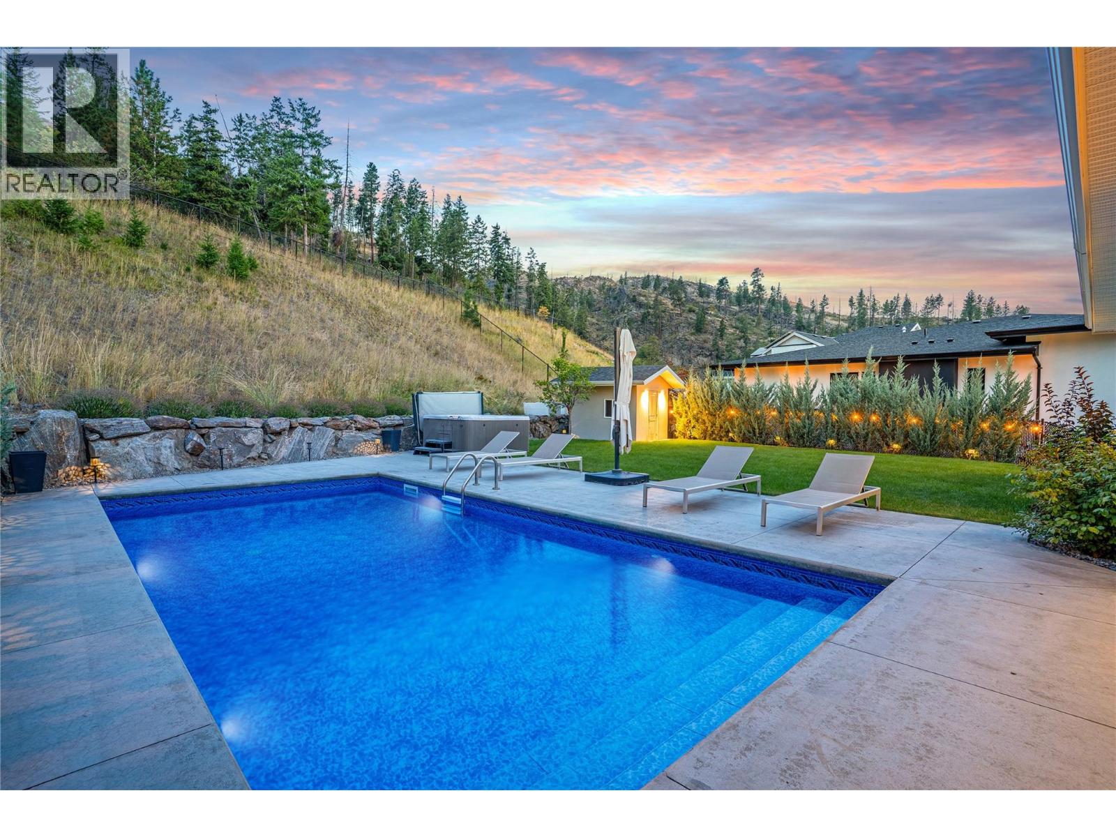 Discover custom-built luxury in this stunning 5-bedroom, 5-bath home featuring a bright, legal 1-bedroom ground-level suite. This high-efficiency smart home boasts soaring vaulted ceilings, a dramatic floating staircase, and rich wide plank wood floors. The open-concept main floor centers around a chef’s kitchen with quartz countertops, custom cabinetry, and a hidden walk-in butler’s pantry. Flow effortlessly into the spacious dining and living areas warmed by a gas fireplace, then step out onto the front deck to enjoy Okanagan Lake and mountain views. The private backyard is an entertainer’s dream with a heated saltwater pool, hot tub, and ample space to relax or host gatherings. The main-level master suite offers a spa-like retreat with a soaker tub, glass-enclosed shower, and double floating vanity with undermount lighting. Two additional bedrooms share a stylish Jack & Jill bath, with one bedroom featuring a queen Murphy bed—ideal for guests or a home office. A large laundry room with abundant counters and cabinetry enhances daily functionality. The lower level features a generous rec room with an electric fireplace, wet bar, guest bedroom, and full bath. The oversized three-car garage easily fits a boat, a car, and plenty of toys. Exceptional millwork, designer fixtures, and quality finishes elevate every room. Enjoy close proximity to top schools, parks, dining, and Okanagan’s renowned wineries. Luxury, comfort, and thoughtful design converge in this remarkable home. (id:58842)