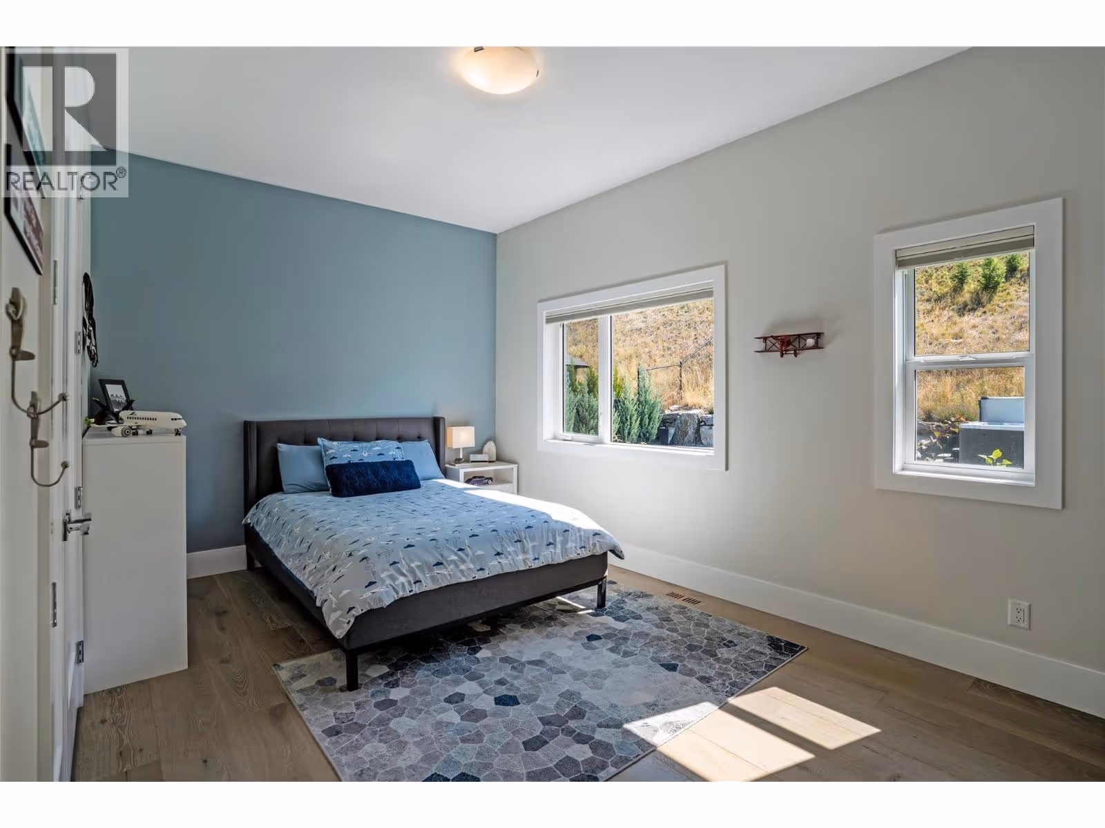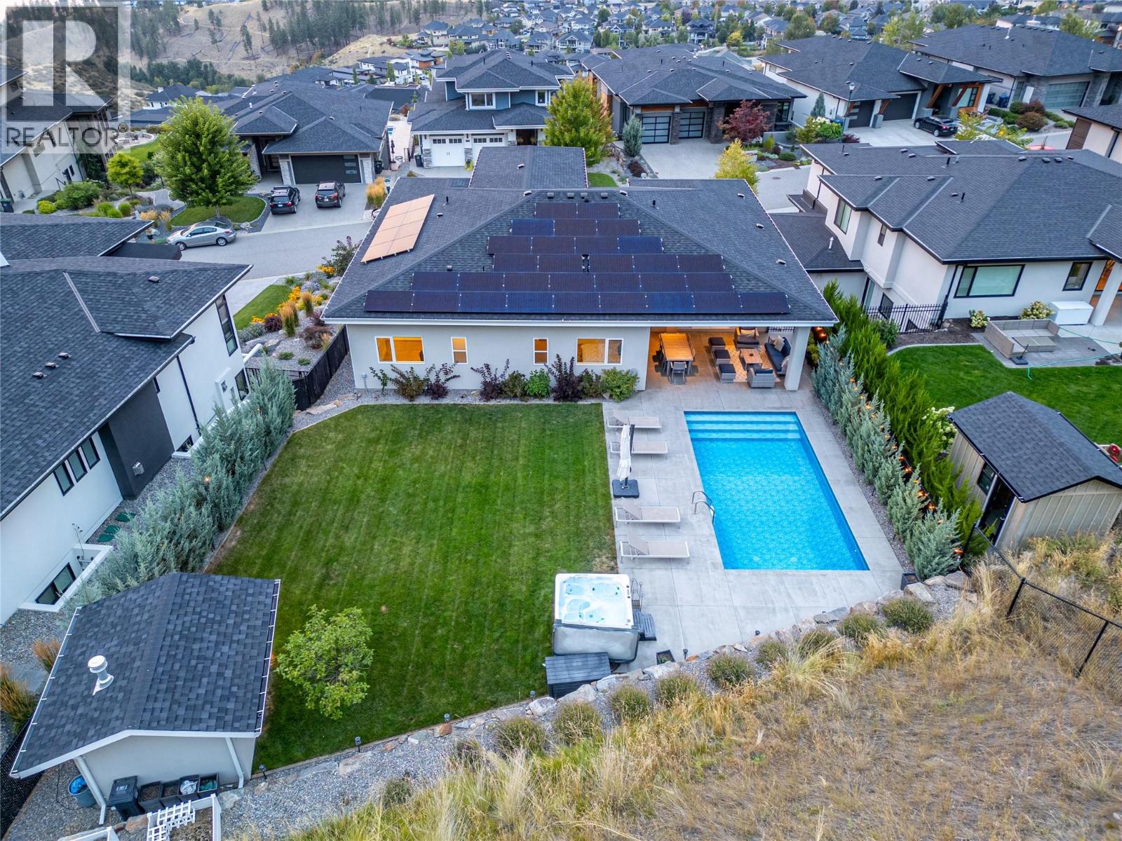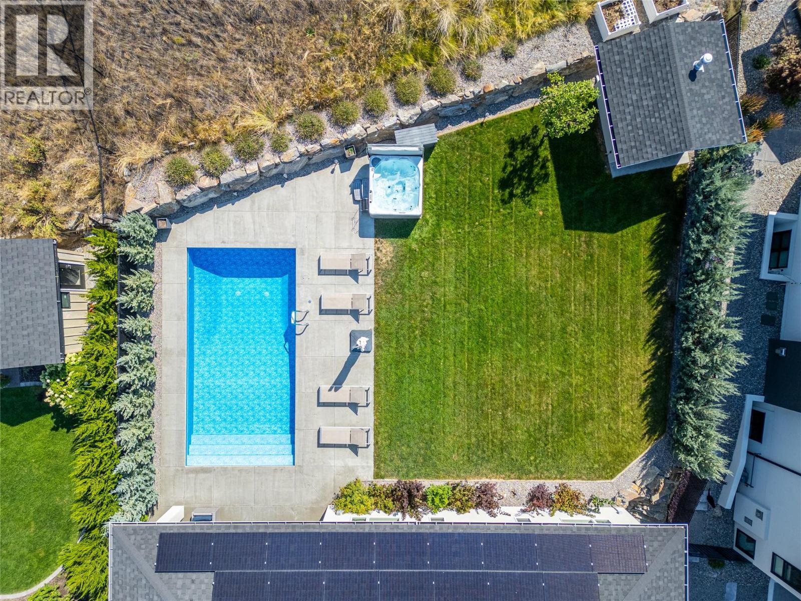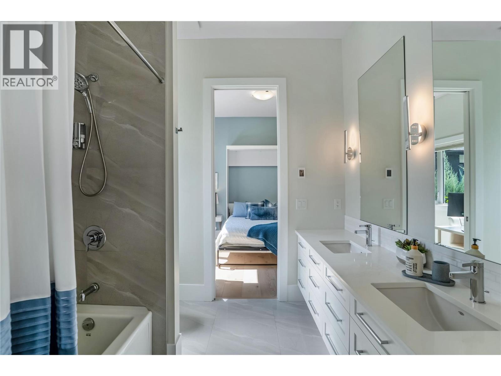Discover custom-built luxury in this stunning 5-bedroom, 5-bath home featuring a bright, legal 1-bedroom ground-level suite. This high-efficiency smart home boasts soaring vaulted ceilings, a dramatic floating staircase, and rich wide plank wood floors. The open-concept main floor centers around a chef’s kitchen with quartz countertops, custom cabinetry, and a hidden walk-in butler’s pantry. Flow effortlessly into the spacious dining and living areas warmed by a gas fireplace, then step out onto the front deck to enjoy Okanagan Lake and mountain views. The private backyard is an entertainer’s dream with a heated saltwater pool, hot tub, and ample space to relax or host gatherings. The main-level master suite offers a spa-like retreat with a soaker tub, glass-enclosed shower, and double floating vanity with undermount lighting. Two additional bedrooms share a stylish Jack & Jill bath, with one bedroom featuring a queen Murphy bed—ideal for guests or a home office. A large laundry room with abundant counters and cabinetry enhances daily functionality. The lower level features a generous rec room with an electric fireplace, wet bar, guest bedroom, and full bath. The oversized three-car garage easily fits a boat, a car, and plenty of toys. Exceptional millwork, designer fixtures, and quality finishes elevate every room. Enjoy close proximity to top schools, parks, dining, and Okanagan’s renowned wineries. Luxury, comfort, and thoughtful design converge in this remarkable home. (id:58842)