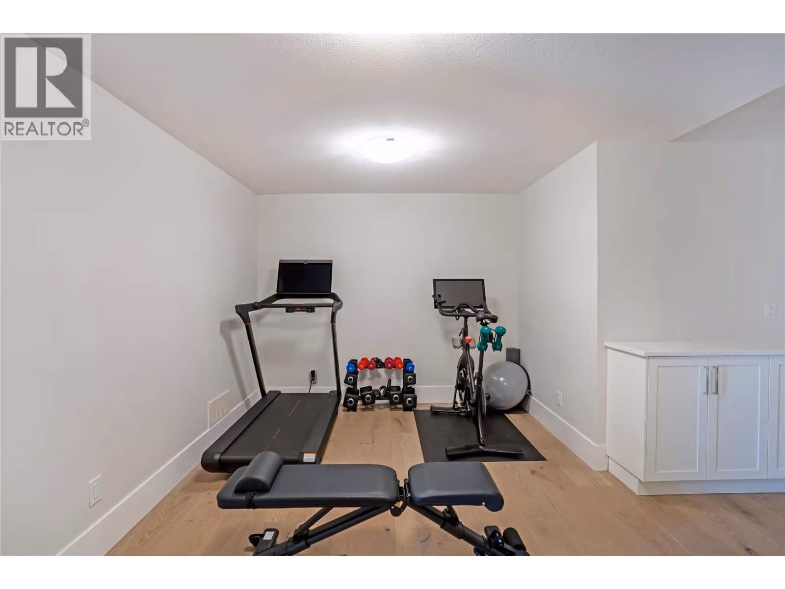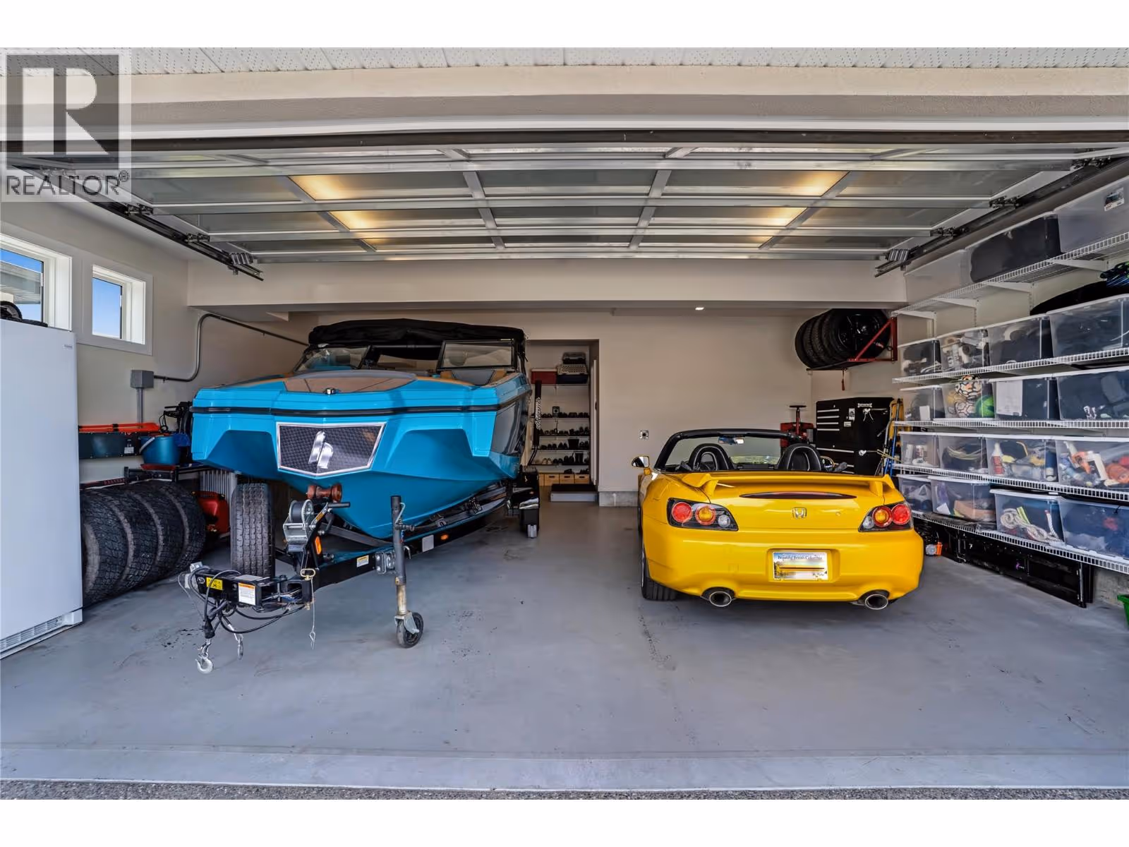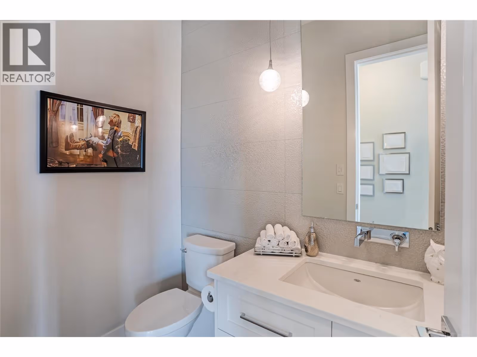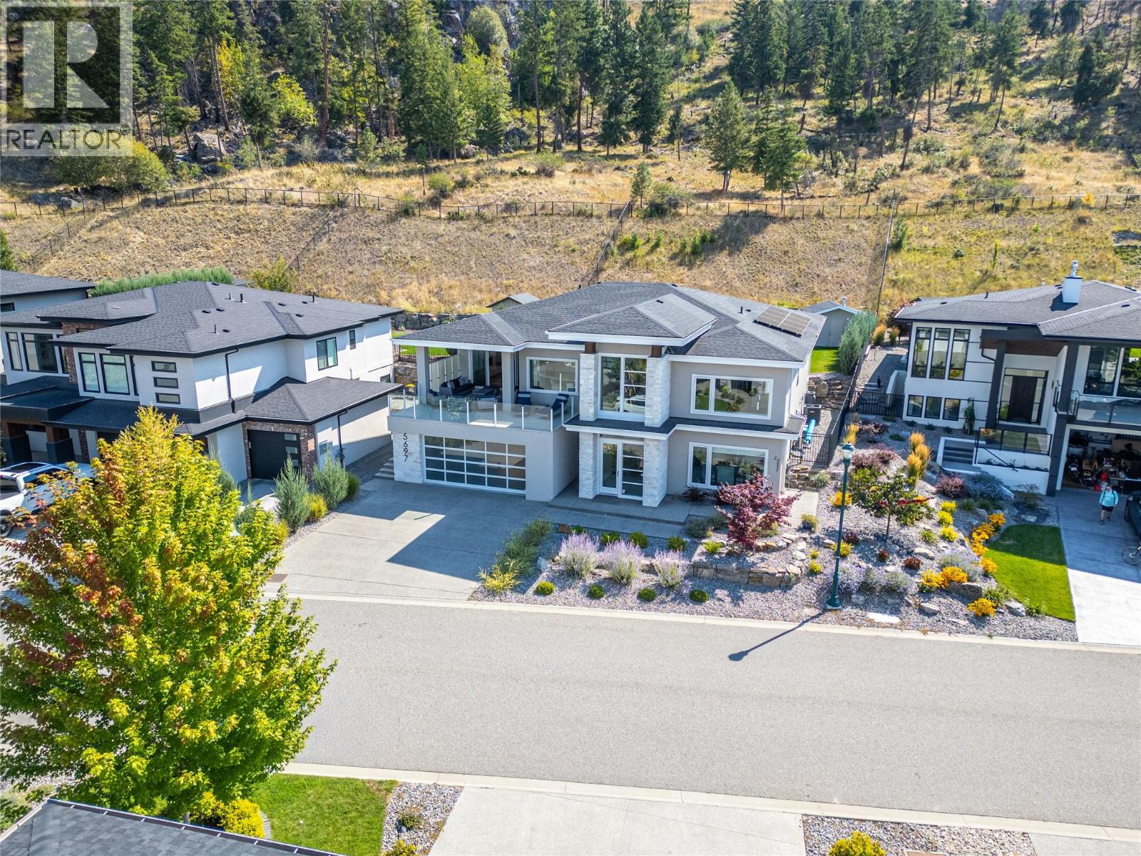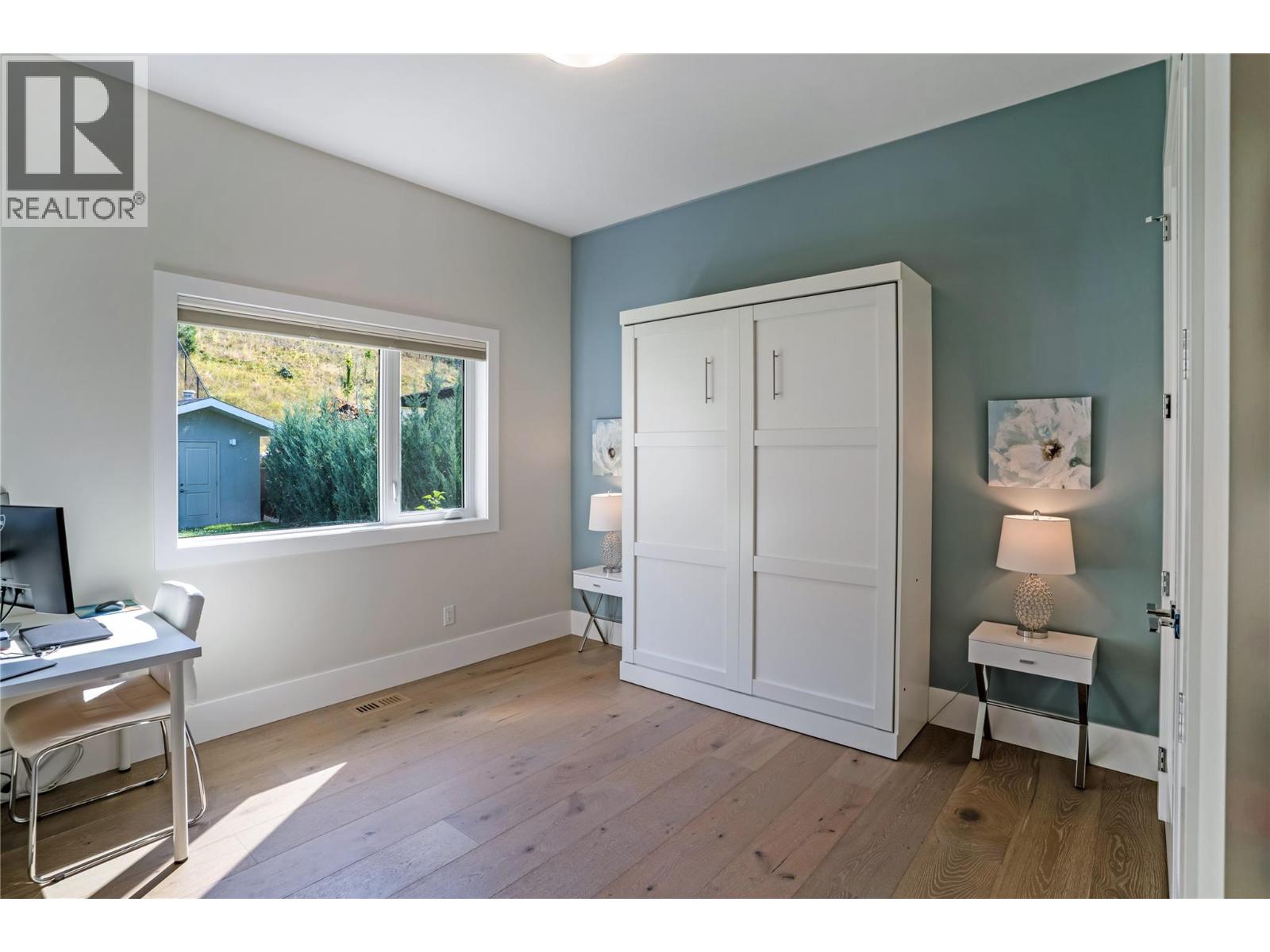 Discover custom-built luxury in this stunning 5-bedroom, 5-bath home featuring a bright, legal 1-bedroom ground-level suite. This high-efficiency smart home boasts soaring vaulted ceilings, a dramatic floating staircase, and rich wide plank wood floors. The open-concept main floor centers around a chef’s kitchen with quartz countertops, custom cabinetry, and a hidden walk-in butler’s pantry. Flow effortlessly into the spacious dining and living areas warmed by a gas fireplace, then step out onto the front deck to enjoy Okanagan Lake and mountain views. The private backyard is an entertainer’s dream with a heated saltwater pool, hot tub, and ample space to relax or host gatherings. The main-level master suite offers a spa-like retreat with a soaker tub, glass-enclosed shower, and double floating vanity with undermount lighting. Two additional bedrooms share a stylish Jack & Jill bath, with one bedroom featuring a queen Murphy bed—ideal for guests or a home office. A large laundry room with abundant counters and cabinetry enhances daily functionality. The lower level features a generous rec room with an electric fireplace, wet bar, guest bedroom, and full bath. The oversized three-car garage easily fits a boat, a car, and plenty of toys. Exceptional millwork, designer fixtures, and quality finishes elevate every room. Enjoy close proximity to top schools, parks, dining, and Okanagan’s renowned wineries. Luxury, comfort, and thoughtful design converge in this remarkable home. (id:58842)