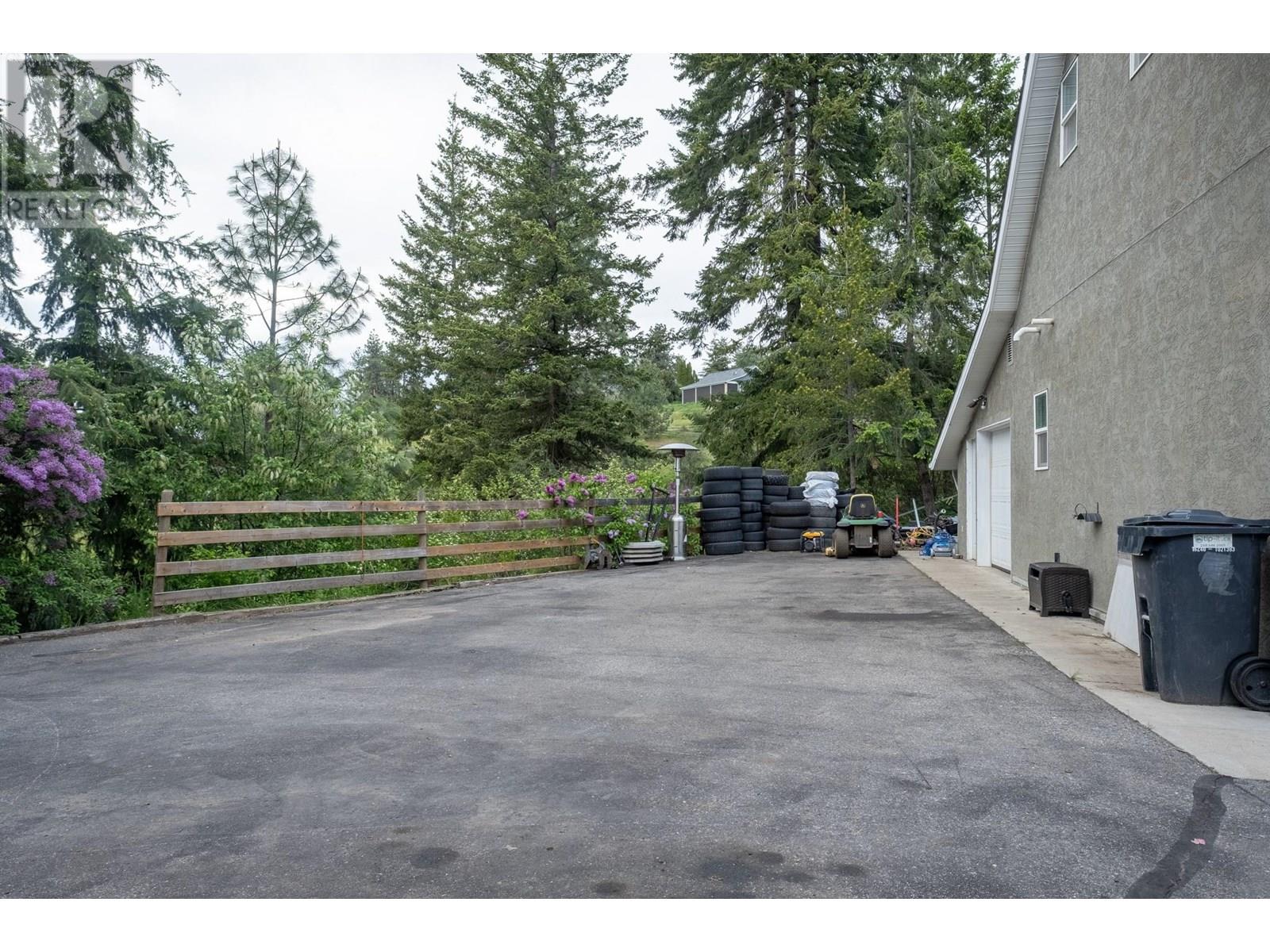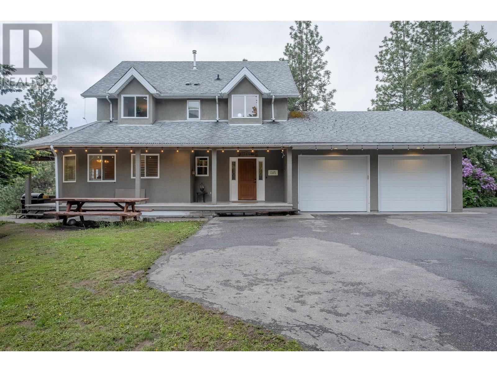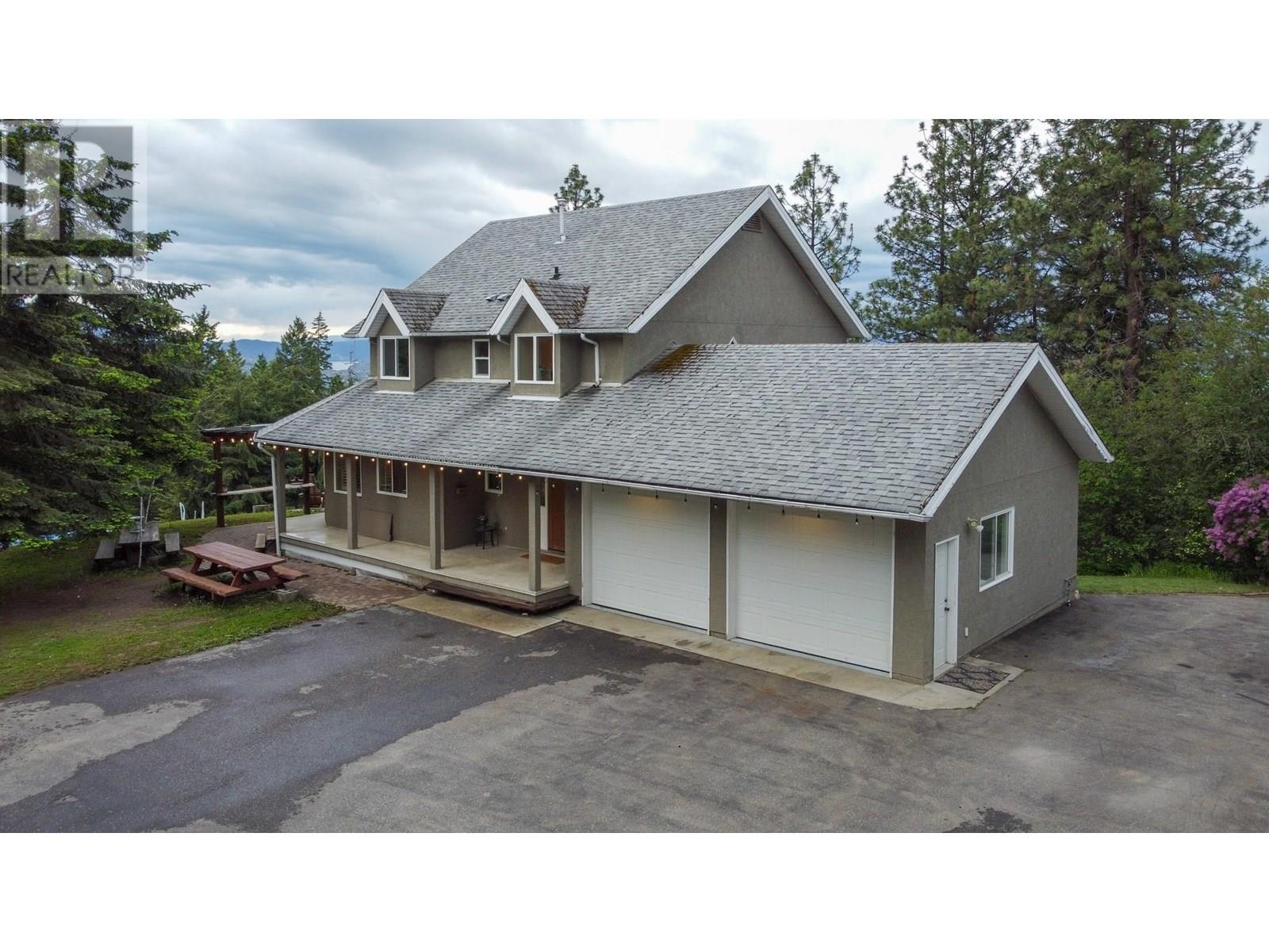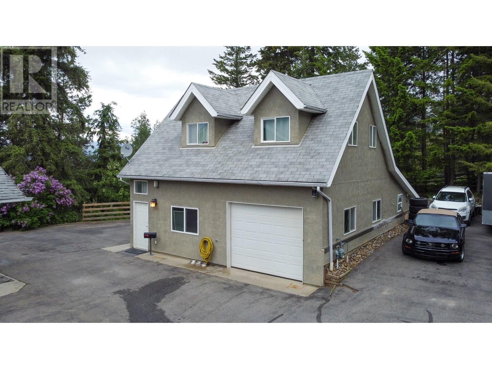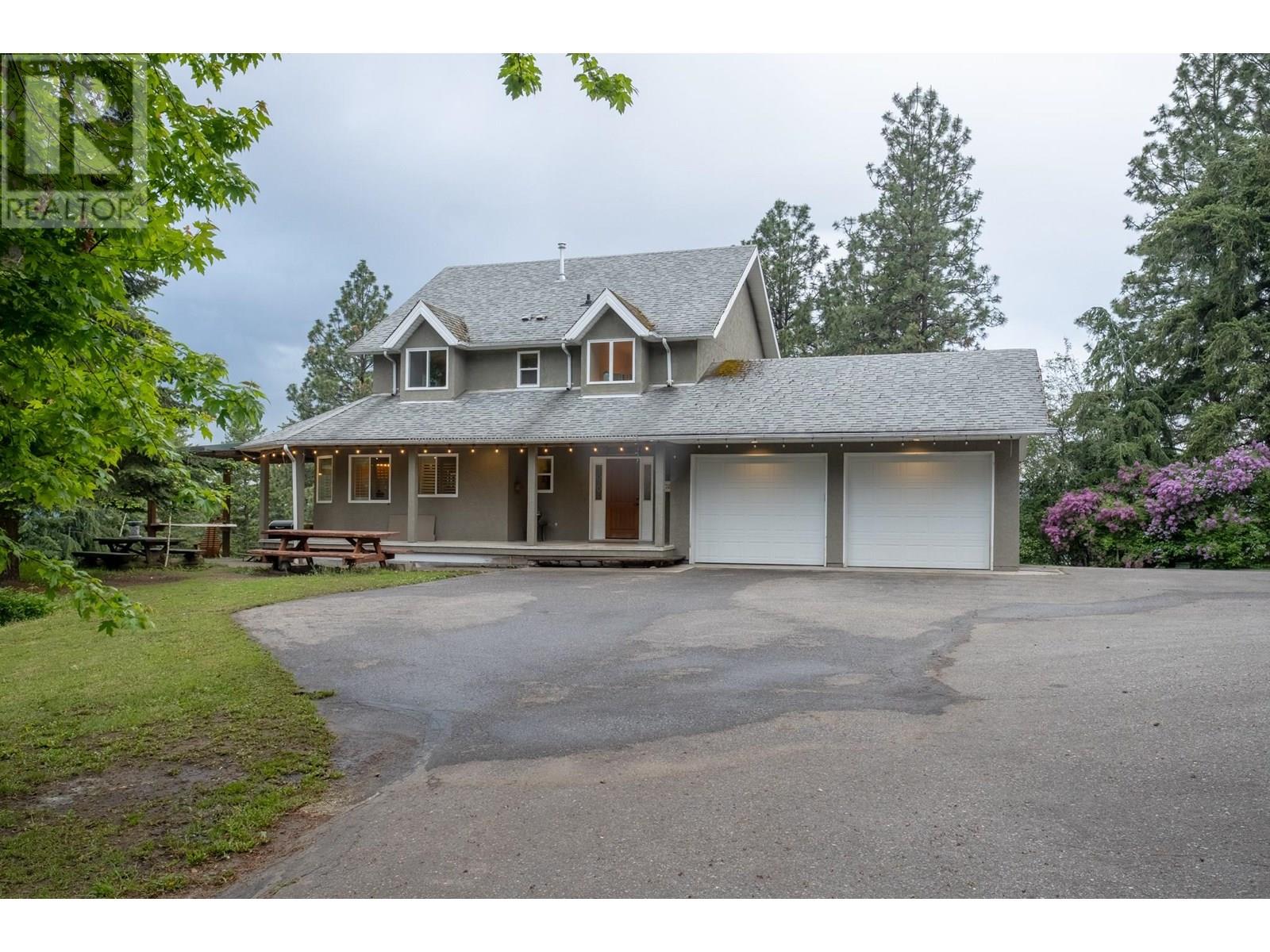 Discover your own private haven with this beautiful acreage tucked at the end of a no-through road—an ideal spot for maximum privacy and tranquility. Surrounded by towering trees and offering stunning views of city lights, this nearly 5.5-acre property borders the peaceful BX Creek, blending natural beauty with convenience. The spacious two-story home features five bedrooms and three bathrooms, along with a fully finished basement that has its own exterior entrance and a brand-new concrete deck—perfect for guests or additional privacy. Inside, the main level boasts a family-sized kitchen with a cozy bay window eating area, a large family room with sliding doors that open onto a covered wrap-around porch—ideal for soaking in the scenic surroundings. Upstairs, you'll find two large master-style bedrooms, while the basement offers three more bedrooms, a second kitchen, laundry room, and a spa-like sauna for relaxation. Additional features include cold storage in the utility room, a double attached garage, and a detached shop/garage wired for 220V with a high-efficiency furnace, plus a self-contained one-bedroom , one bathroom suite—perfect for guests or rental income. The 4-bay equipment shed, accessible via a second driveway, can be easily converted into stalls for animals. The main driveway is completely paved, providing ample space for RV parking, complete with a sani-dump station. Outdoor amenities include a pool, hot tub area, and firepit—creating an inviting setting for entertaining and enjoying your own slice of paradise. (id:58842)