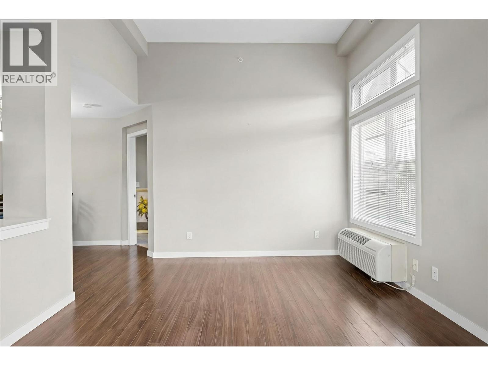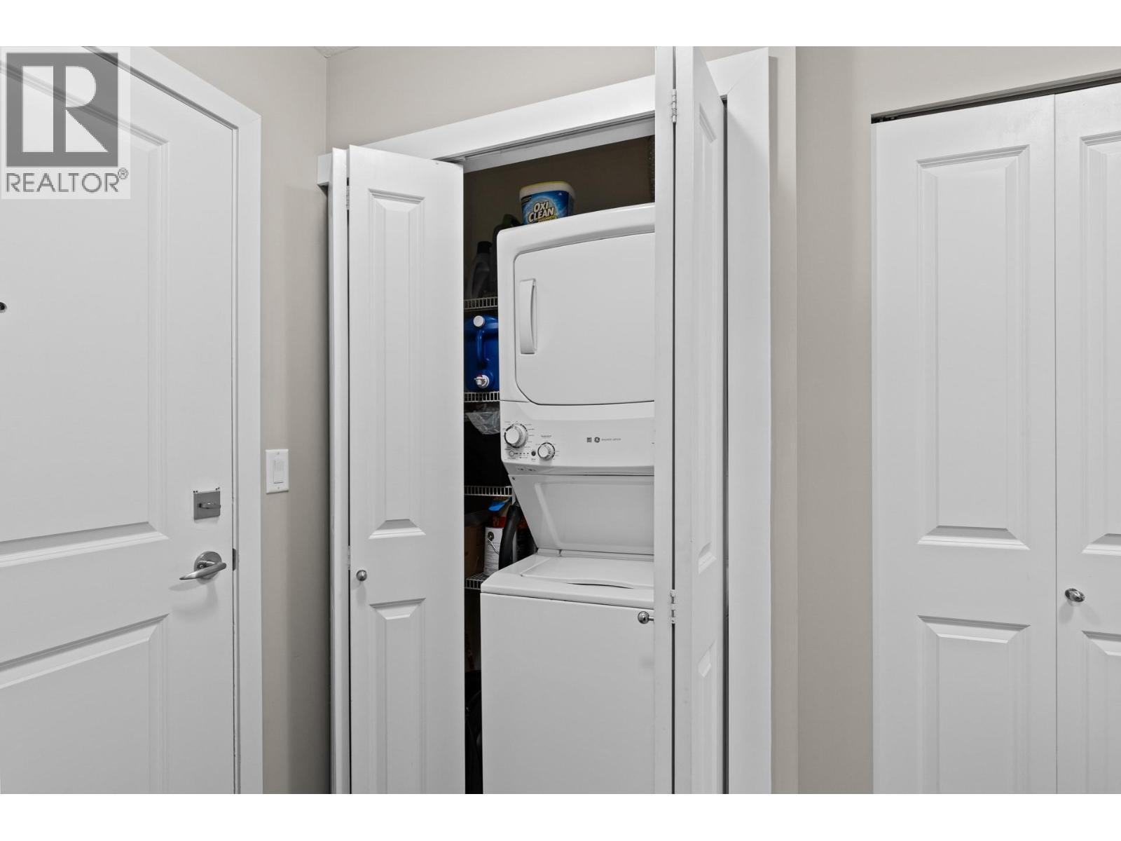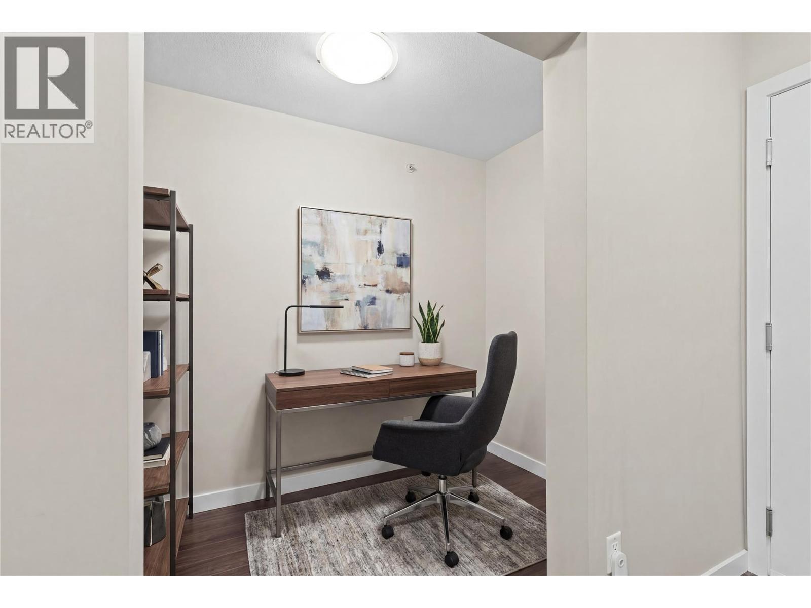 Rare find for this Top floor Corner condo with 2 bedrooms + Den! Stylish ""Espresso"" finishing package & recent paint and carpets in this 1003 sqft of fresh living space. Relax on the spacious covered deck with views of the pool and volleyball court — perfect for recharging or entertaining. Easy maintenance laminate flooring in main living areas is perfect for pet owners. Open-concept kitchen boasts granite countertops and tile backsplash. The split-bedroom layout provides ideal privacy for roommates living together. The large Primary suite features a walk-in closet and 4-piece ensuite, while the second bedroom is located next to the main bath. A convenient den/office is located near the front entrance. The washer and dryer were upgraded to full size for ease of washing bedding/comforters and the laundry space was professionally finished. Enjoy your wall-mounted air conditioning unit during those warm Okanagan days & evenings. The current Tenants would consider staying for any interested Investors. 1 secure underground parking stall and bike storage available. The Verve is a sought-after complex with outdoor pool, volleyball court, picnic and BBQ areas and a fully fenced dog park. Pet-friendly (up to 2 dogs or 2 cats, or 1 of each), no age restrictions, and rentals allowed. Centrally located close to downtown Kelowna, UBCO, public transit, shopping, restaurants, and schools. Enjoy nearby golf courses, beaches, and the beautiful Brandt’s Creek linear park trail. (id:58842)