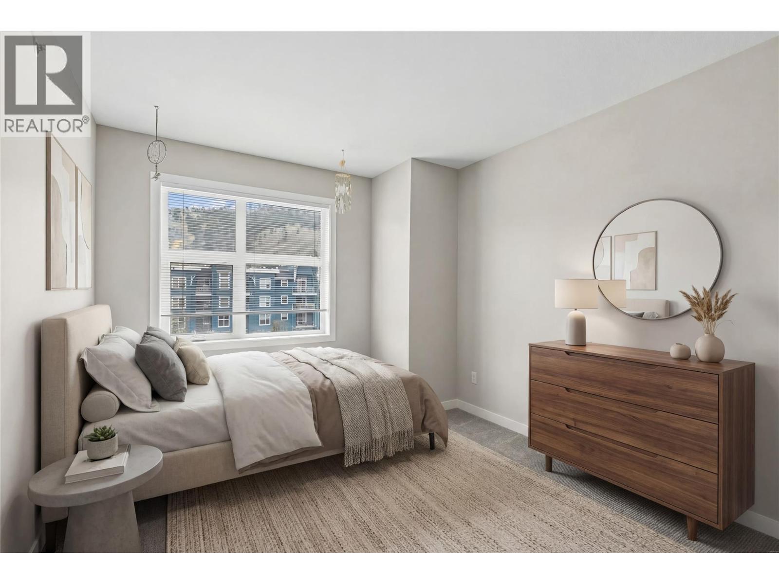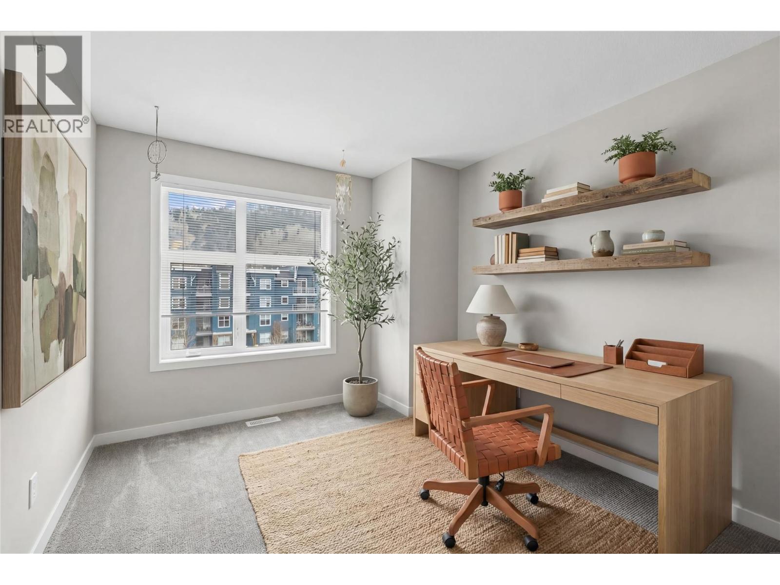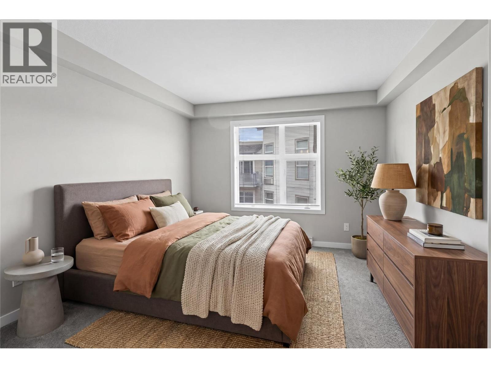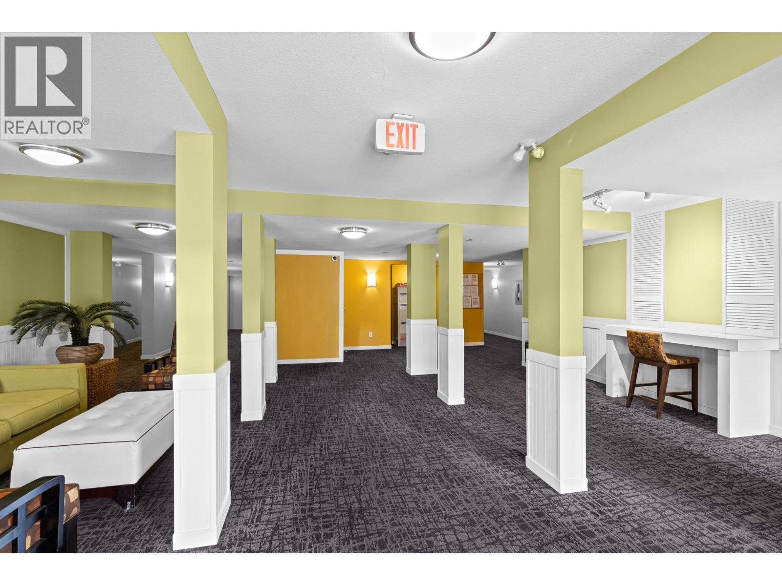 Rare find for this Top floor Corner condo with 2 bedrooms + Den! Stylish ""Espresso"" finishing package & recent paint and carpets in this 1003 sqft of fresh living space. Relax on the spacious covered deck with views of the pool and volleyball court — perfect for recharging or entertaining. Easy maintenance laminate flooring in main living areas is perfect for pet owners. Open-concept kitchen boasts granite countertops and tile backsplash. The split-bedroom layout provides ideal privacy for roommates living together. The large Primary suite features a walk-in closet and 4-piece ensuite, while the second bedroom is located next to the main bath. A convenient den/office is located near the front entrance. The washer and dryer were upgraded to full size for ease of washing bedding/comforters and the laundry space was professionally finished. Enjoy your wall-mounted air conditioning unit during those warm Okanagan days & evenings. The current Tenants would consider staying for any interested Investors. 1 secure underground parking stall and bike storage available. The Verve is a sought-after complex with outdoor pool, volleyball court, picnic and BBQ areas and a fully fenced dog park. Pet-friendly (up to 2 dogs or 2 cats, or 1 of each), no age restrictions, and rentals allowed. Centrally located close to downtown Kelowna, UBCO, public transit, shopping, restaurants, and schools. Enjoy nearby golf courses, beaches, and the beautiful Brandt’s Creek linear park trail. (id:58842)